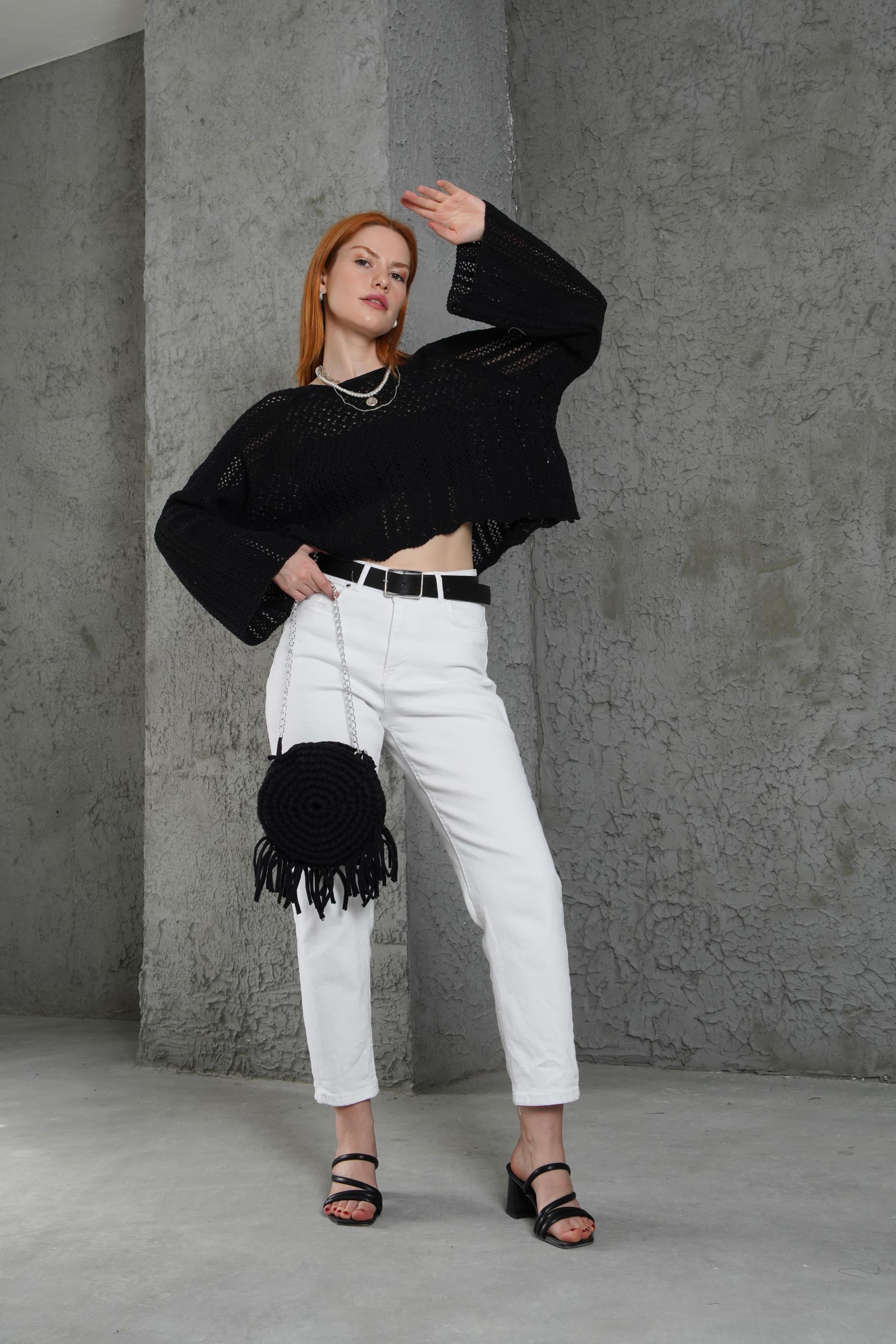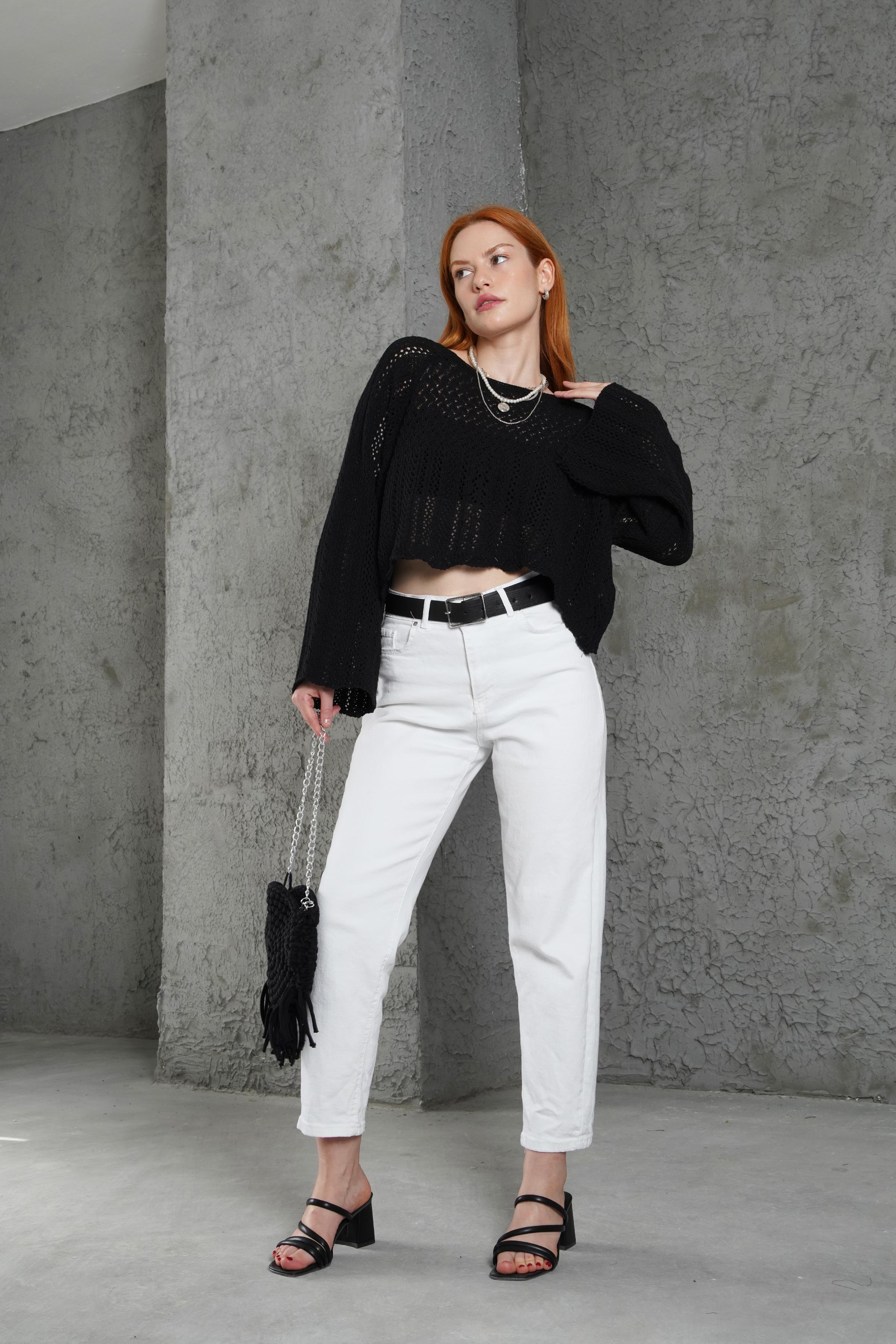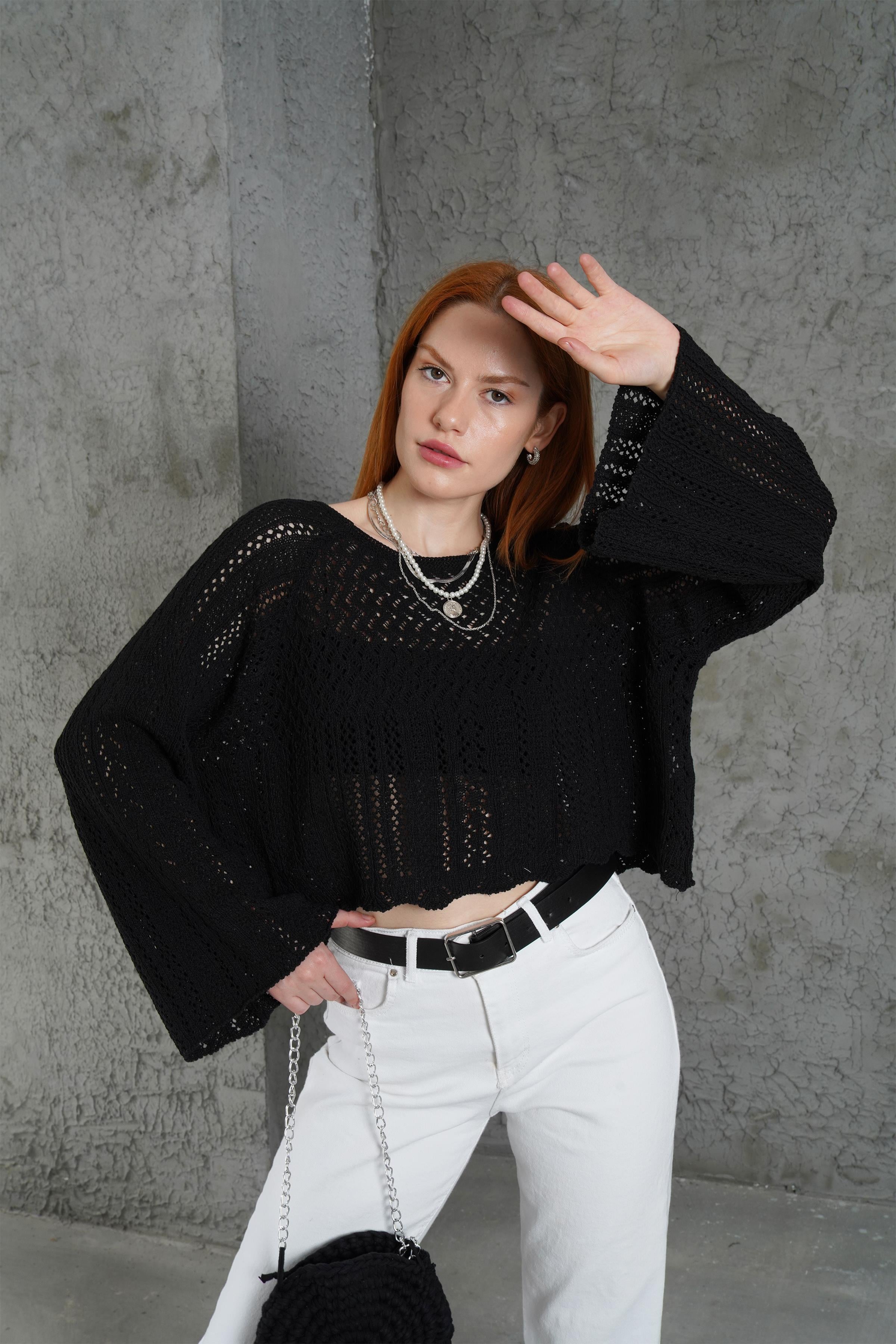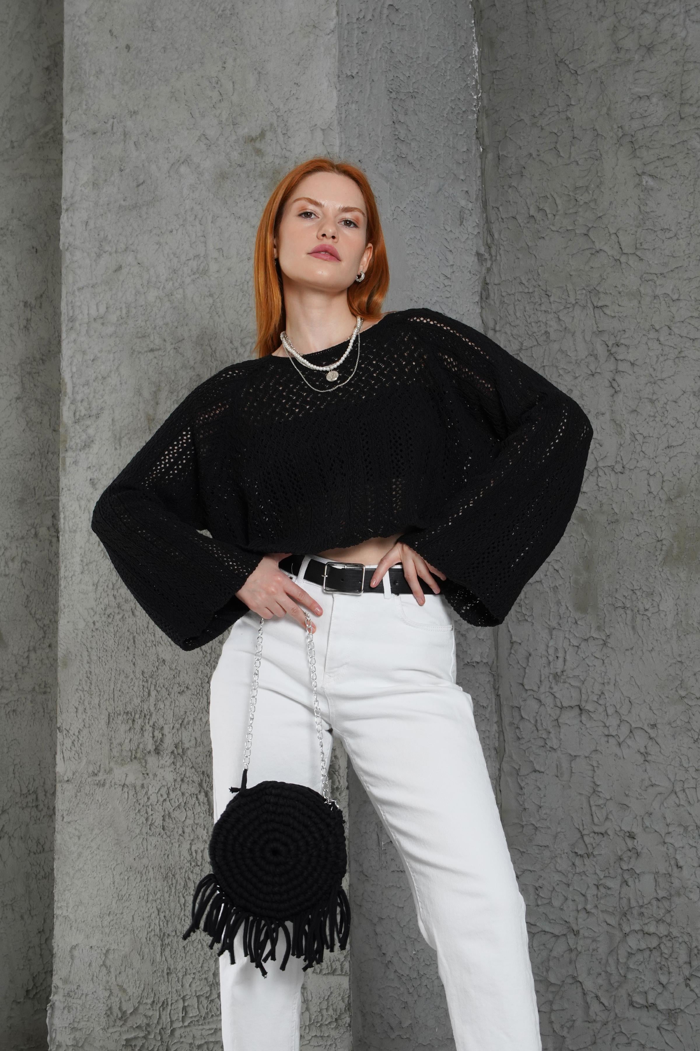 Ajurlu Bisiklet Yaka Siyah Toptan Bluz