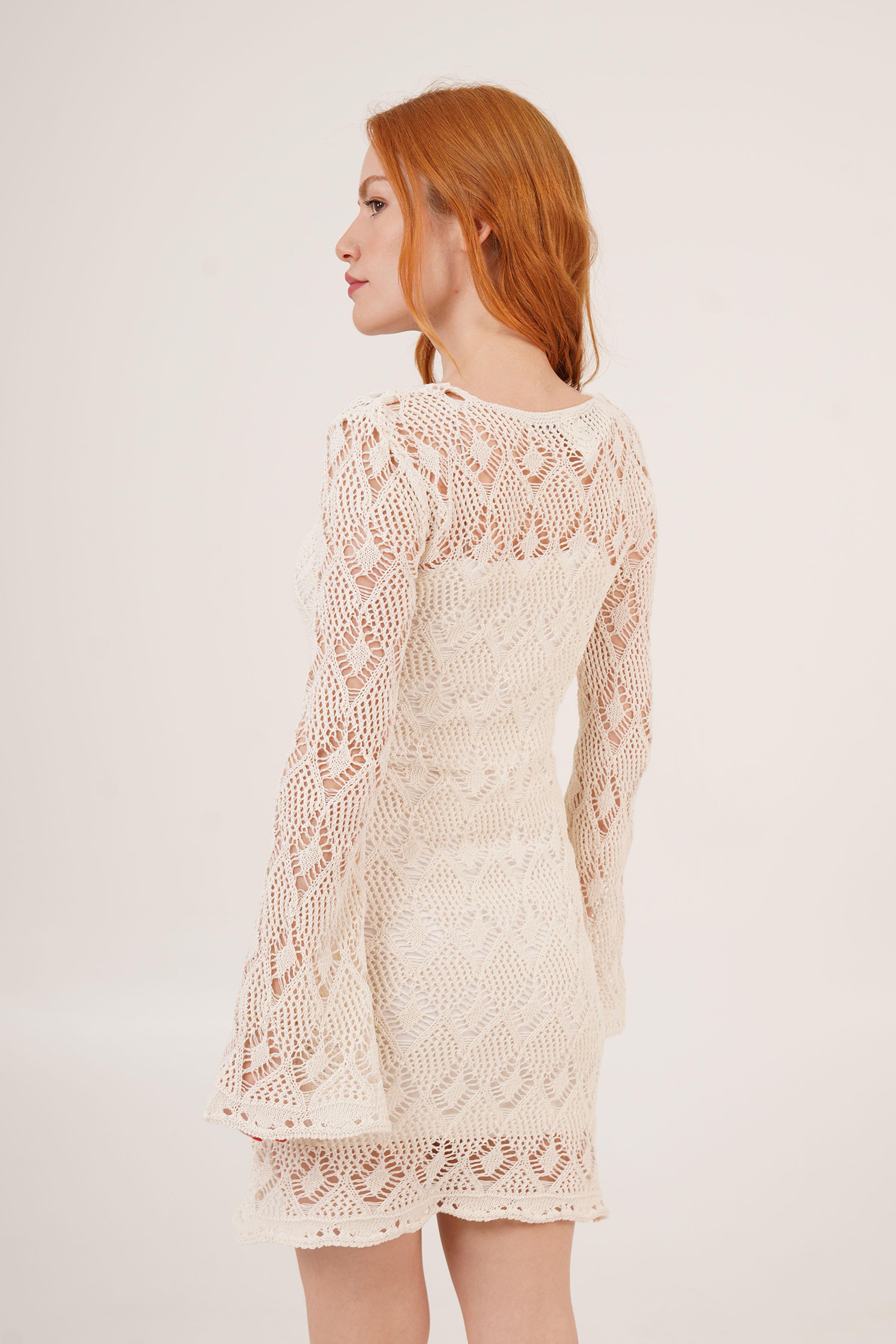 Ajurlu Kayık Yaka Toptan Ekru Elbise
