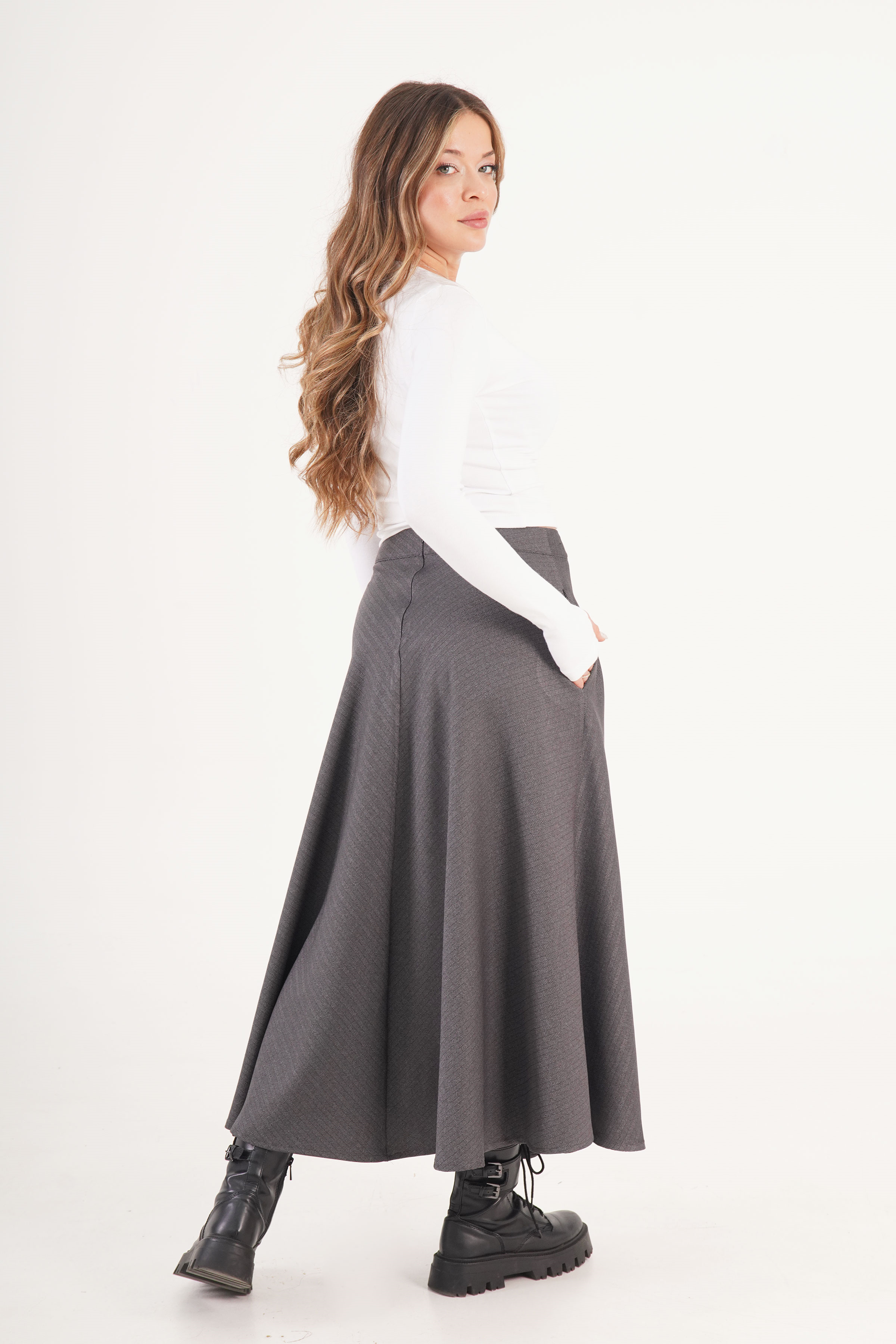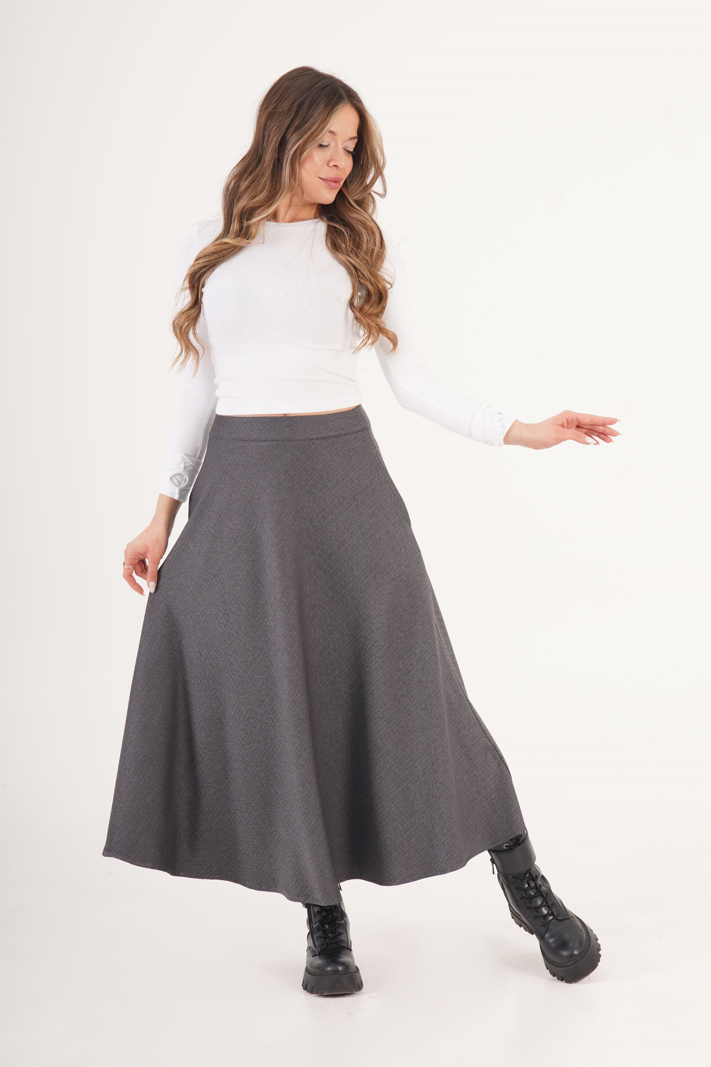 Balık Sırtı Desen Volan Kesim Toptan Antrasit Etek