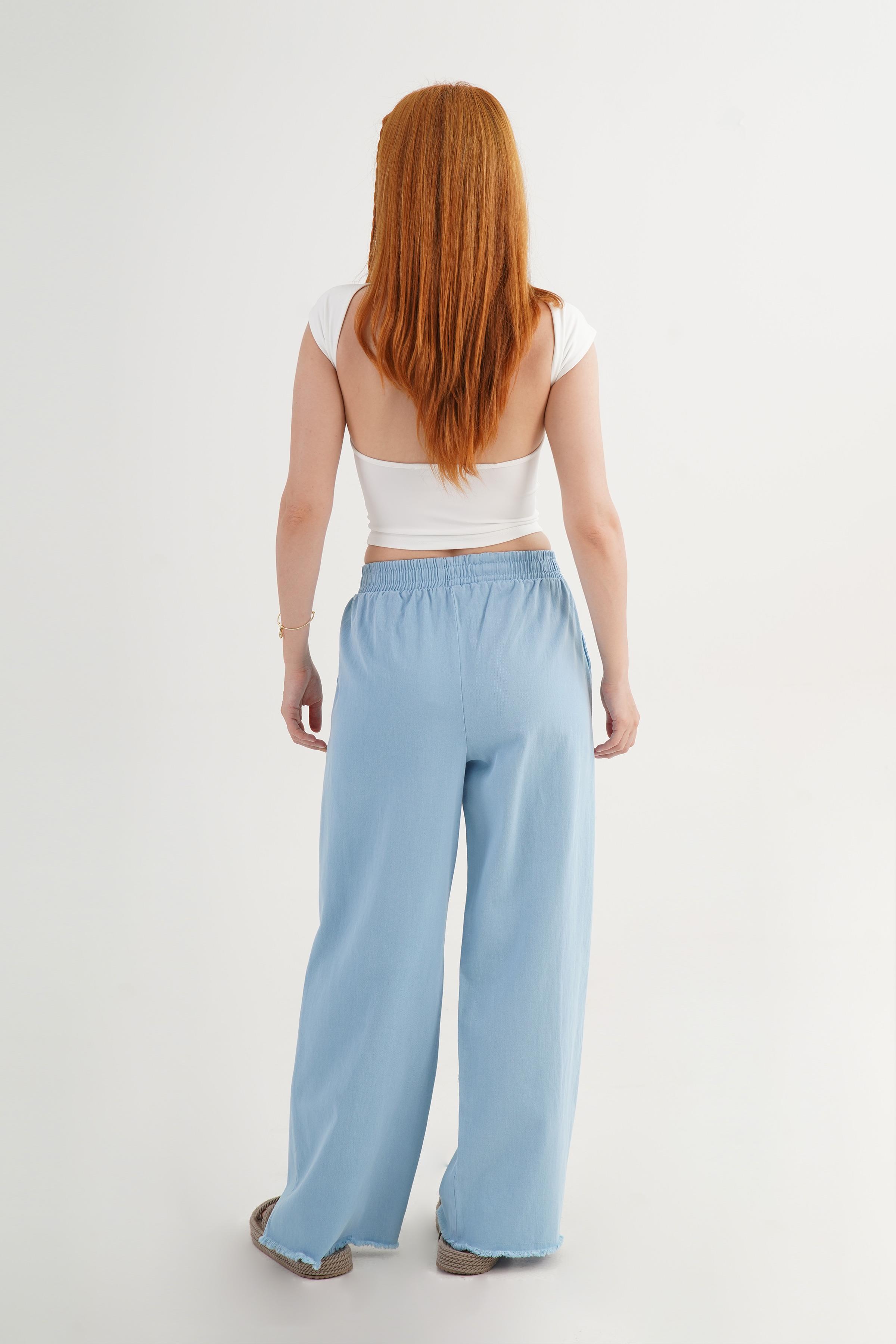 Bel Lastikli Paça Detaylı Cepli Toptan Mavi Pantolon