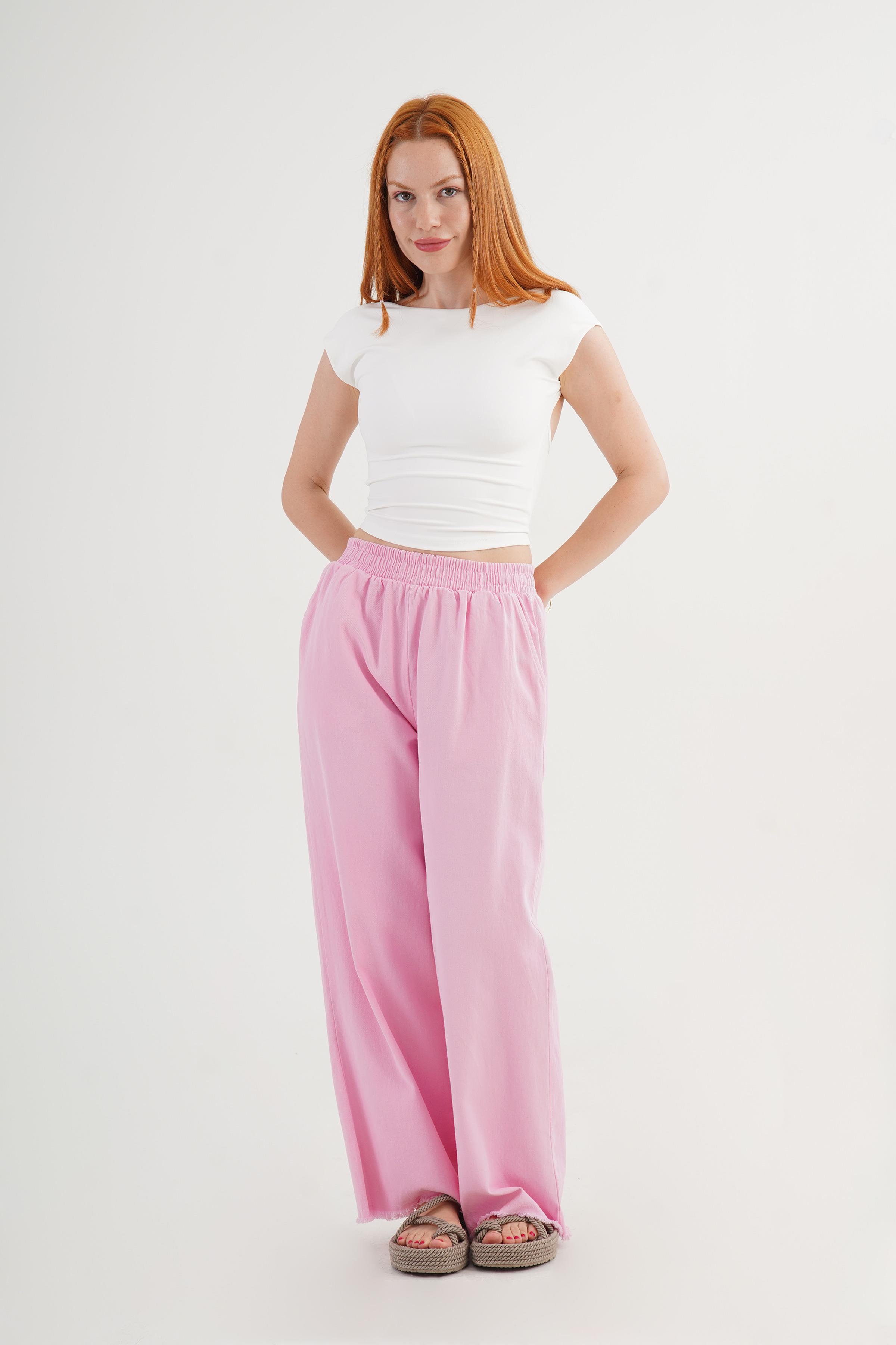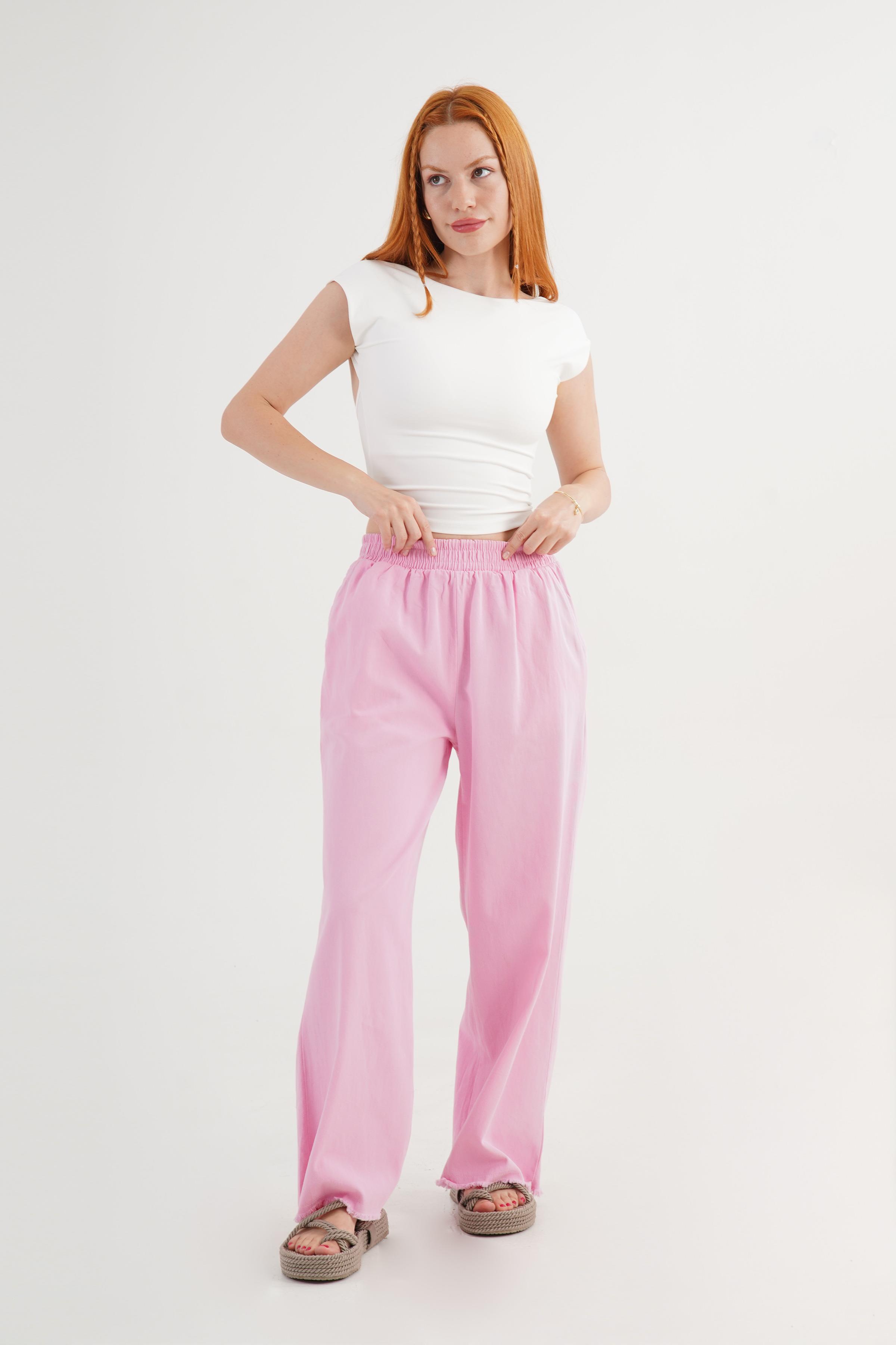 Bel Lastikli Paça Detaylı Cepli Toptan Pembe Pantolon