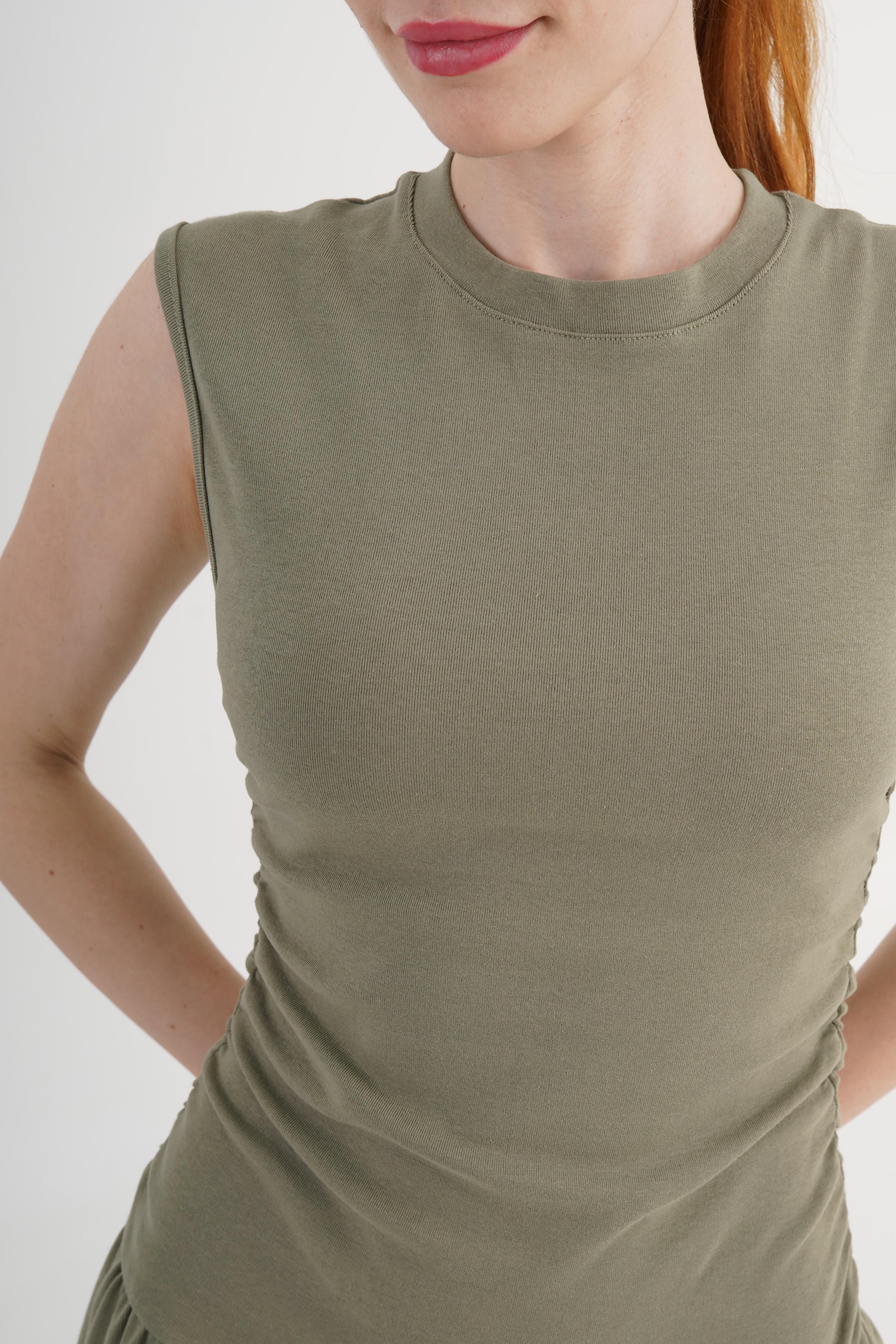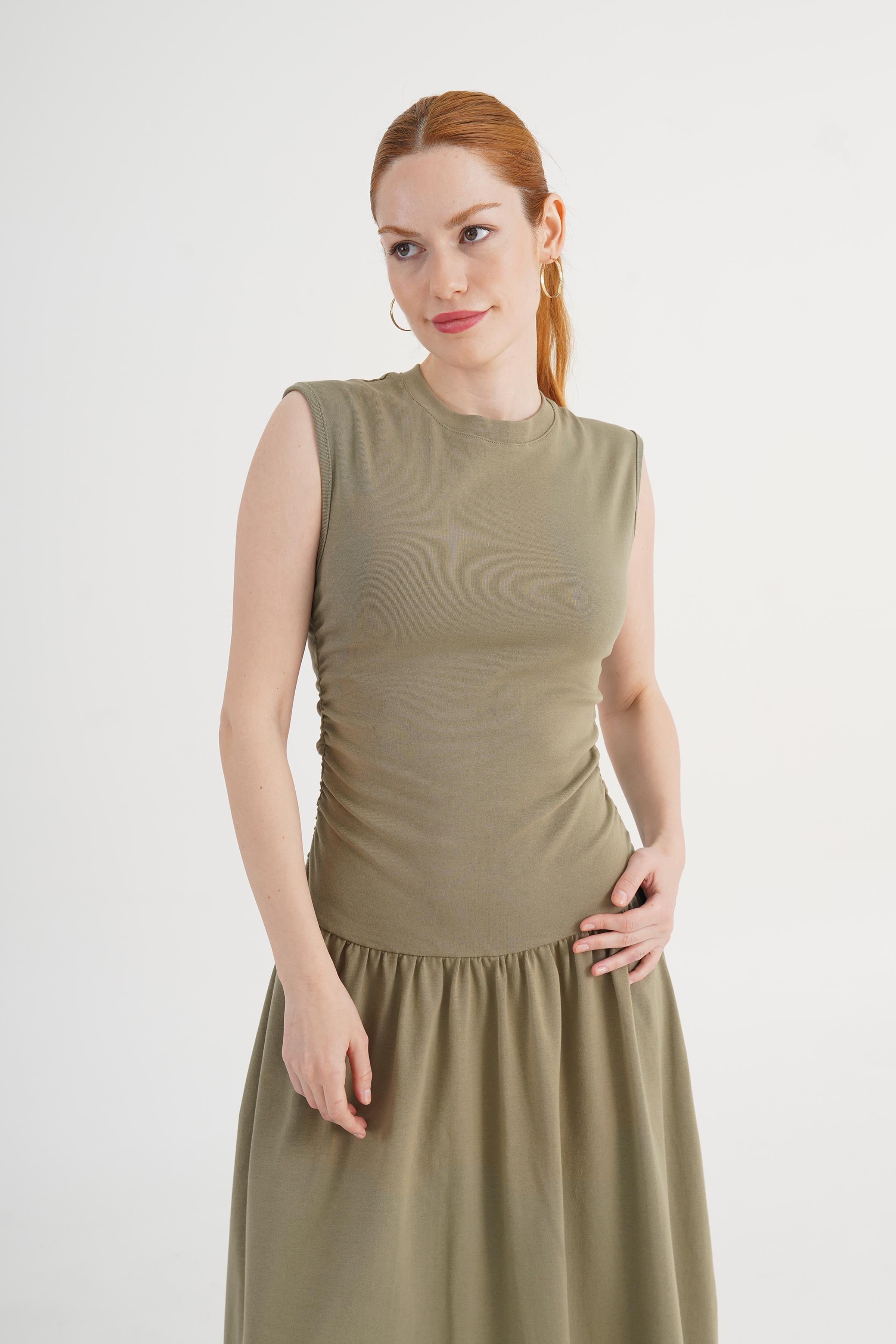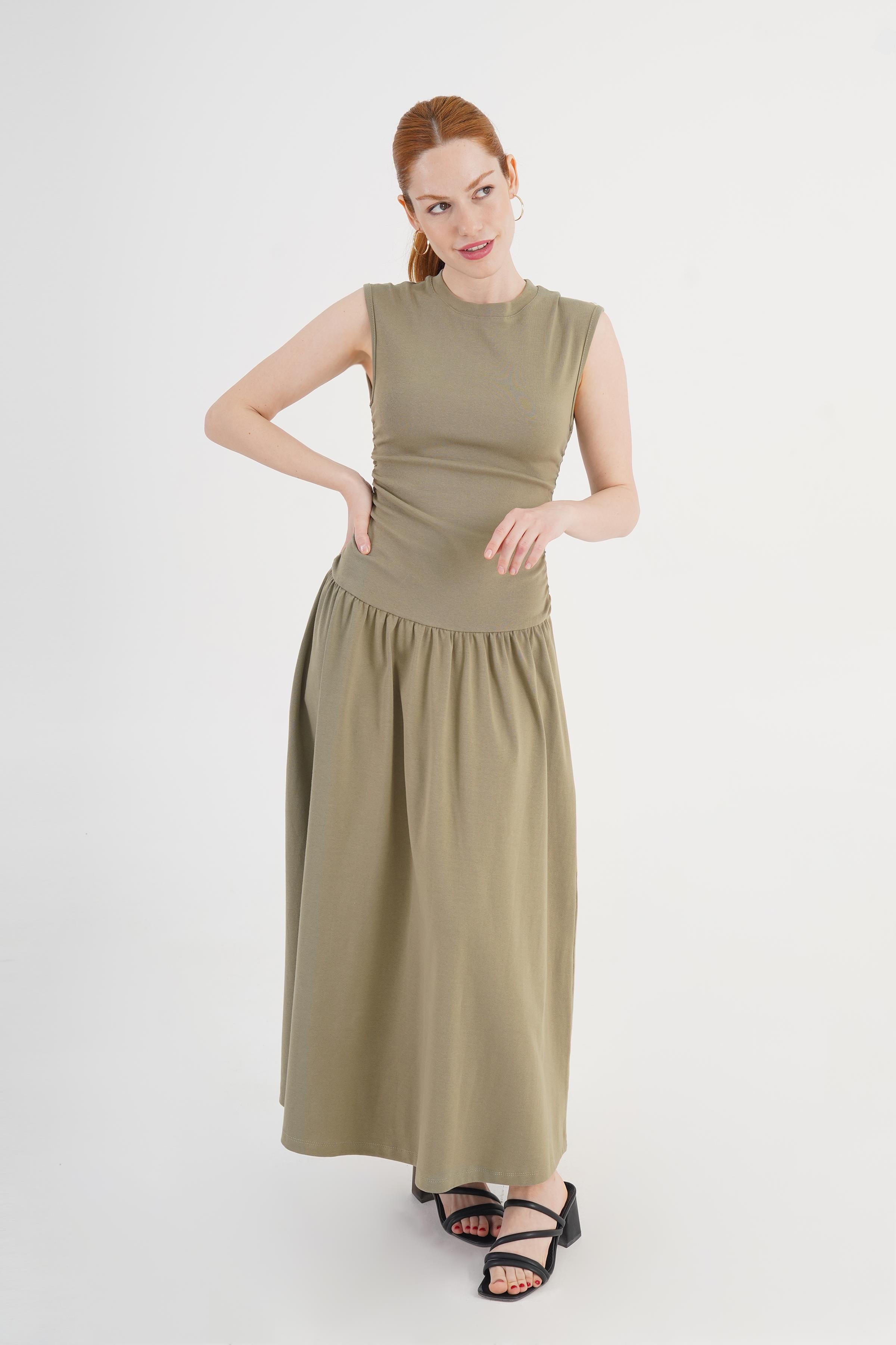 Beli Büzgülü Haki Toptan Elbise