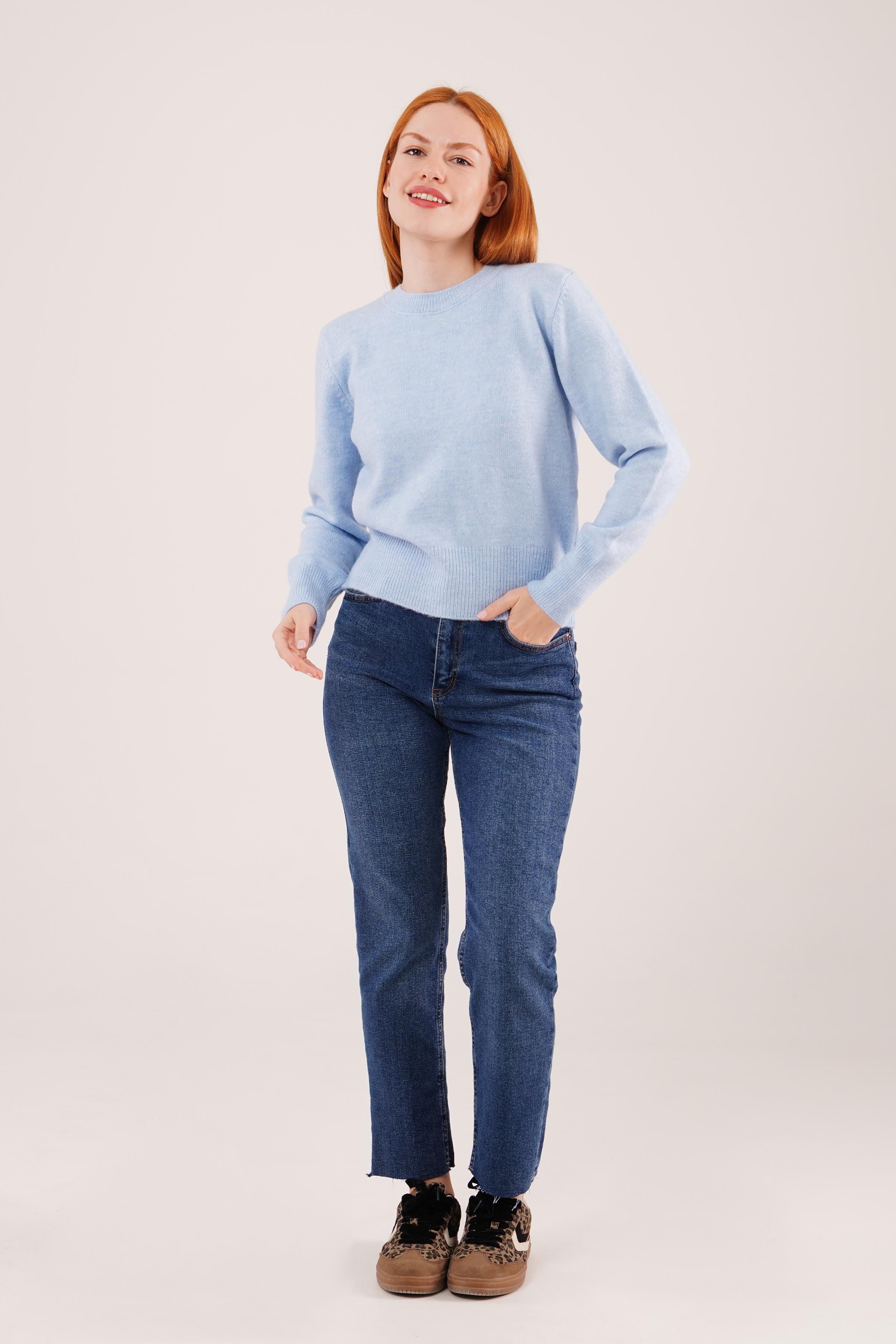 Bisiklet Yaka Düz Model Toptan Bebe Mavisi Kazak