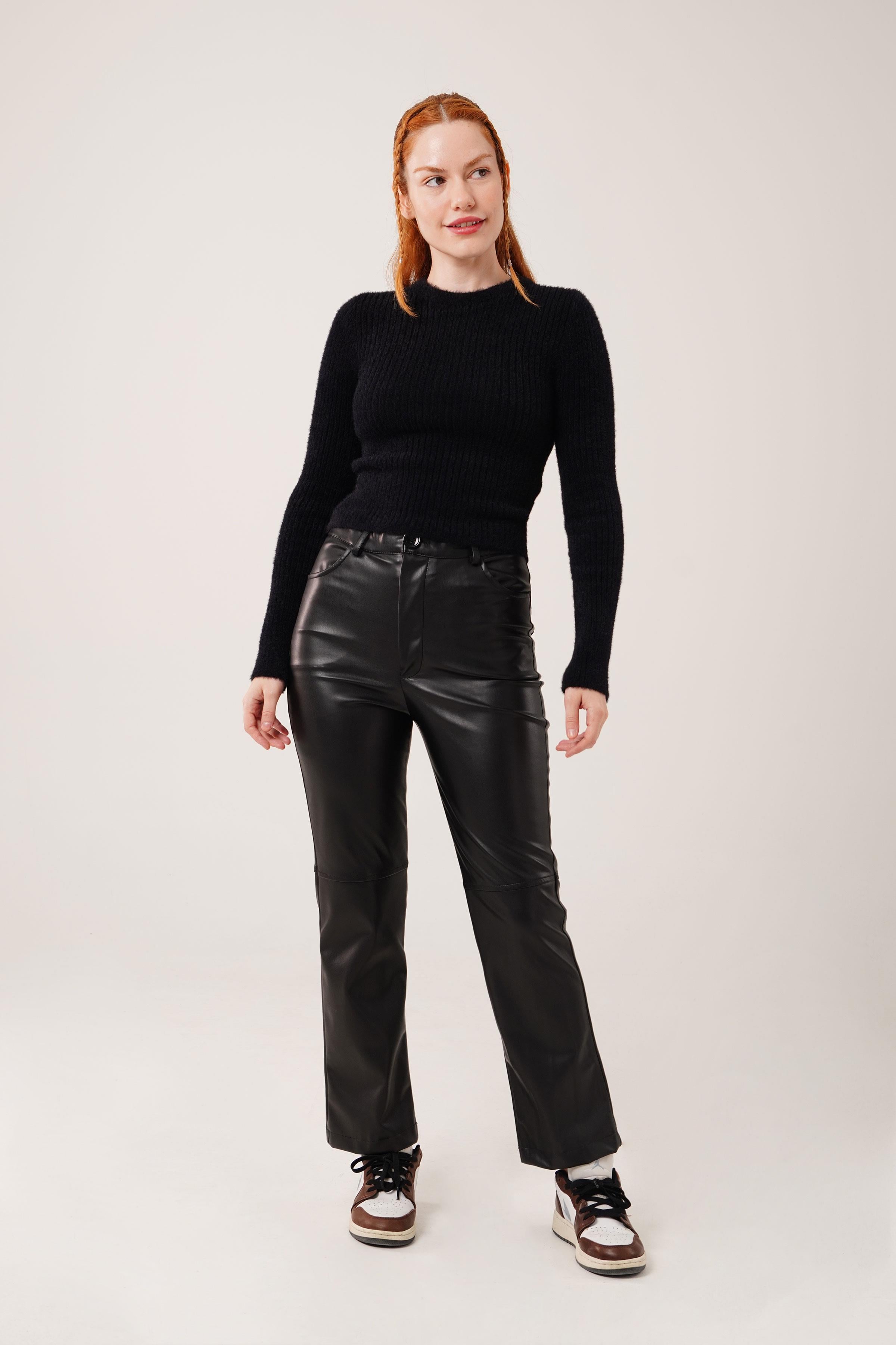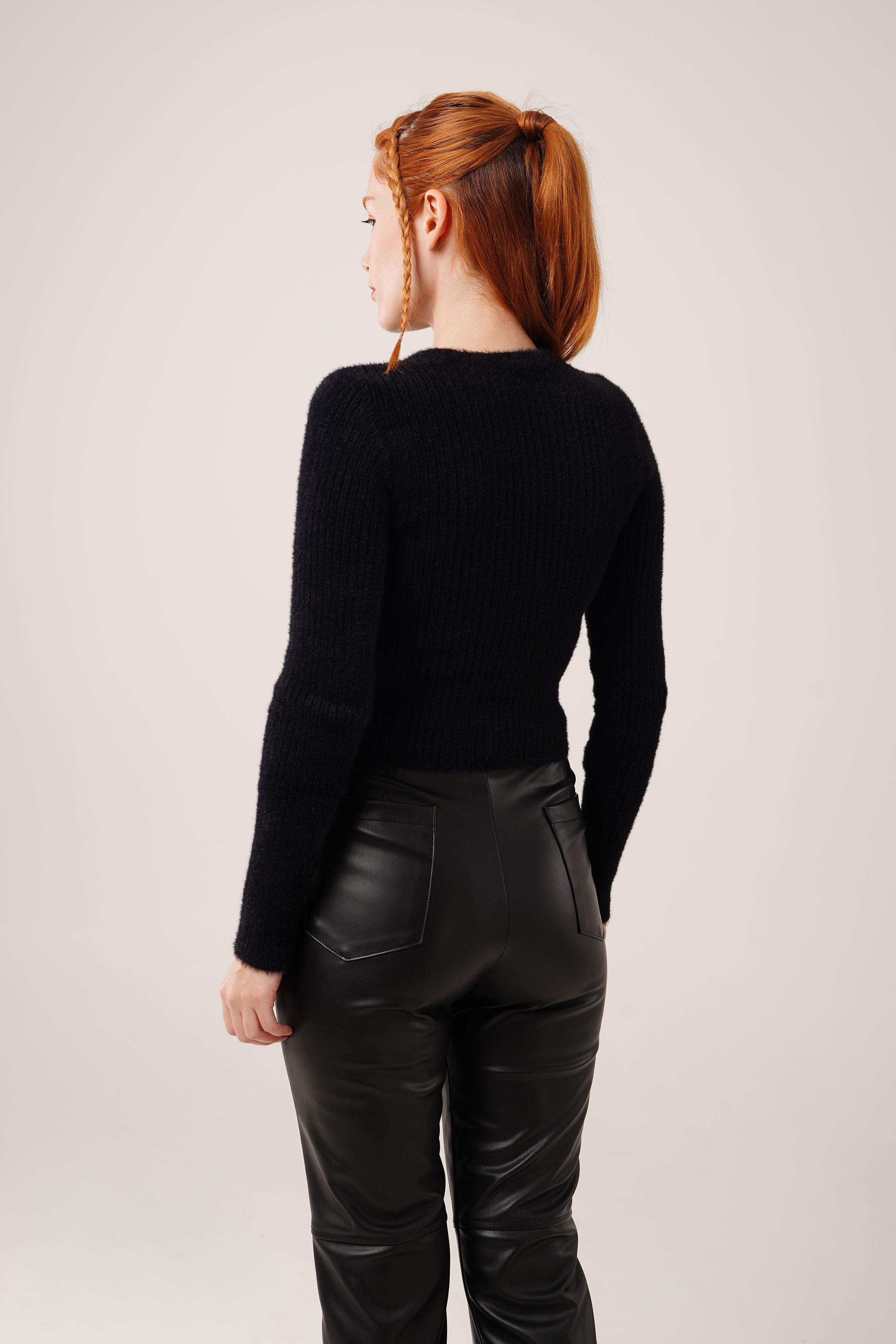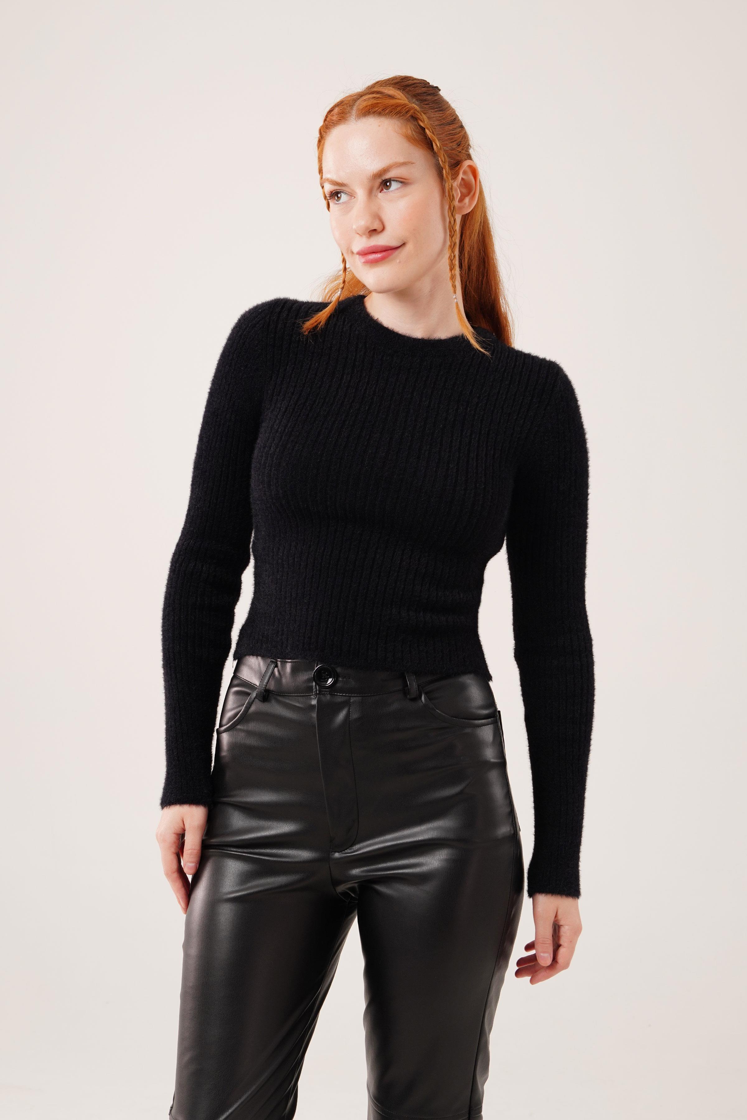 Bisiklet Yaka Yumoş Siyah Toptan Kazak