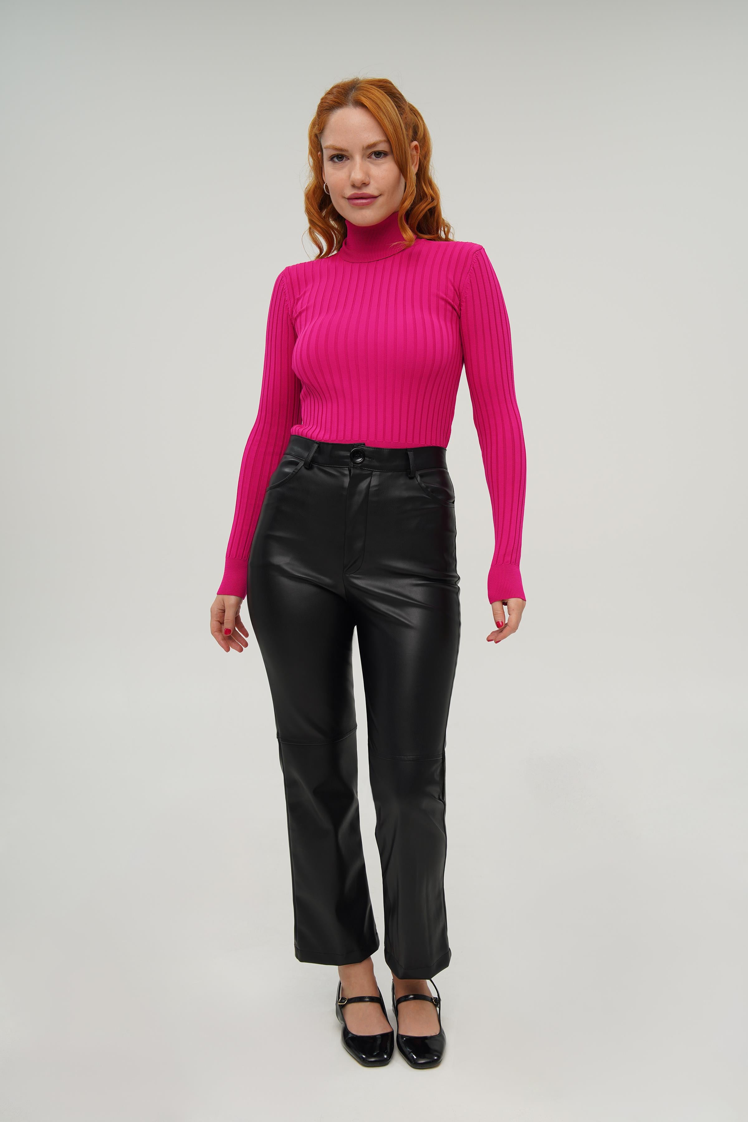 Boğazlı Fitil Detaylı Toptan Triko Fuşya Kazak