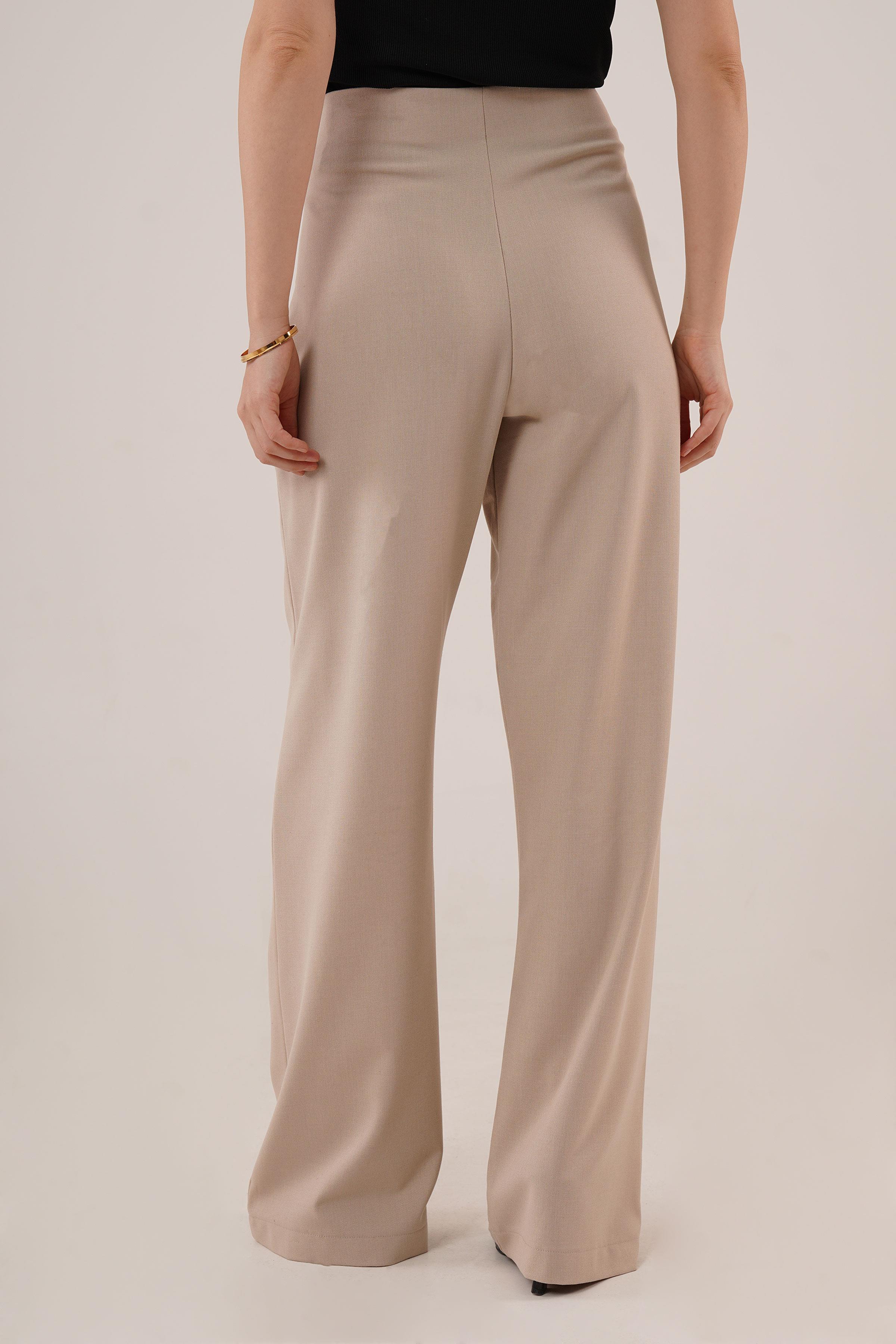 Bol Paça Yandan Fermuarlı Toptan Krem Kumaş Pantolon