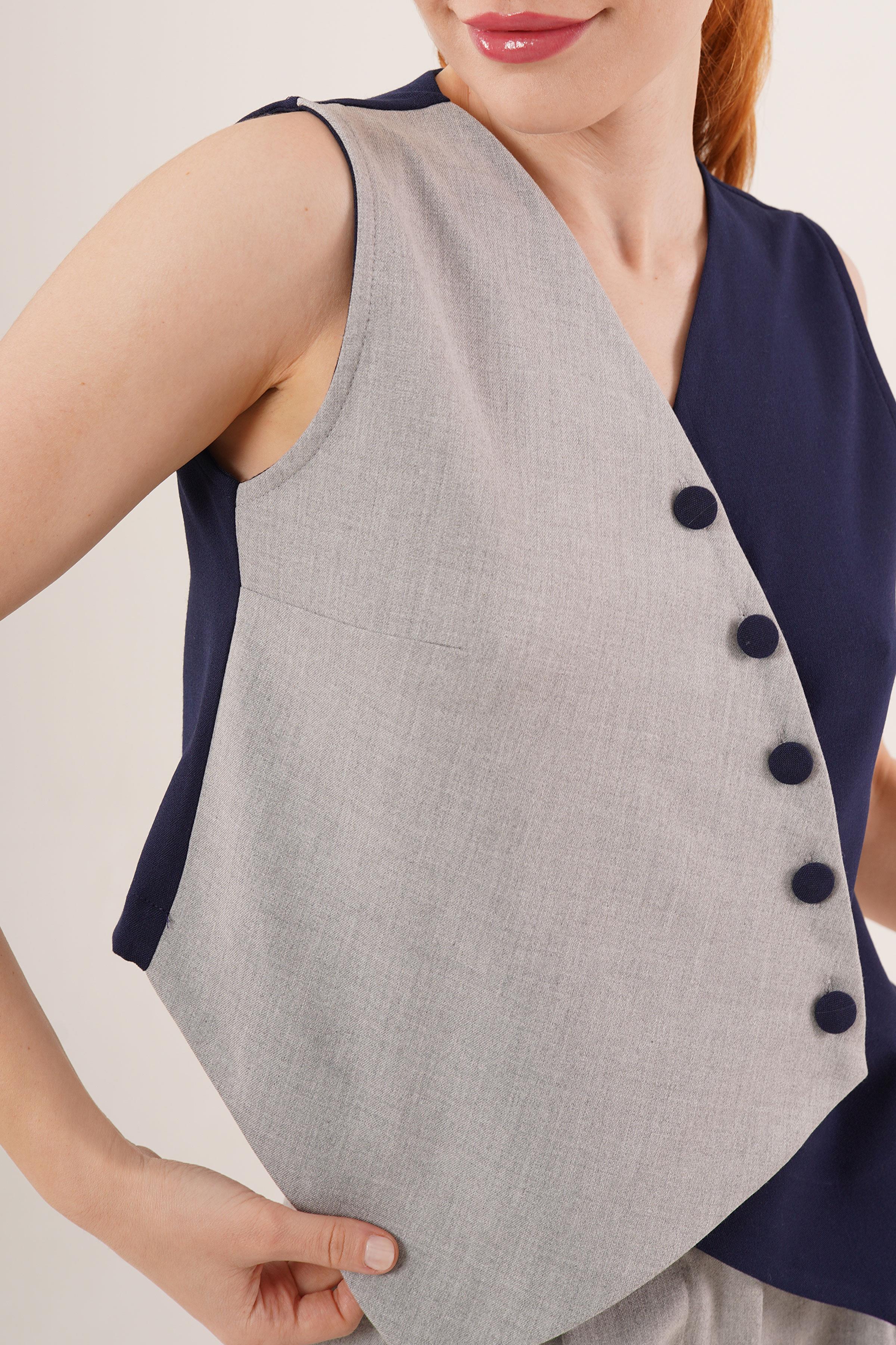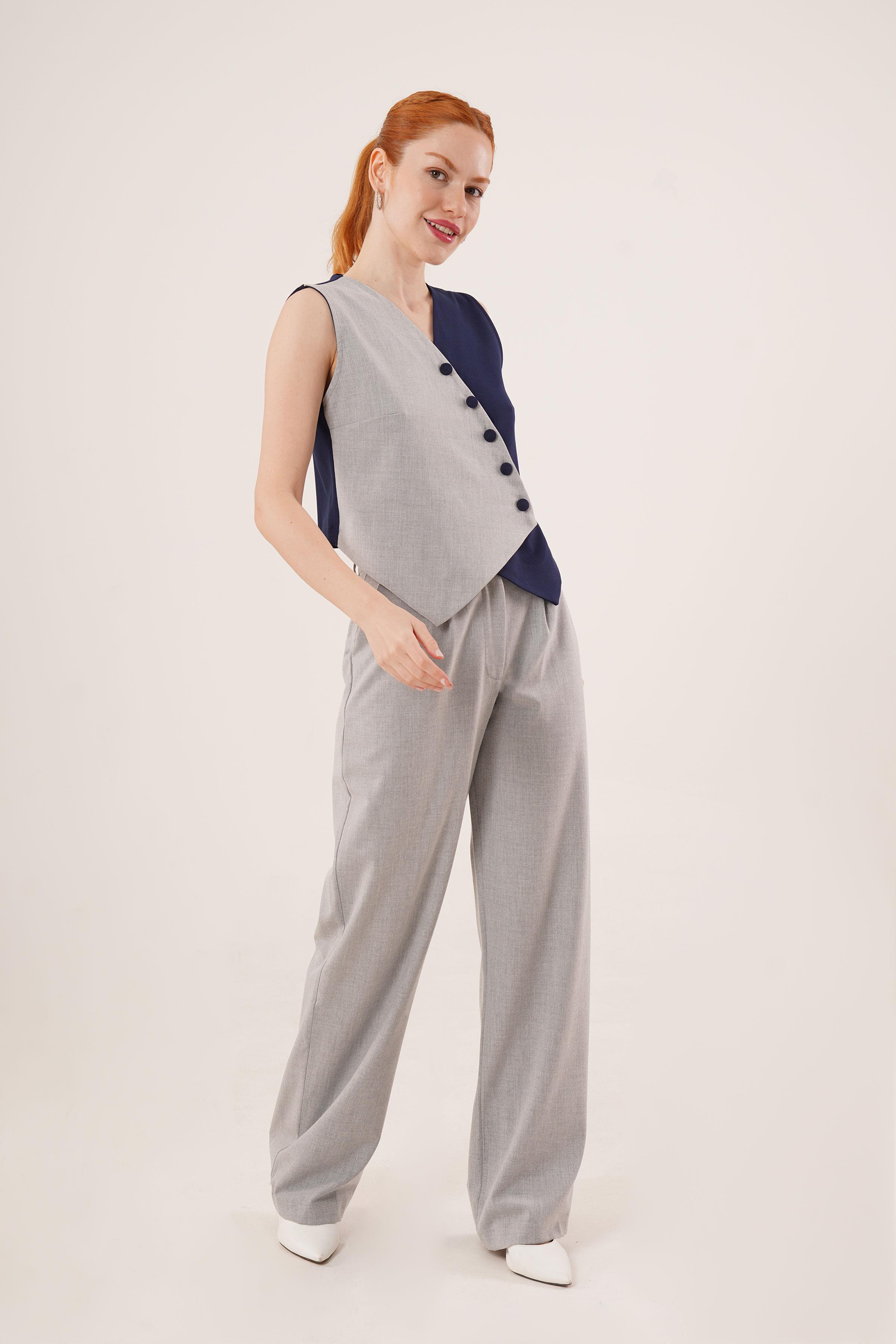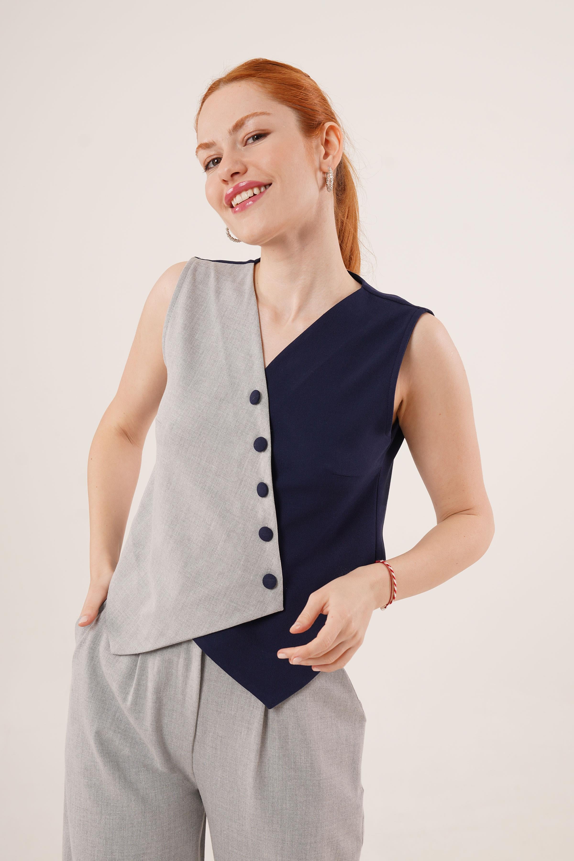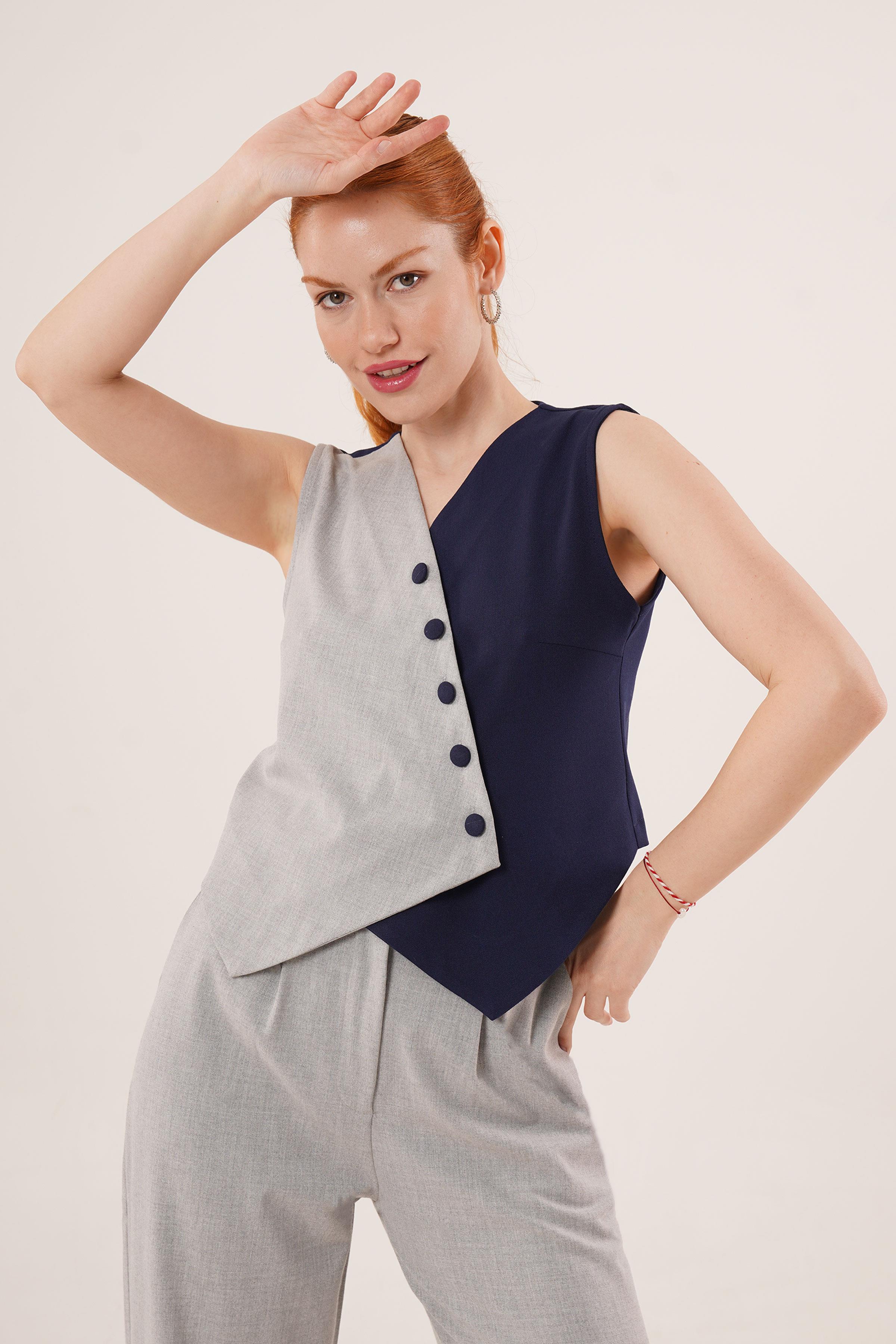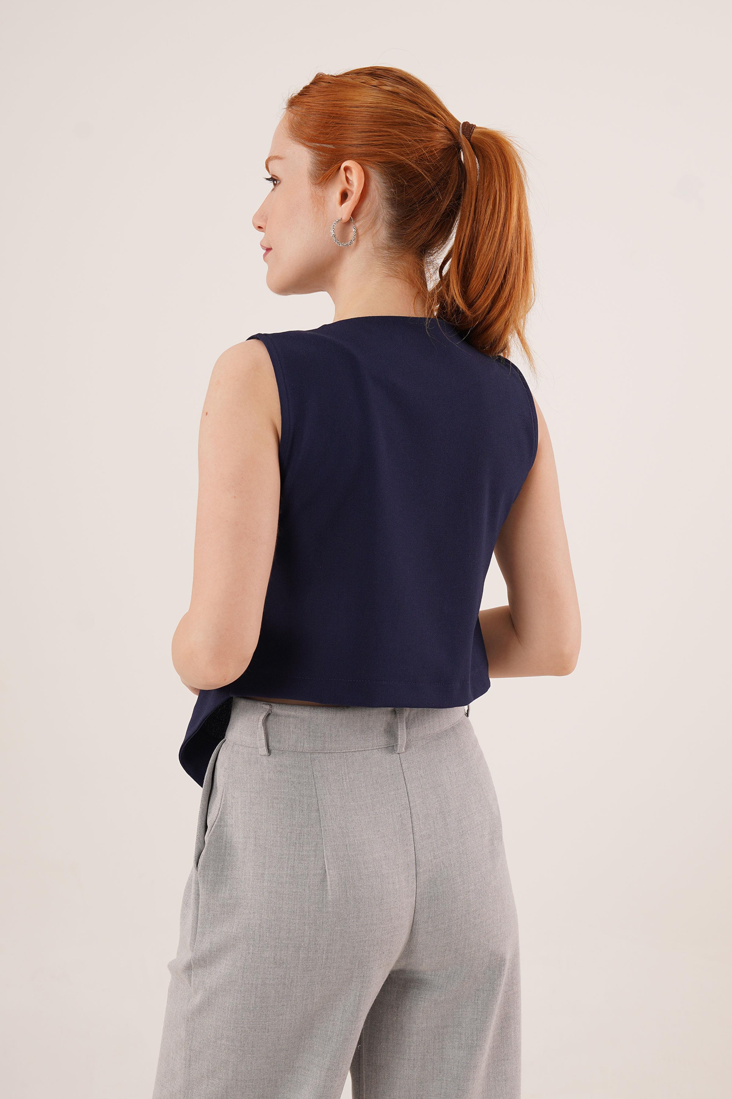 Çapraz Model Düğmeli Lacivert Toptan Yelek