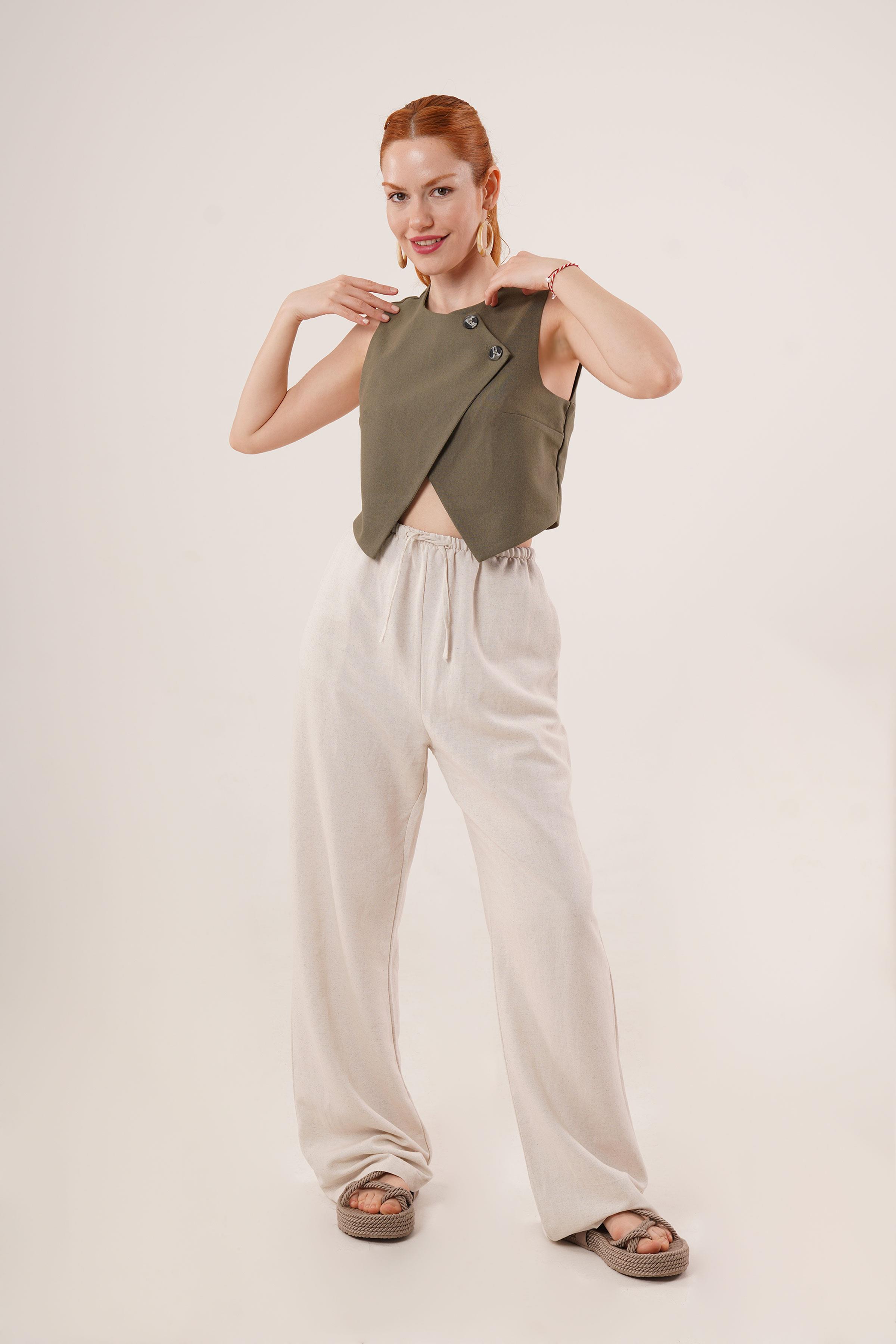 Çift Düğmeli Çapraz Model Haki Toptan Yelek