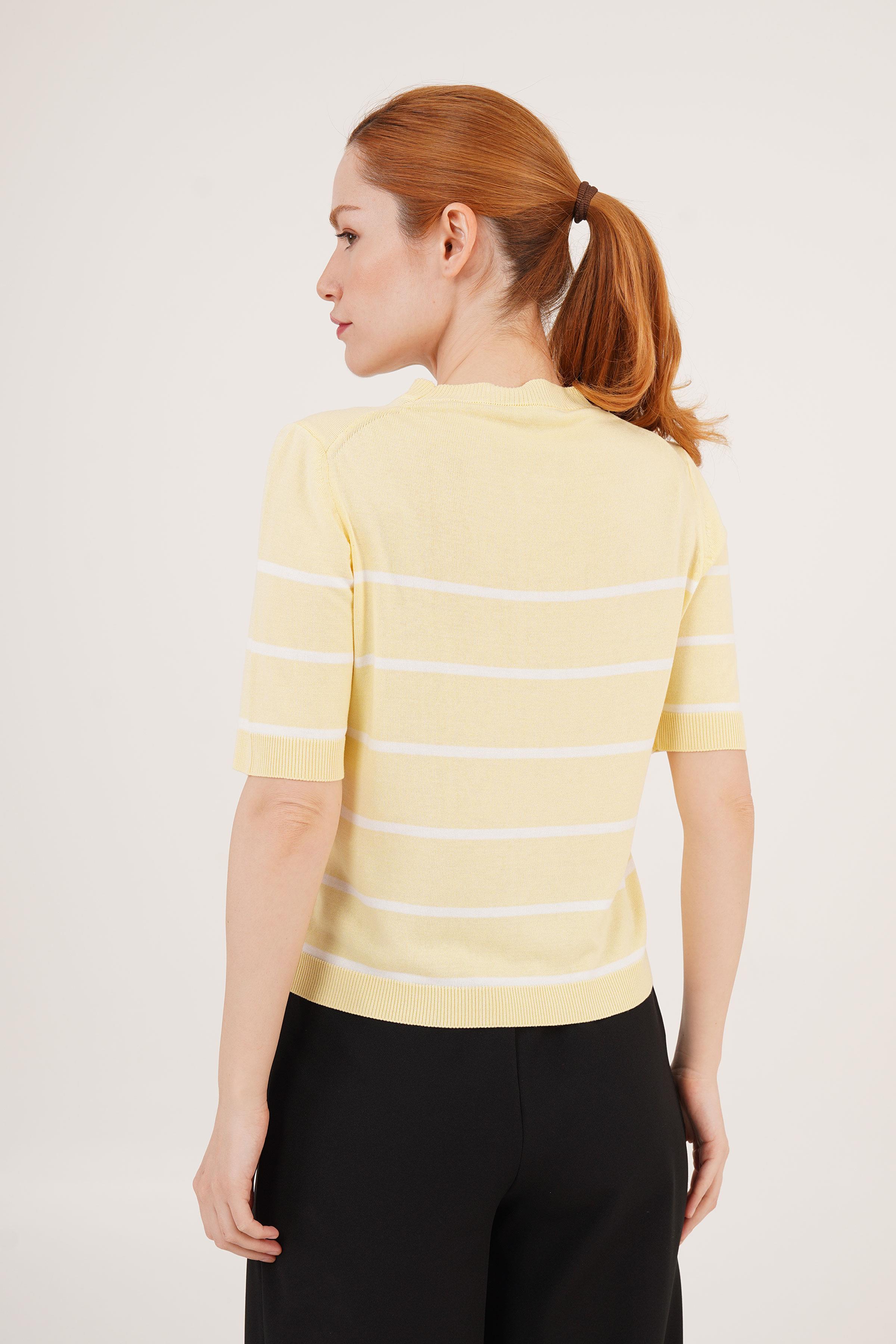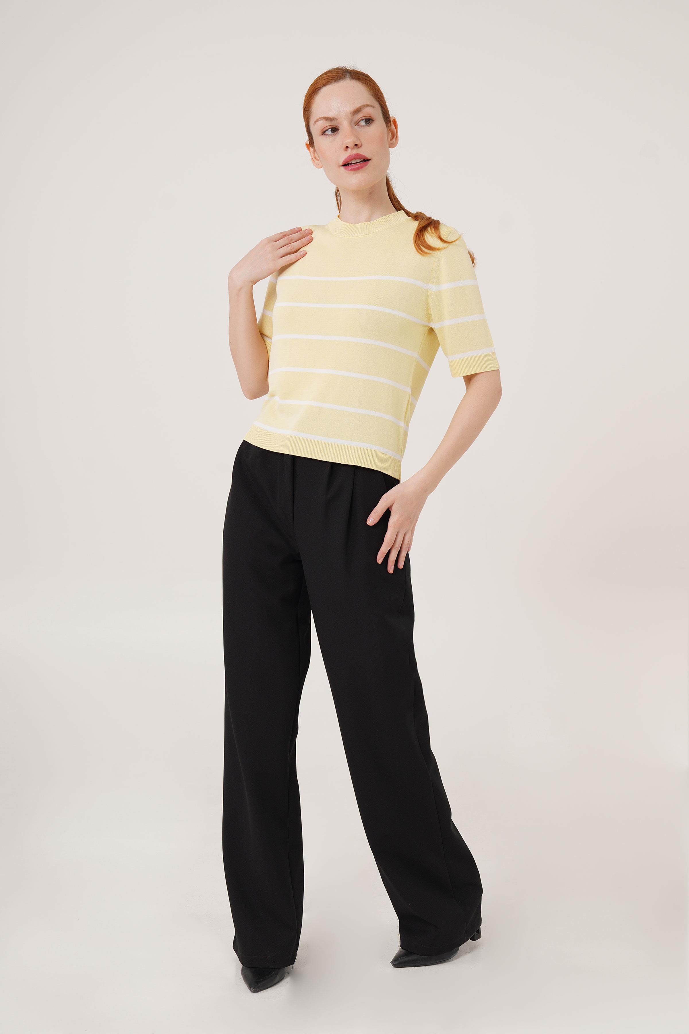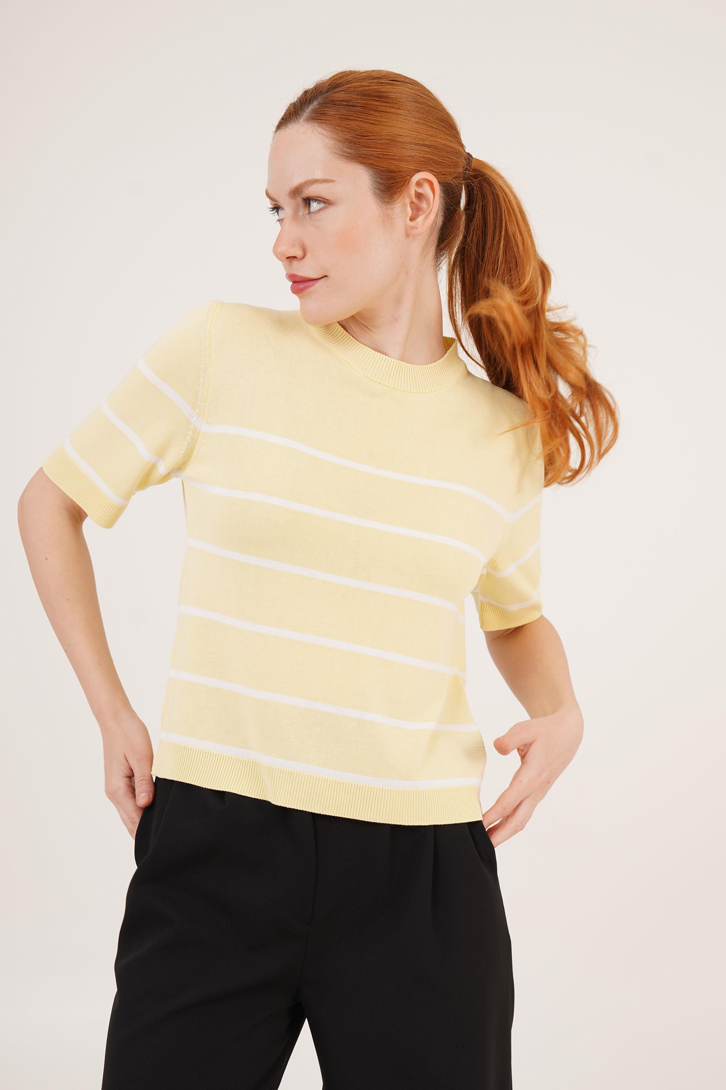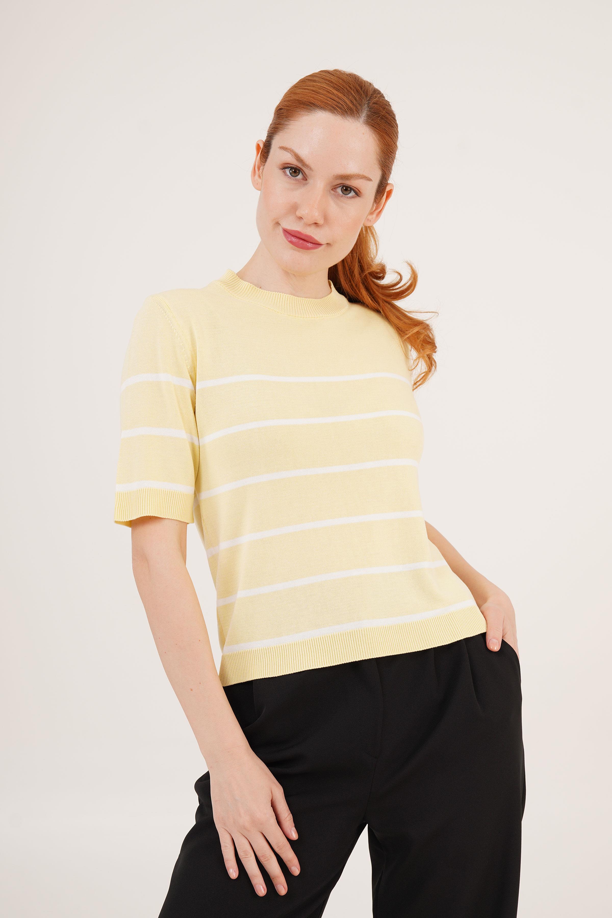 Çizgili Kısa Kol Sarı Toptan Bluz