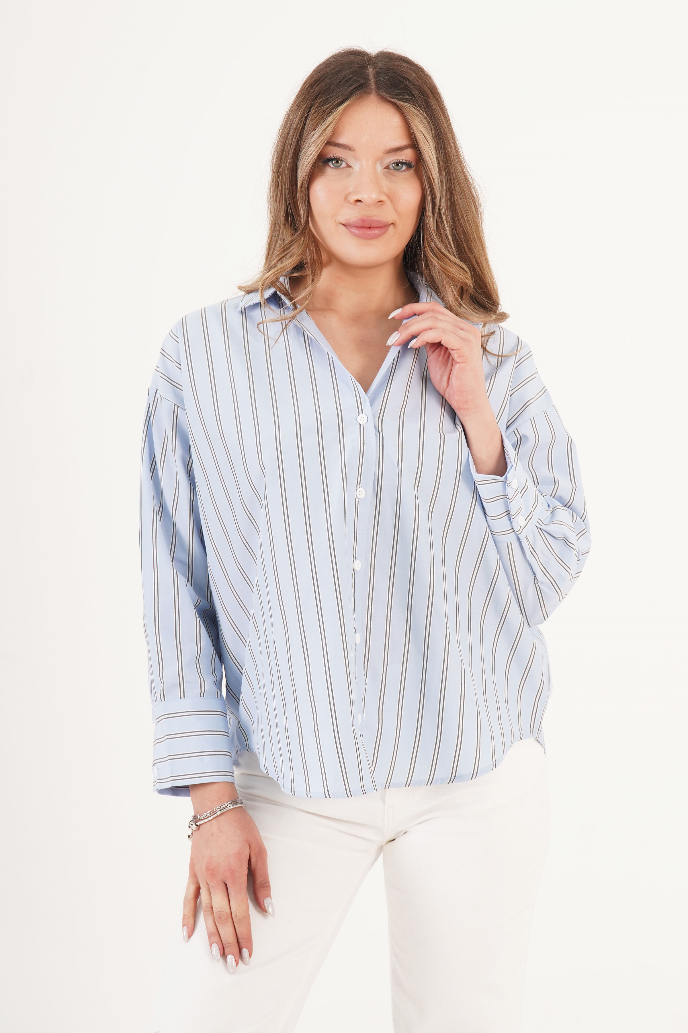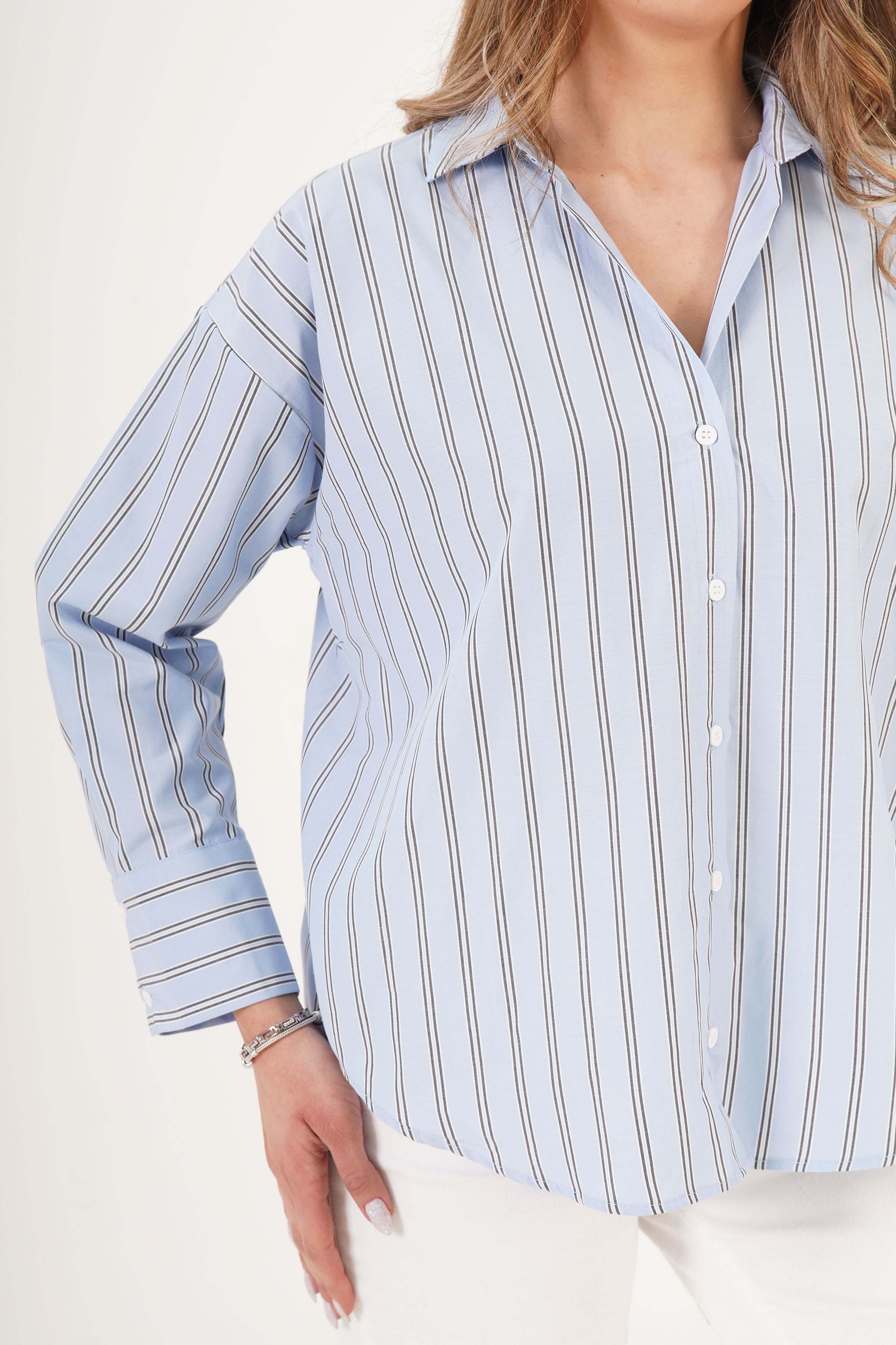 Çizgili Sırt Yırtmaçlı Toptan Mavi Gömlek