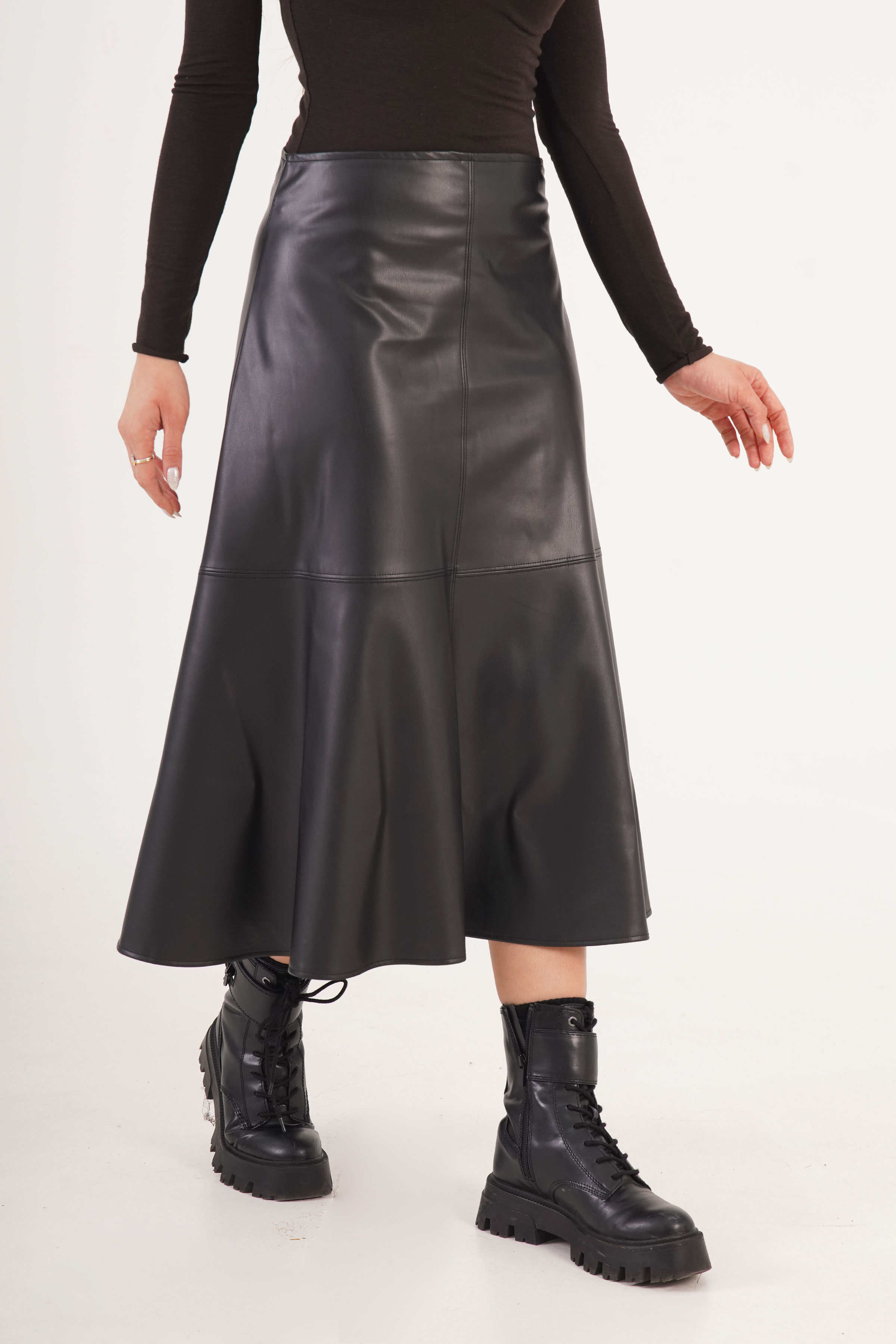 Dikiş Detaylı Basic Toptan Siyah Etek