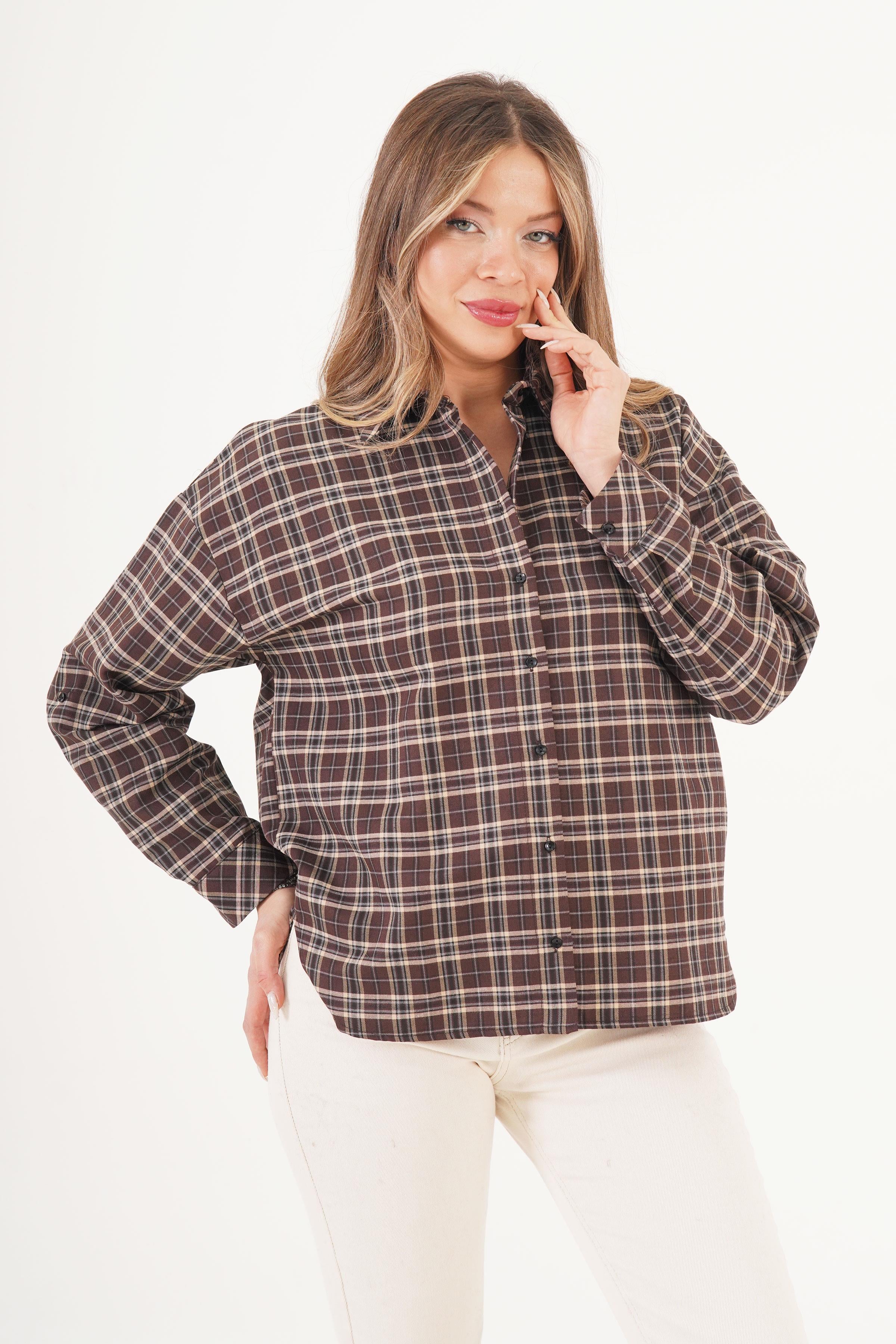 Ekose Desen Kahve Toptan Oduncu Gömlek