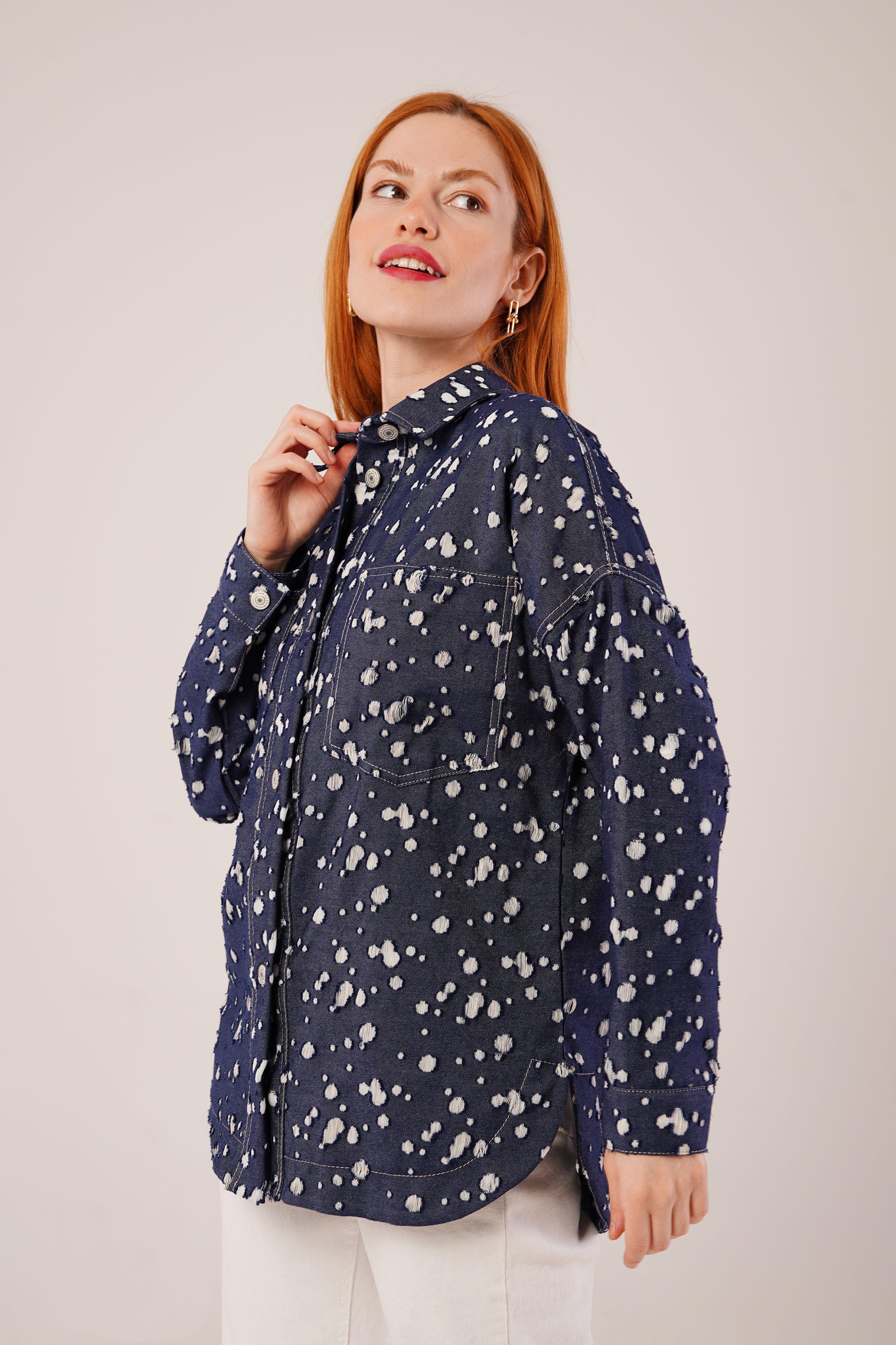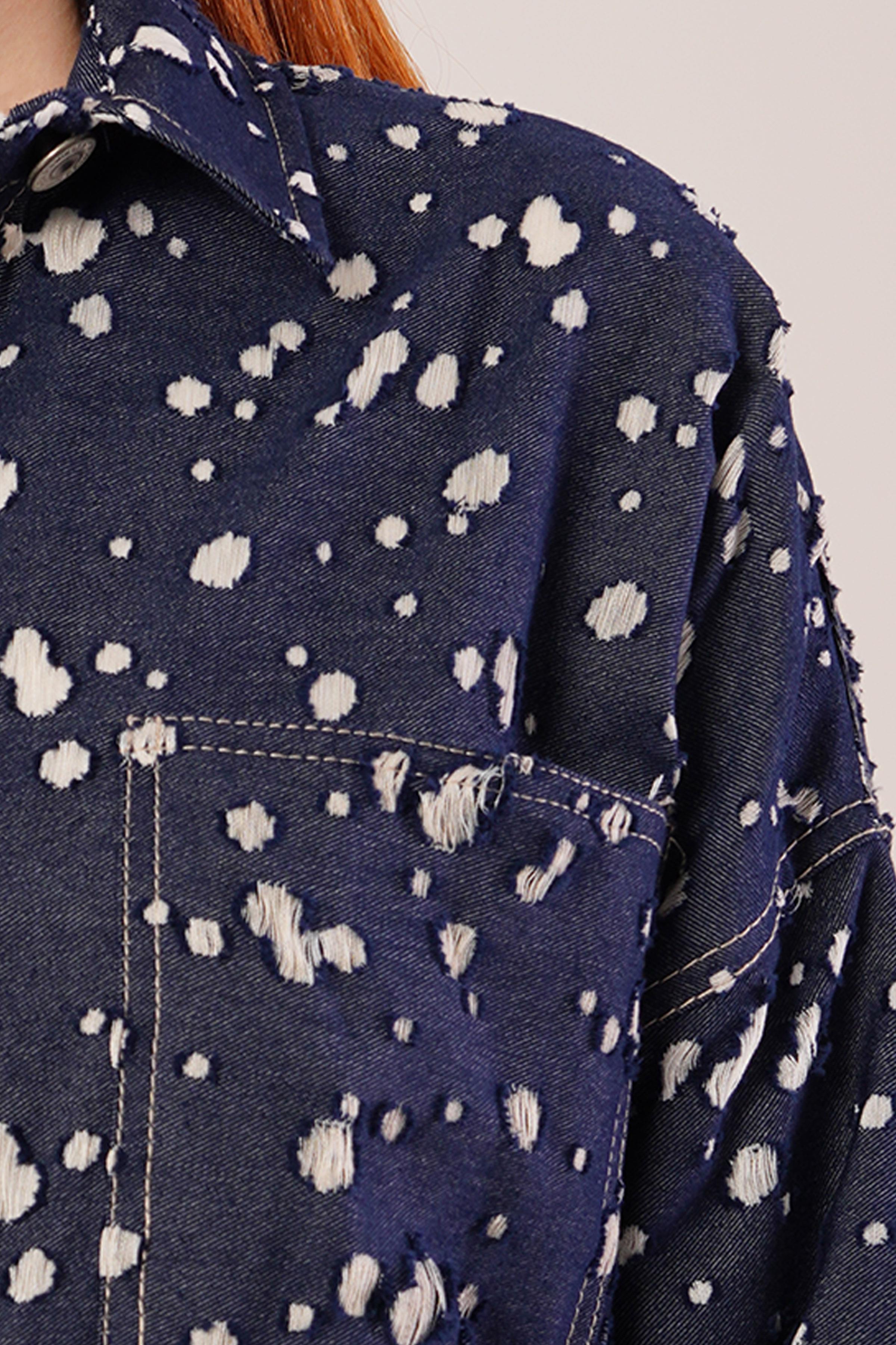 Eskitme Görünümlü Denim Toptan Mavi Gömlek