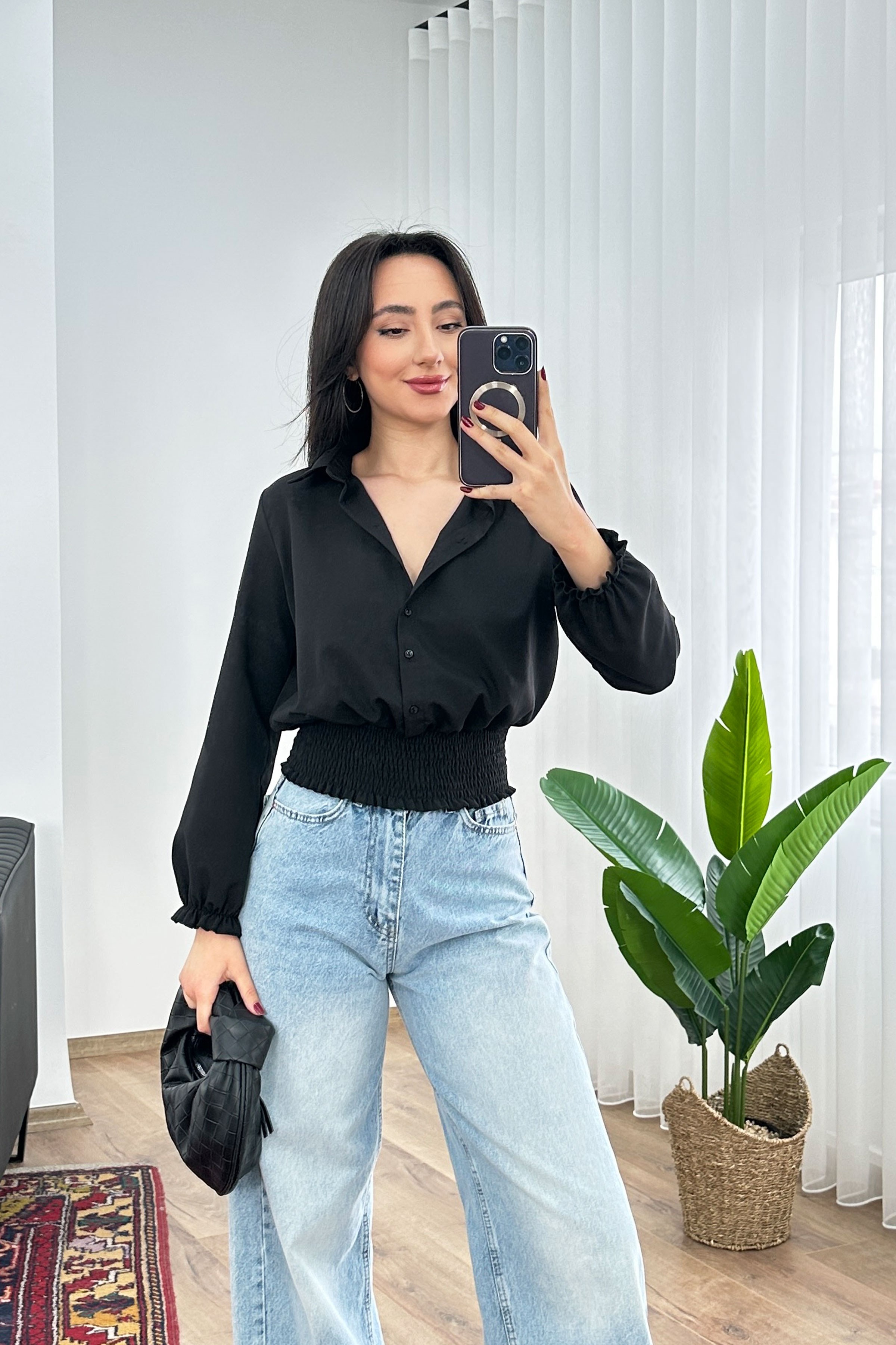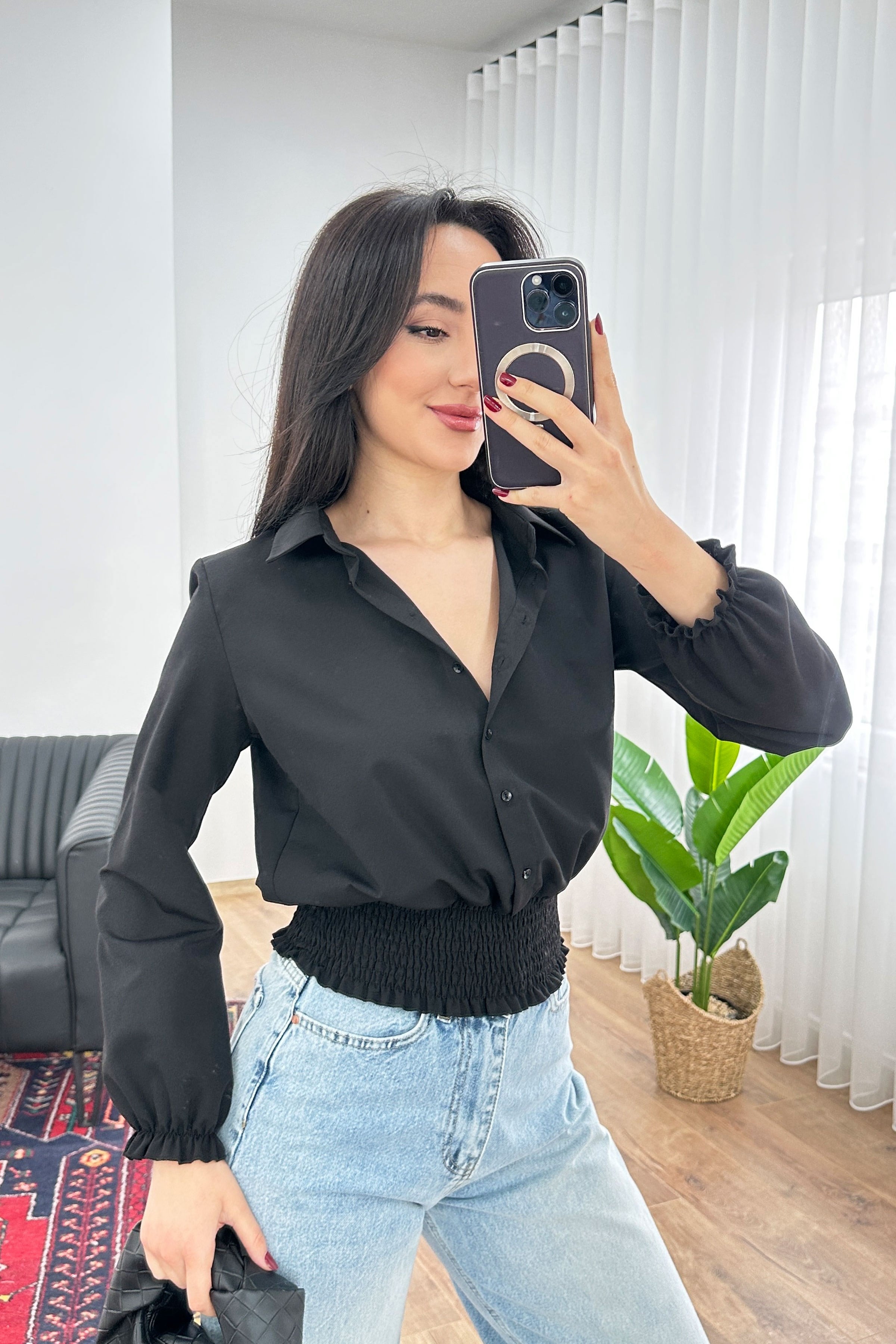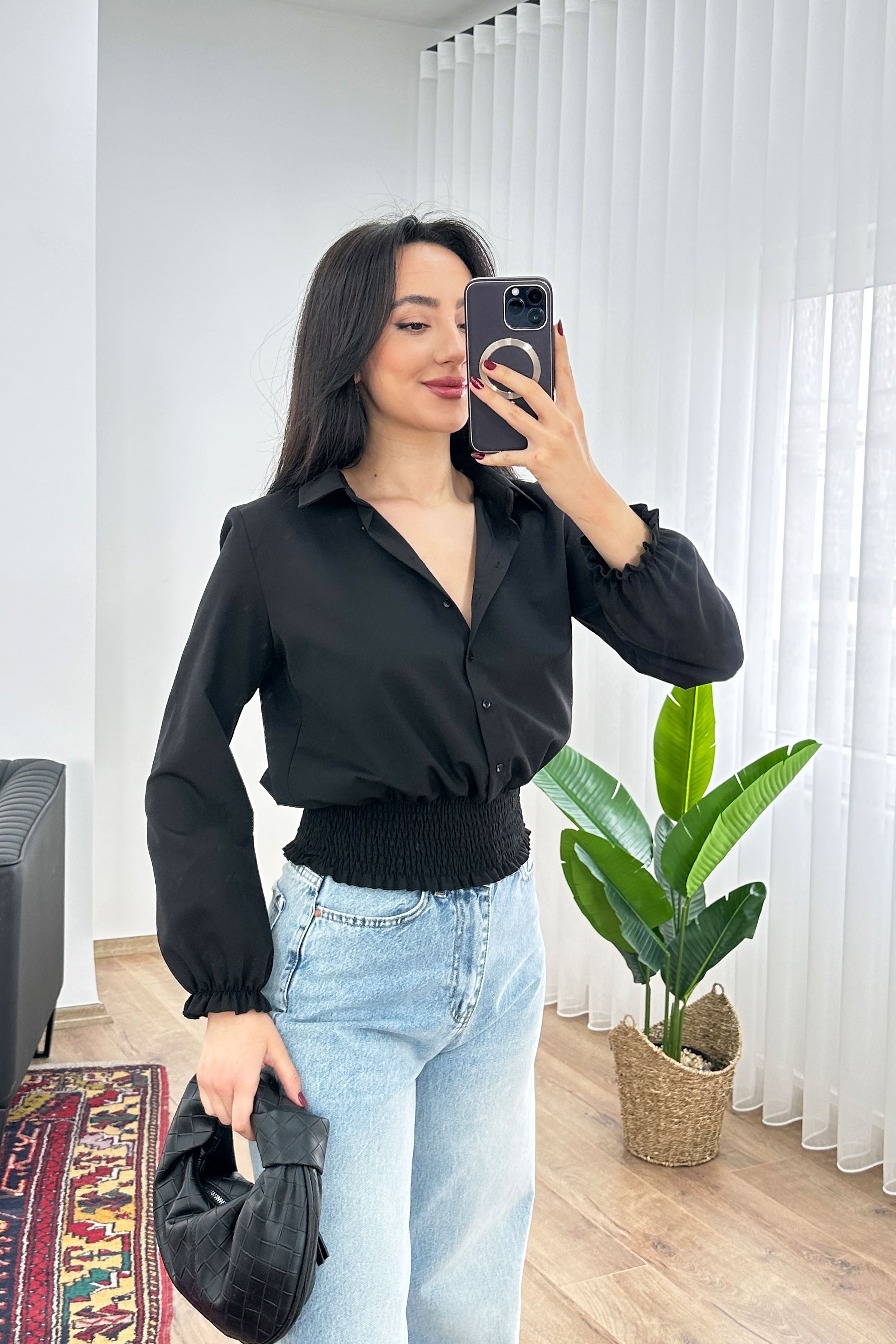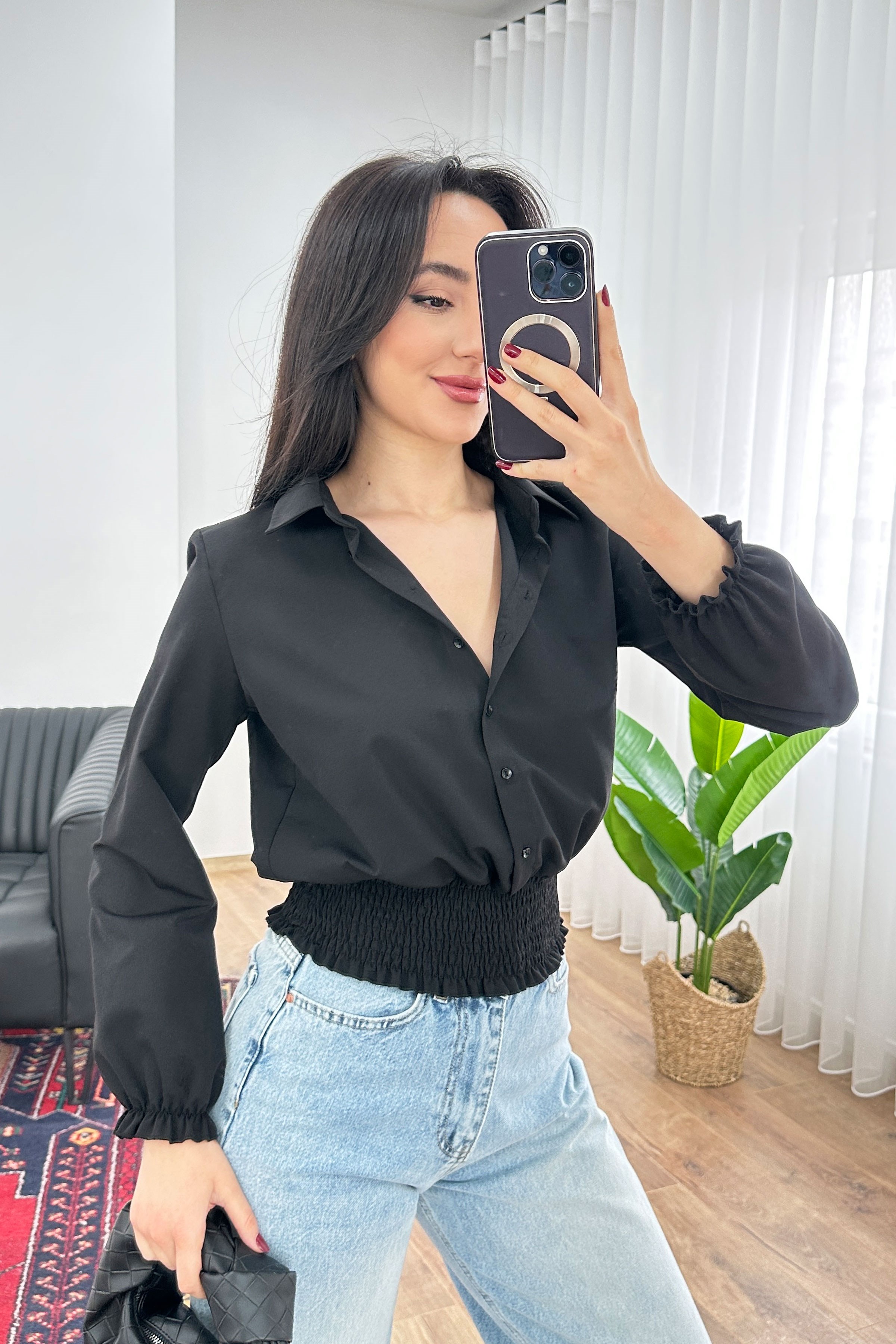 Eteği Gipeli Düğmeli Siyah Toptan Gömlek