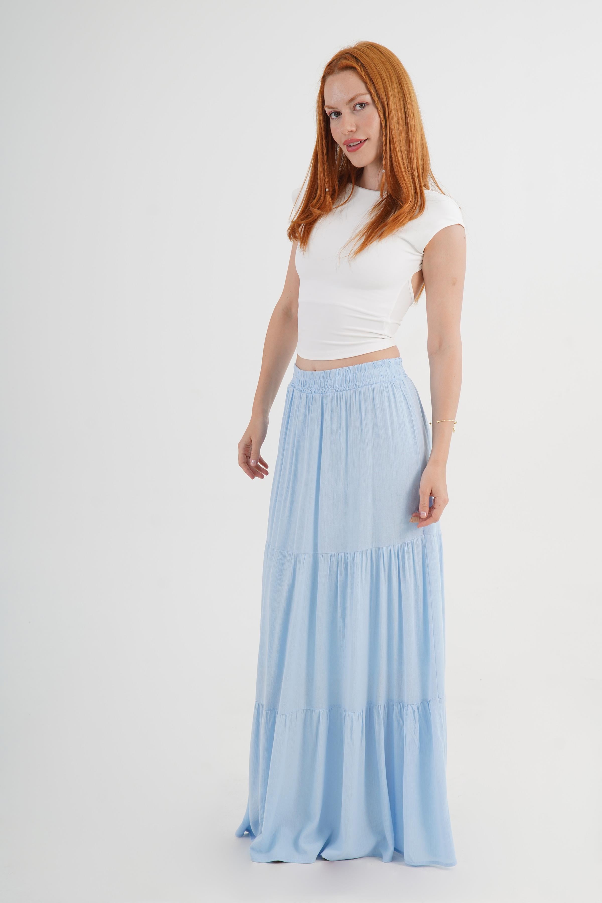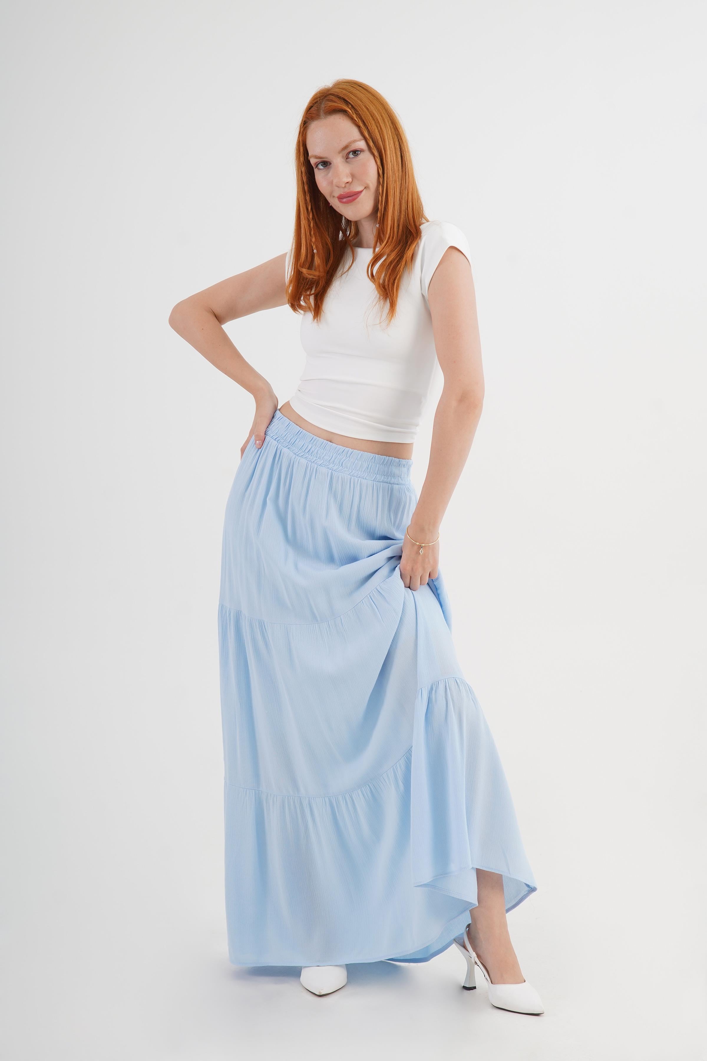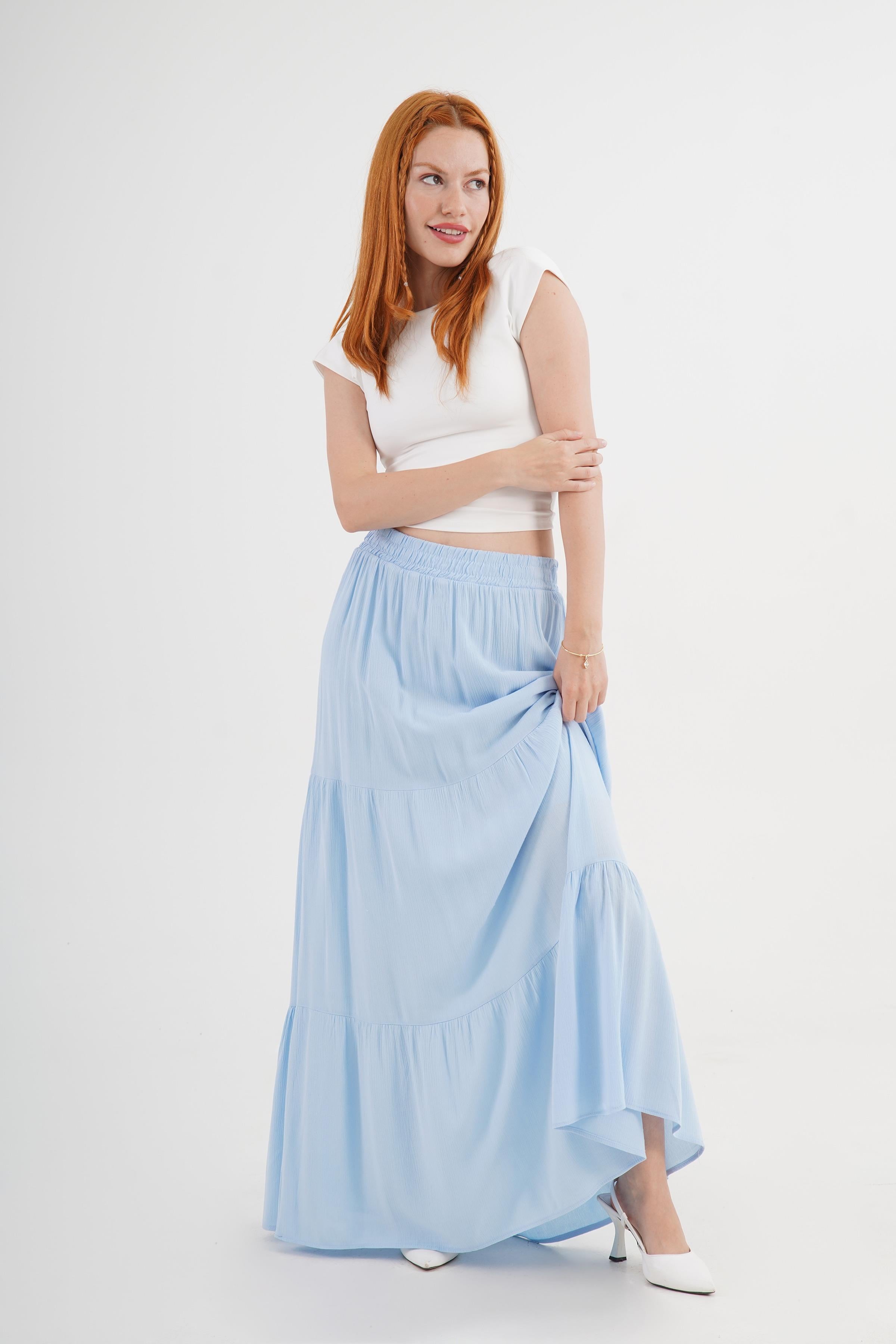 Fırfırlı Uzun Toptan Bebe Mavisi Etek