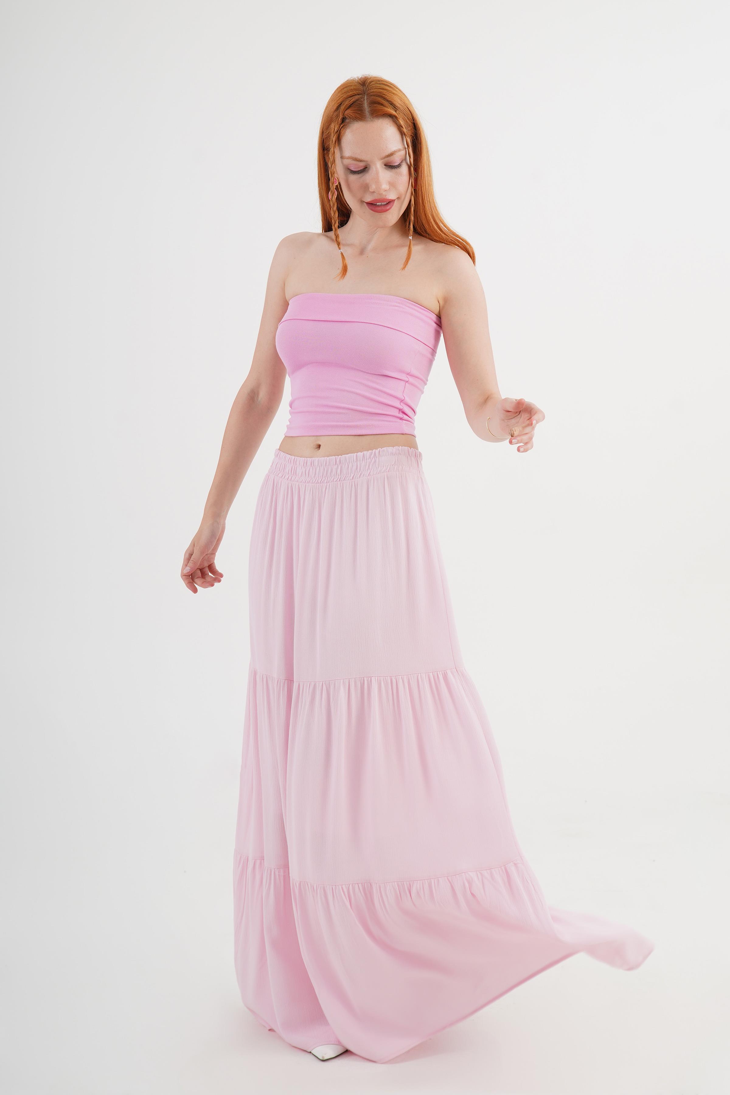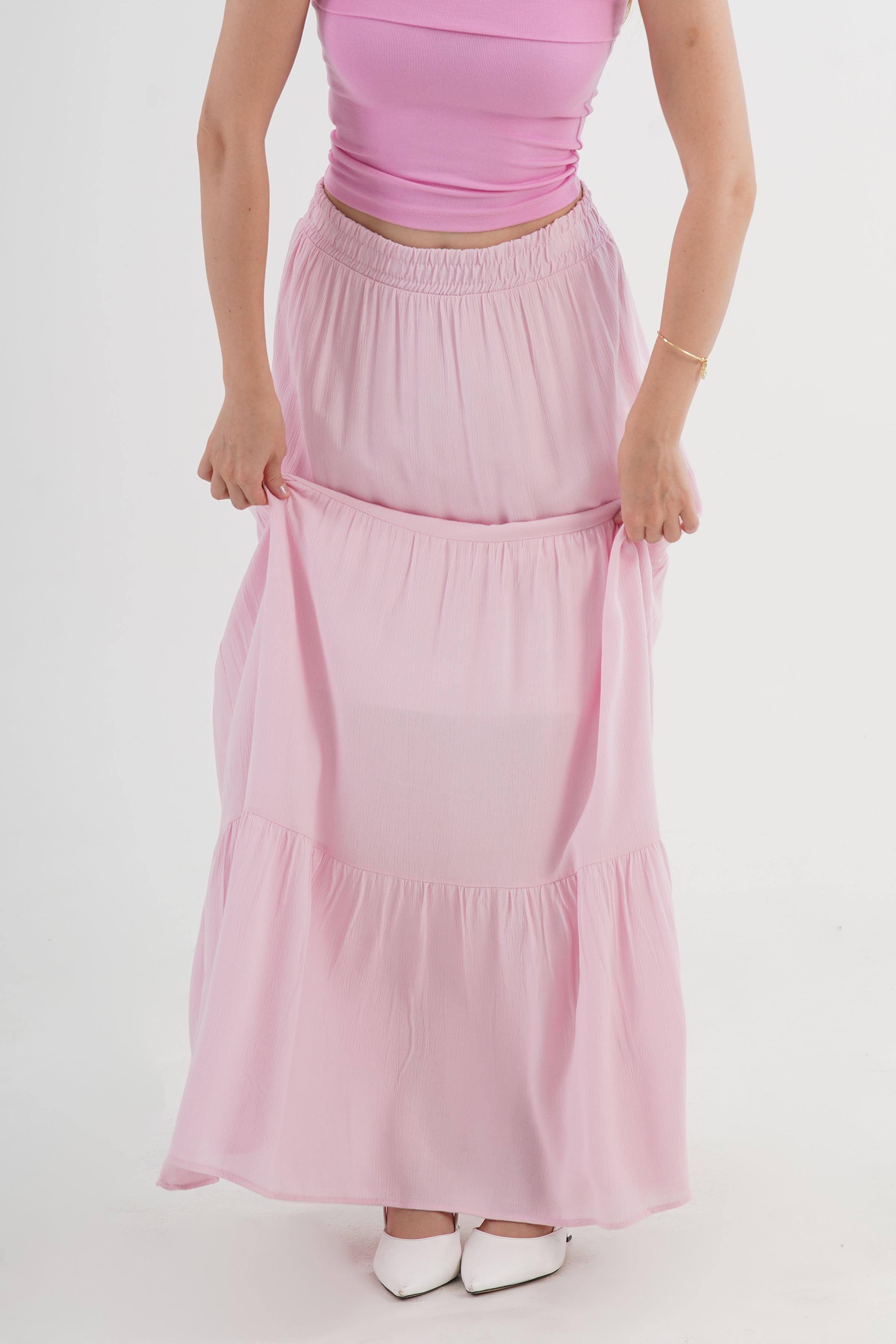 Fırfırlı Uzun Toptan Pembe Etek