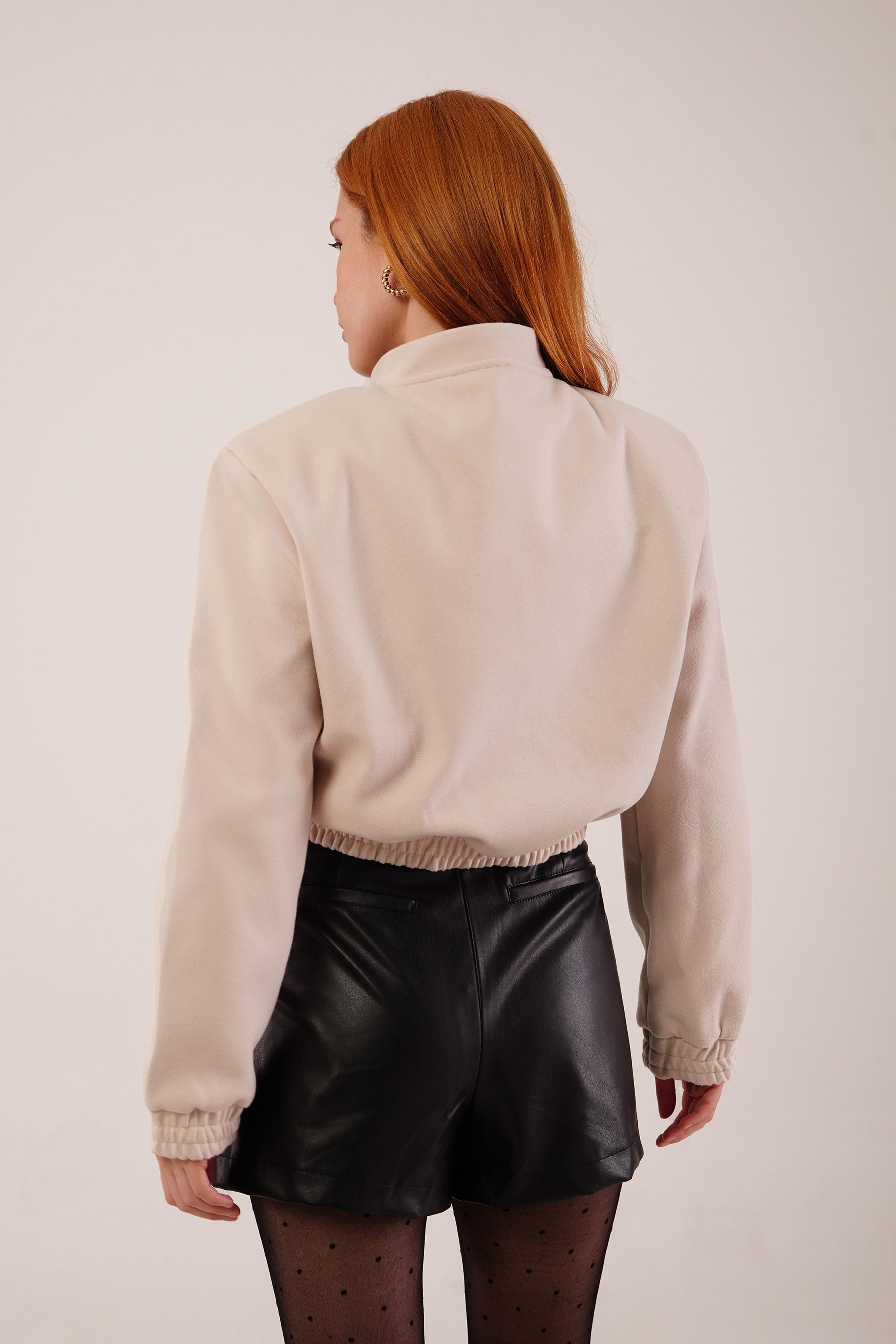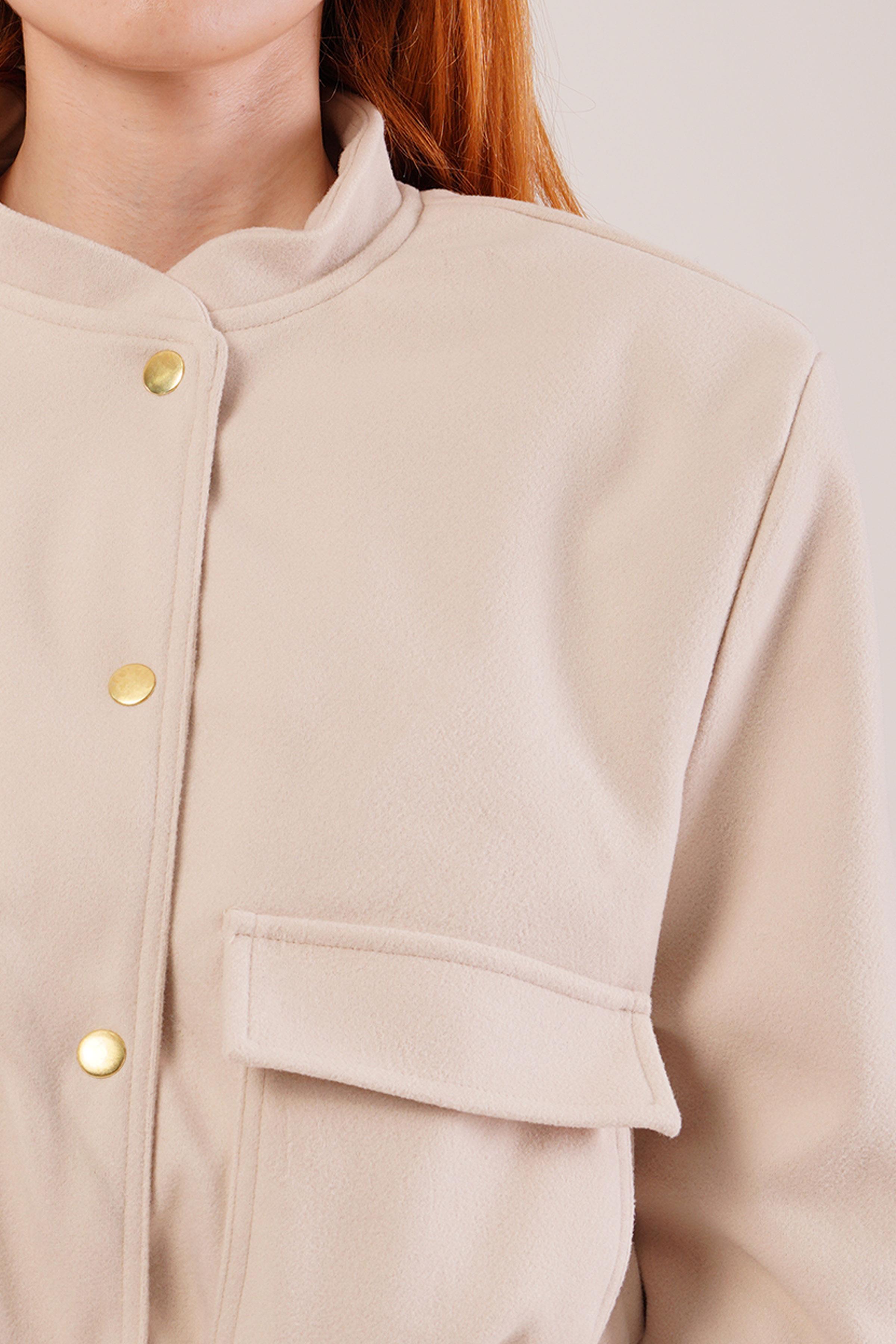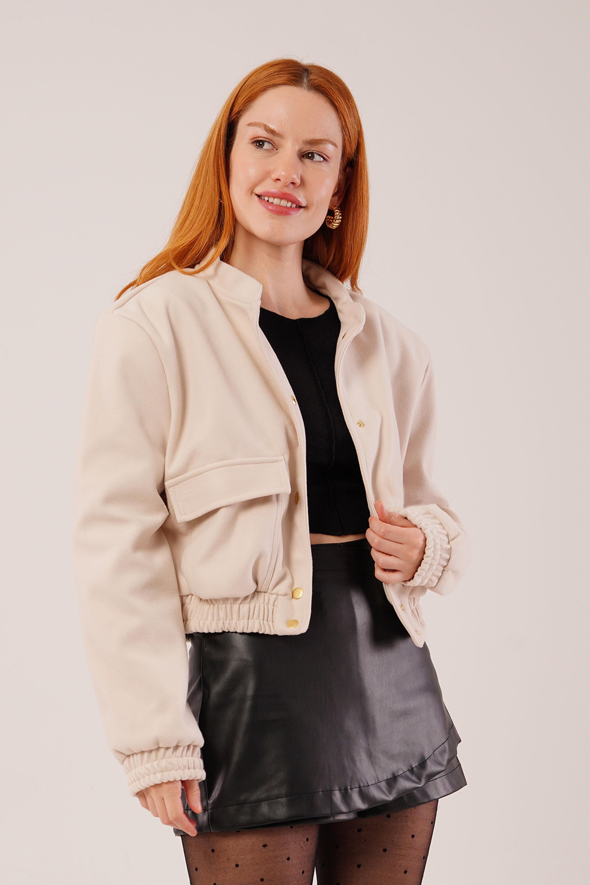 Gold Düğmeli Kaşe Toptan Bej Bomber Ceket