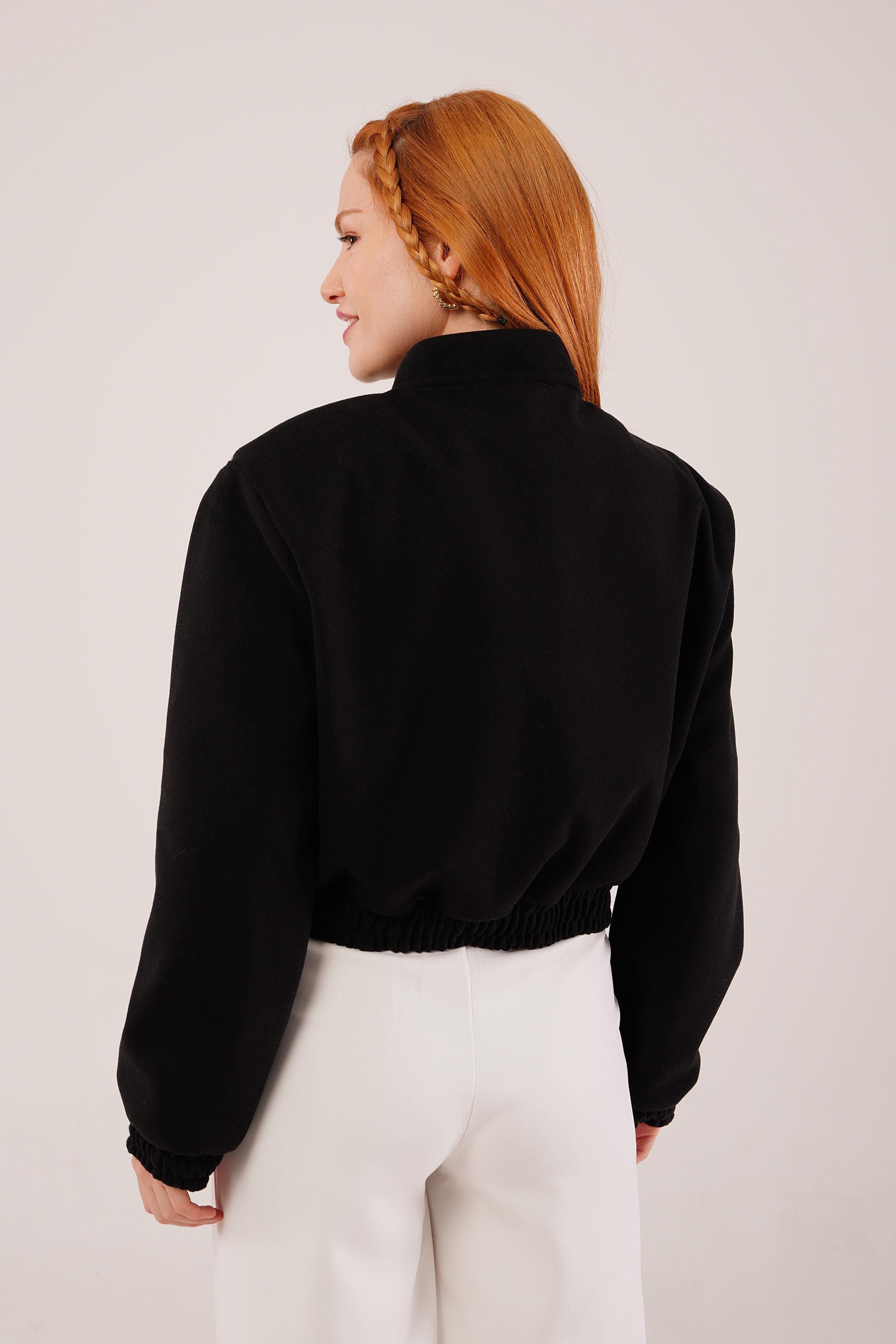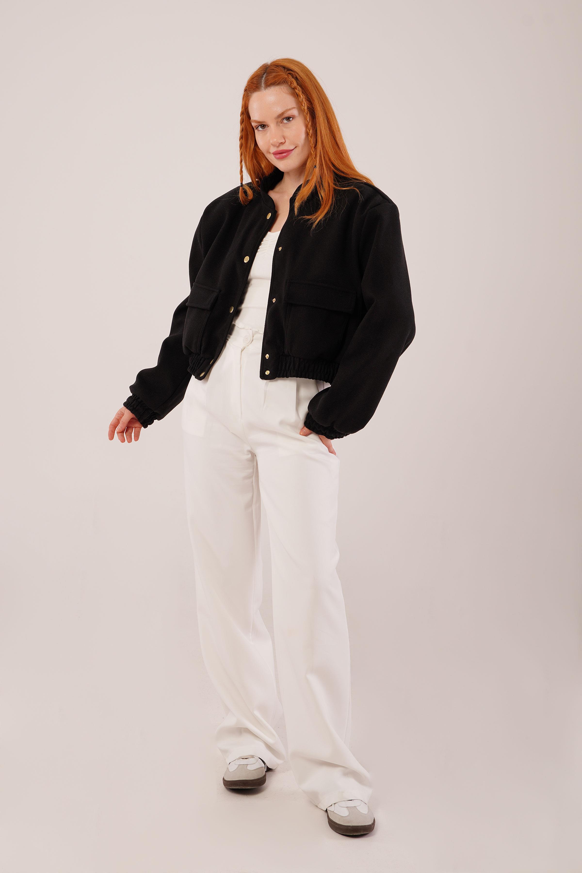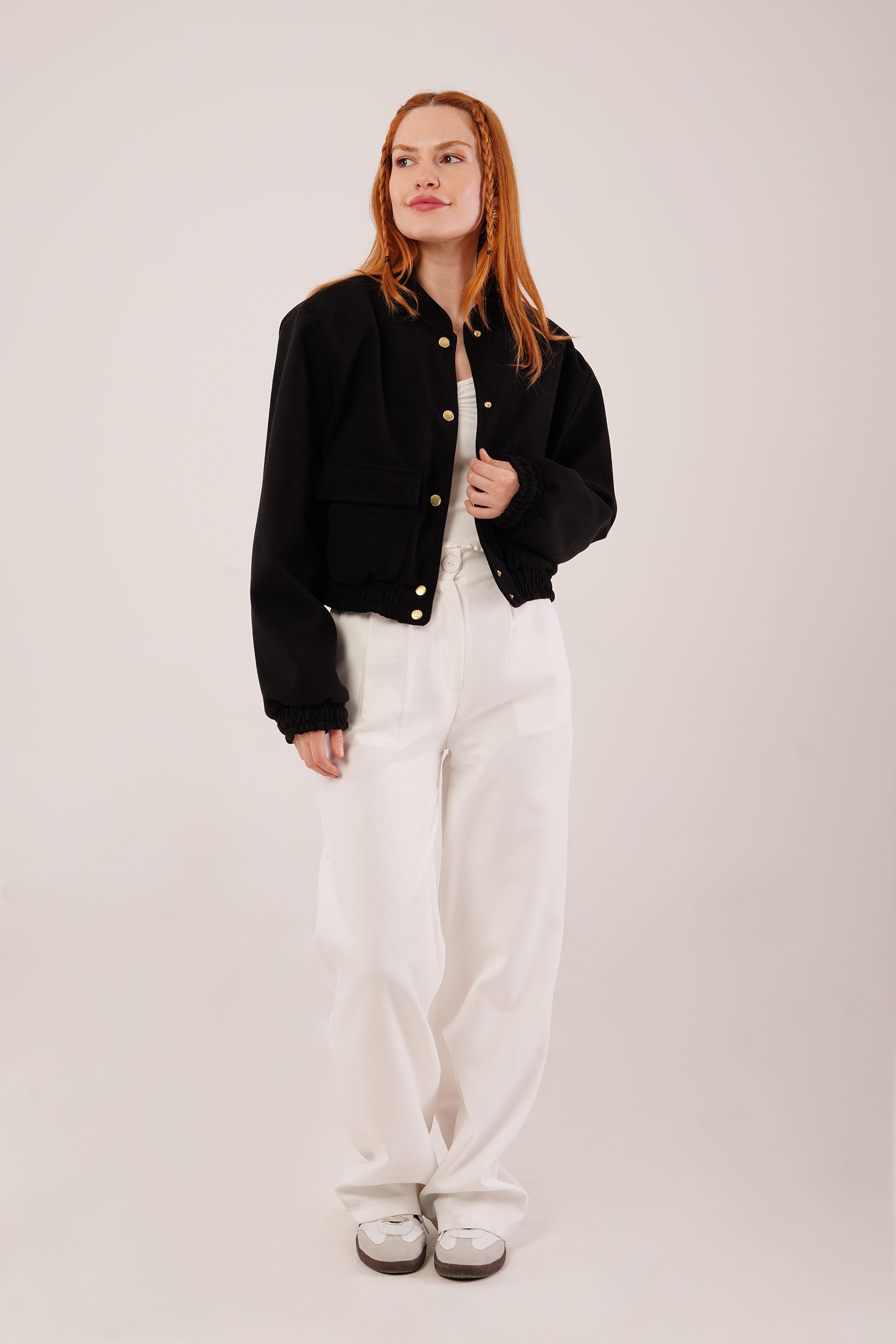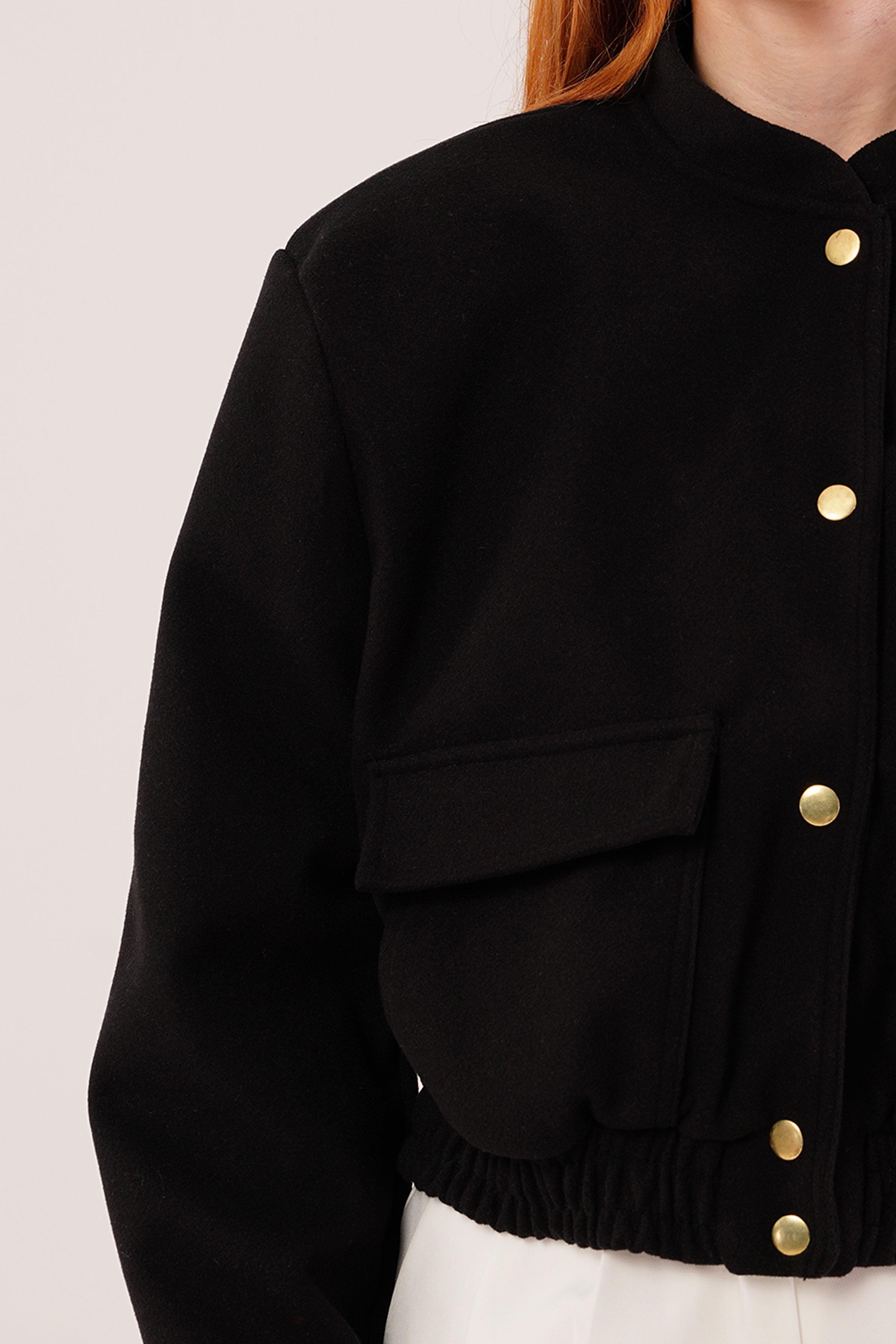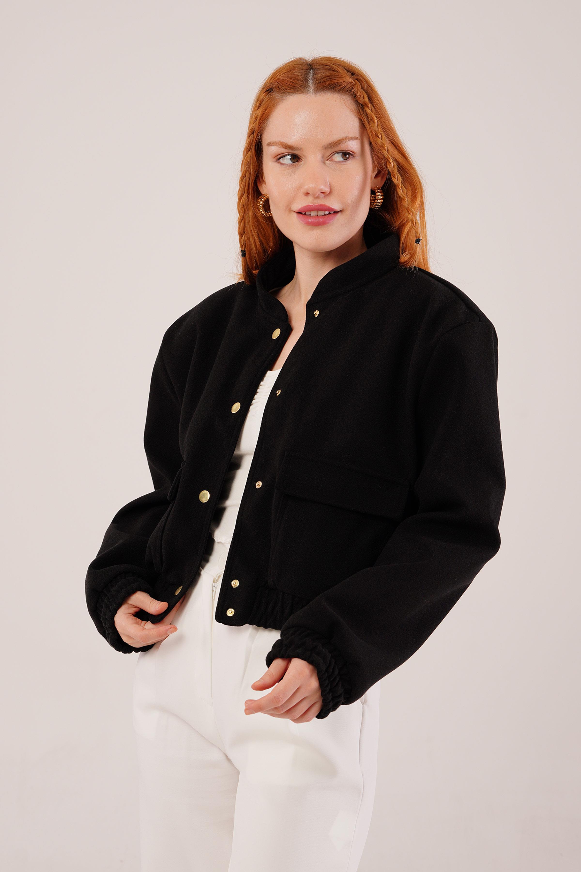 Gold Düğmeli Kaşe Toptan Siyah Bomber Ceket
