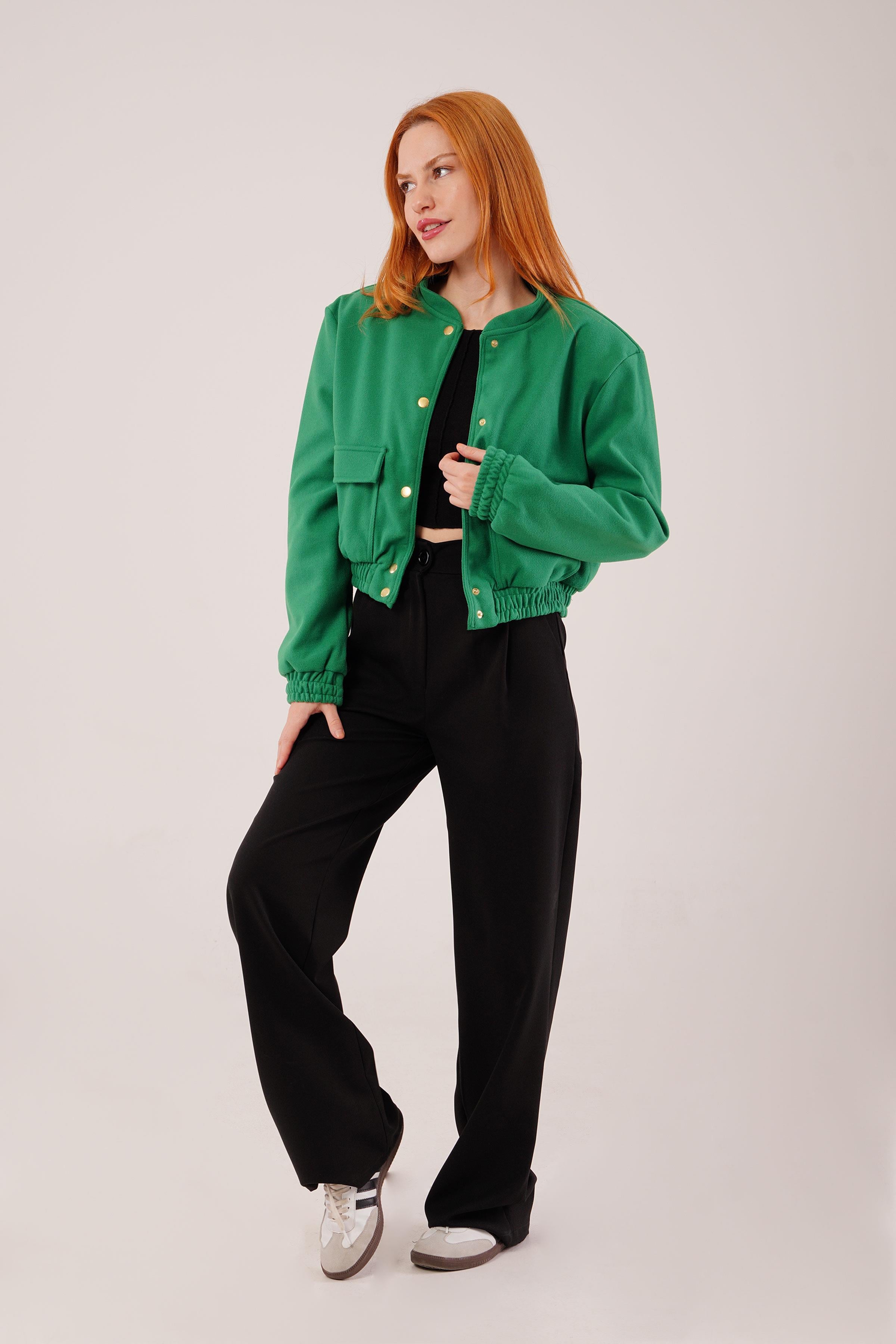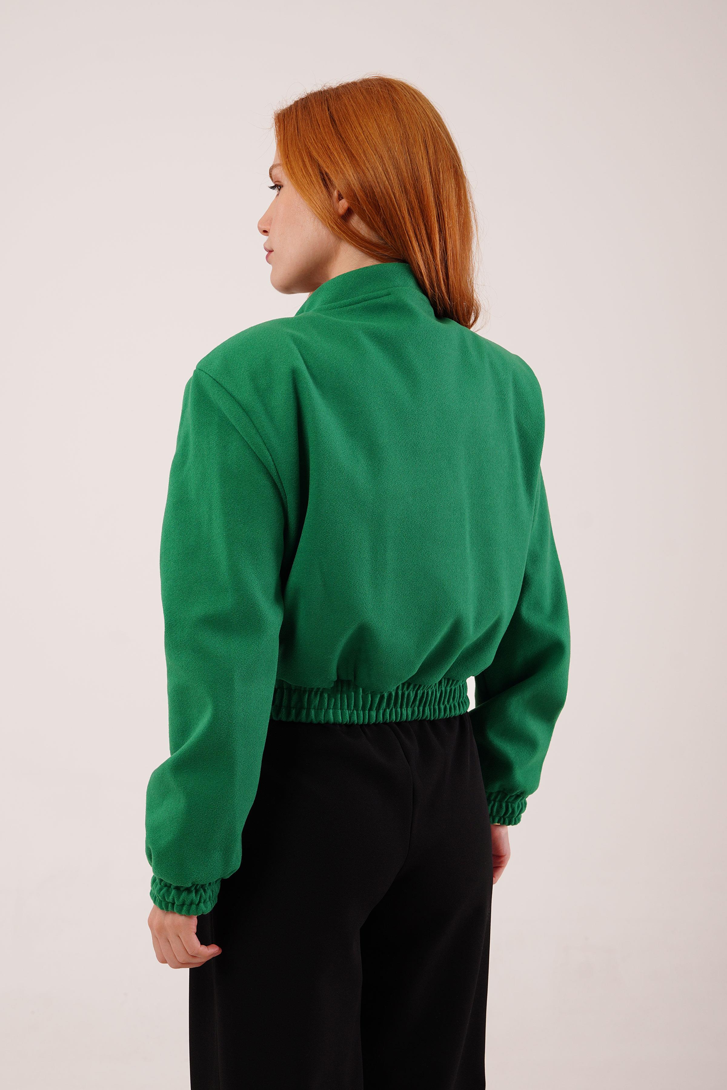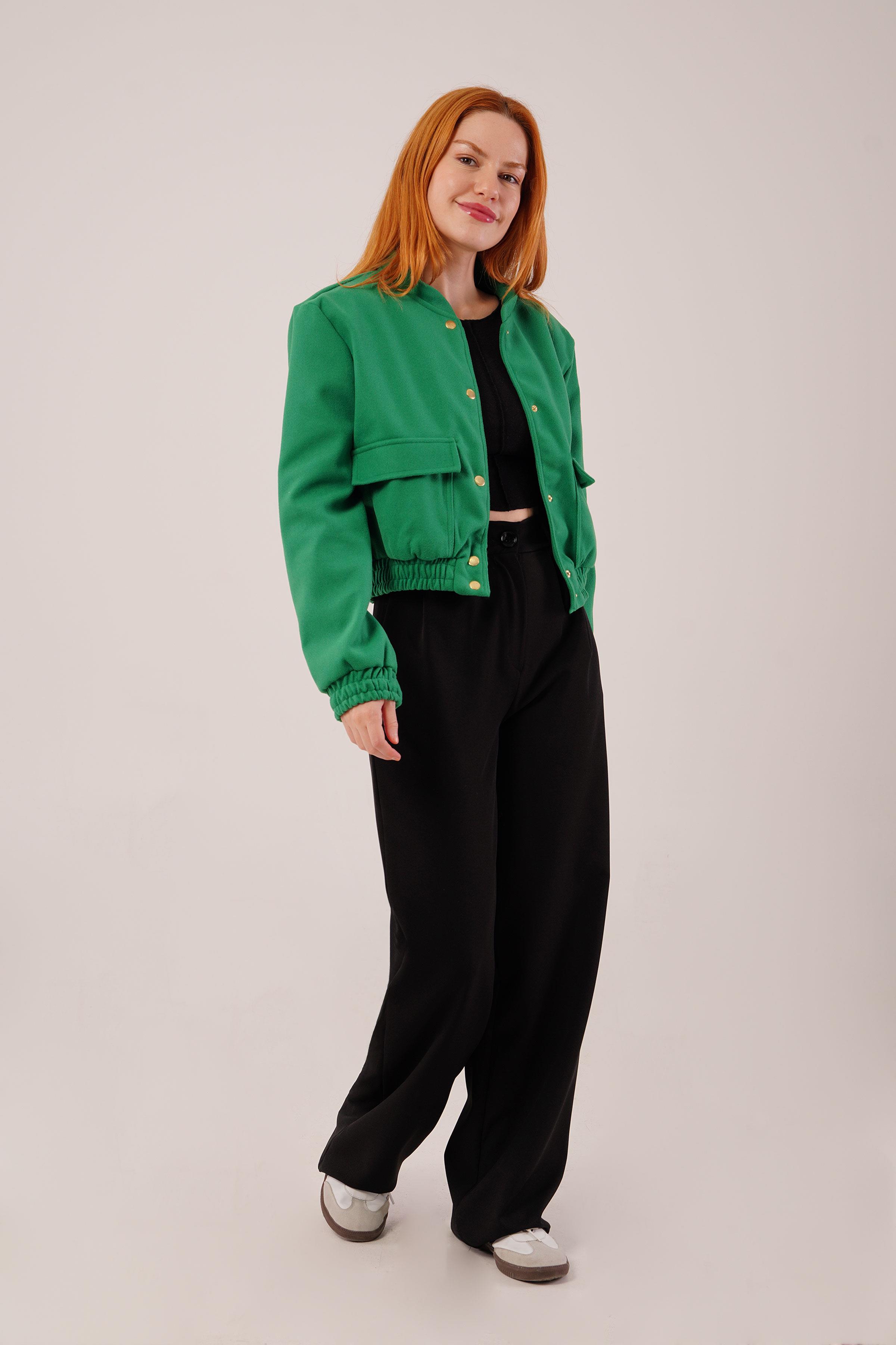 Gold Düğmeli Kaşe Toptan Yeşil Bomber Ceket
