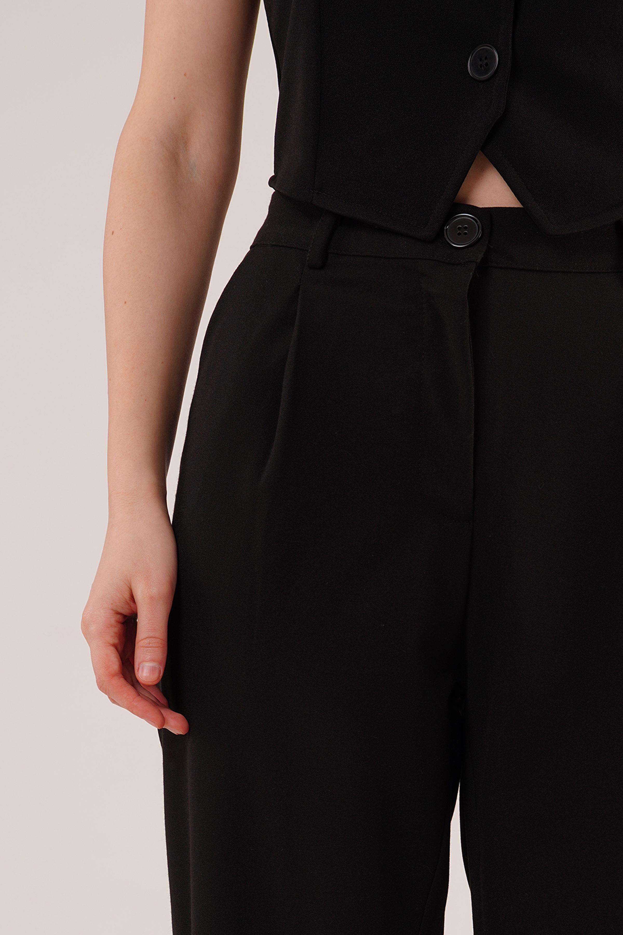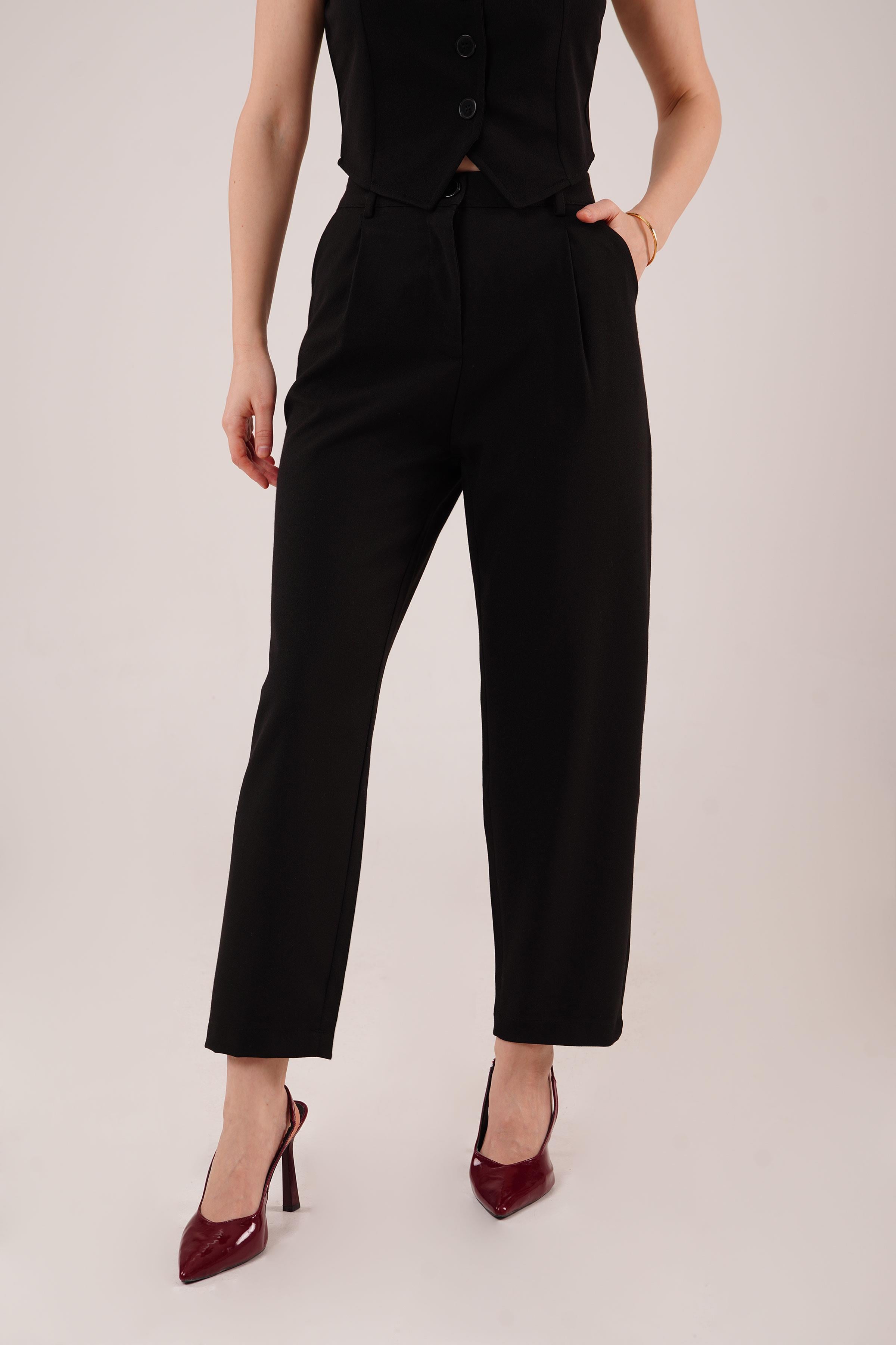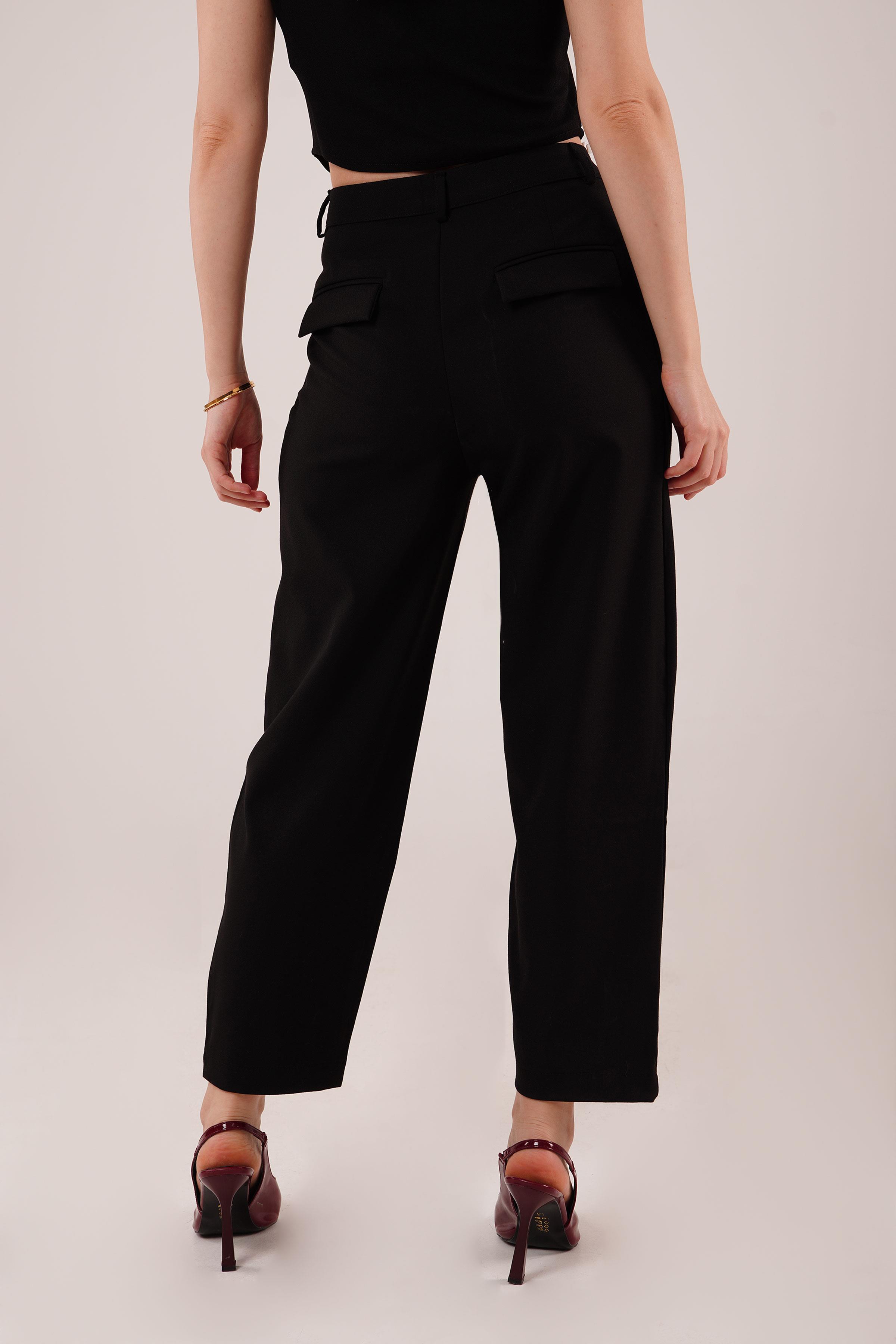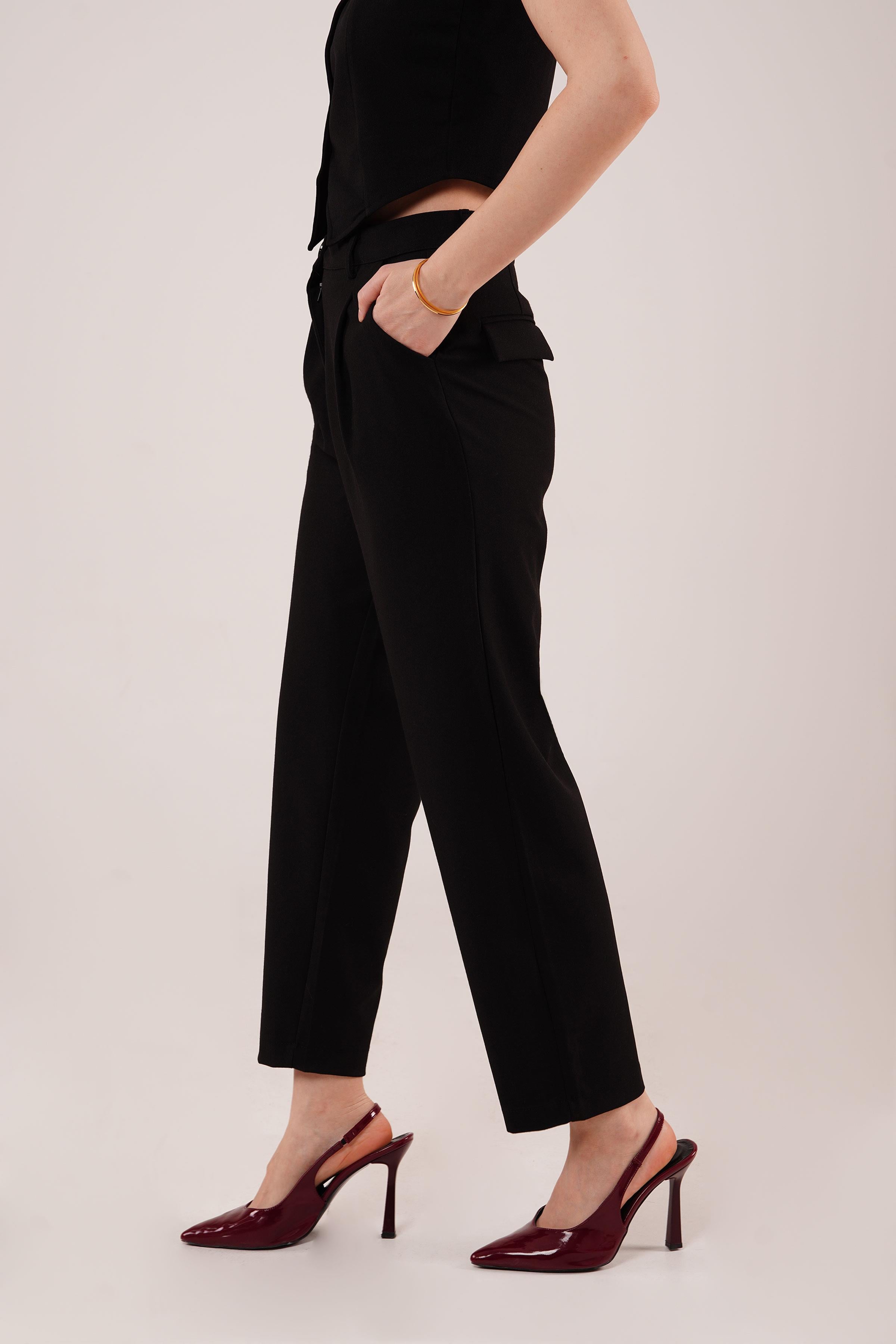Kapama Cep Detaylı Toptan Siyah Pantolon