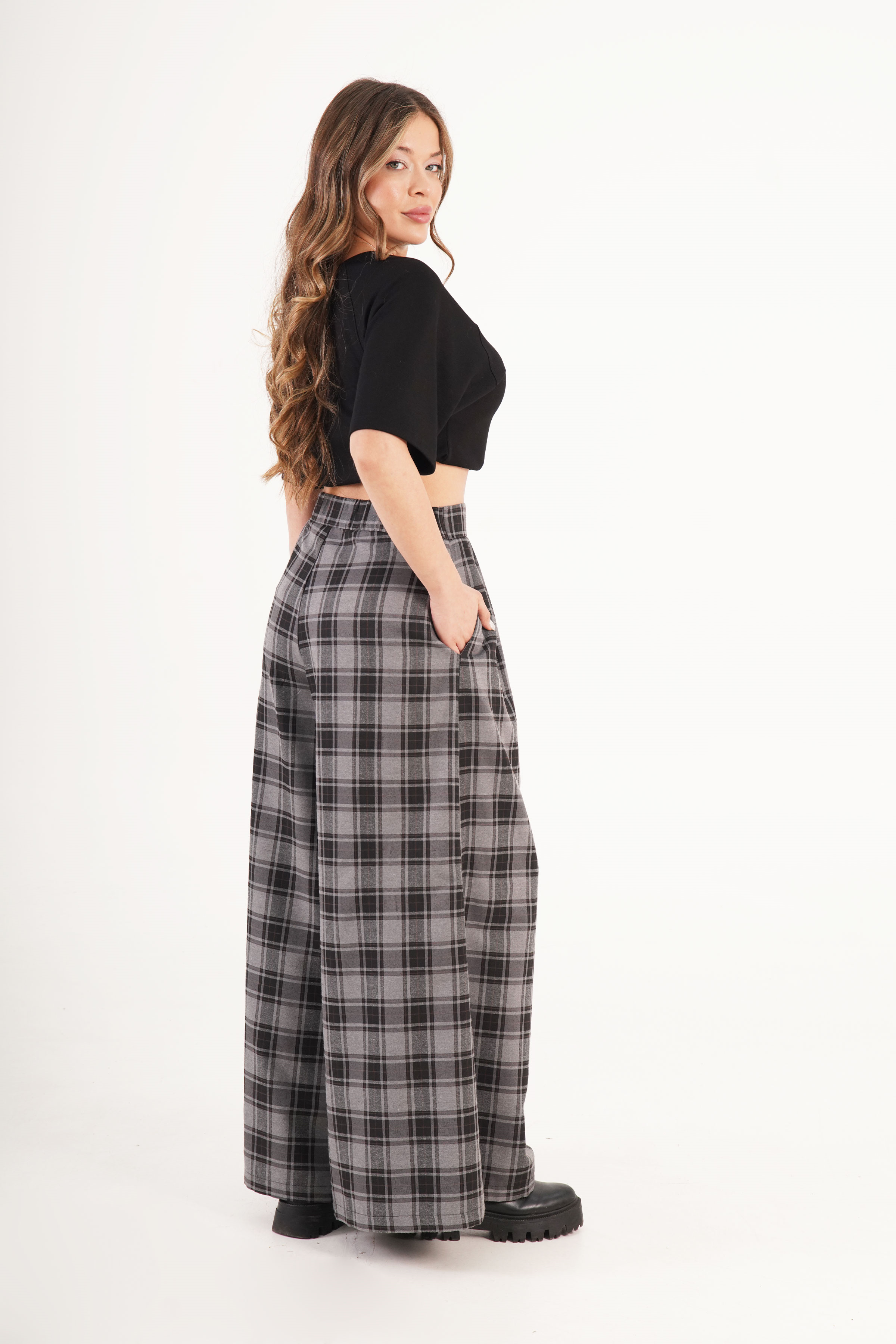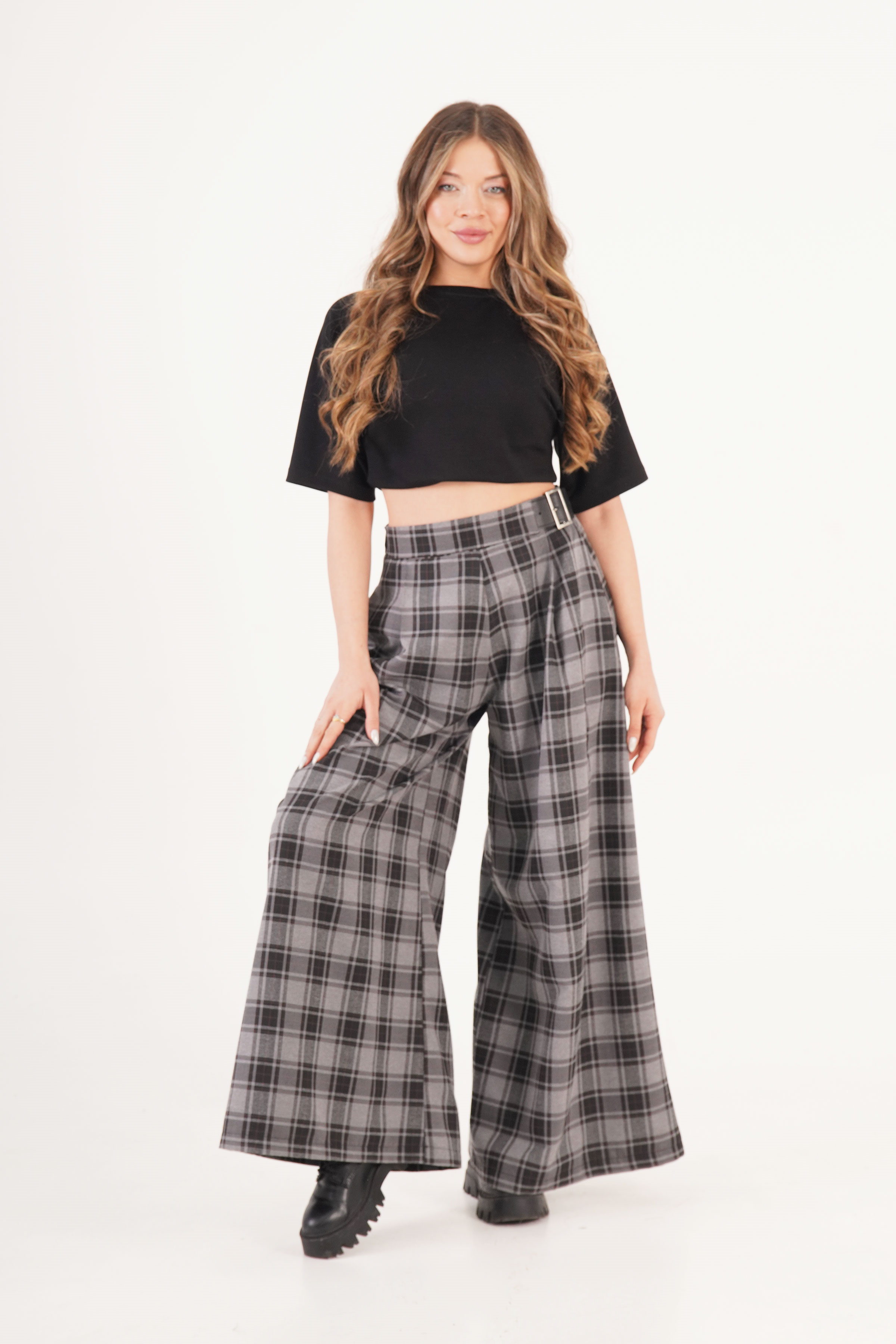 Kemer Detaylı Ekoseli Toptan Antrasit Pantolon