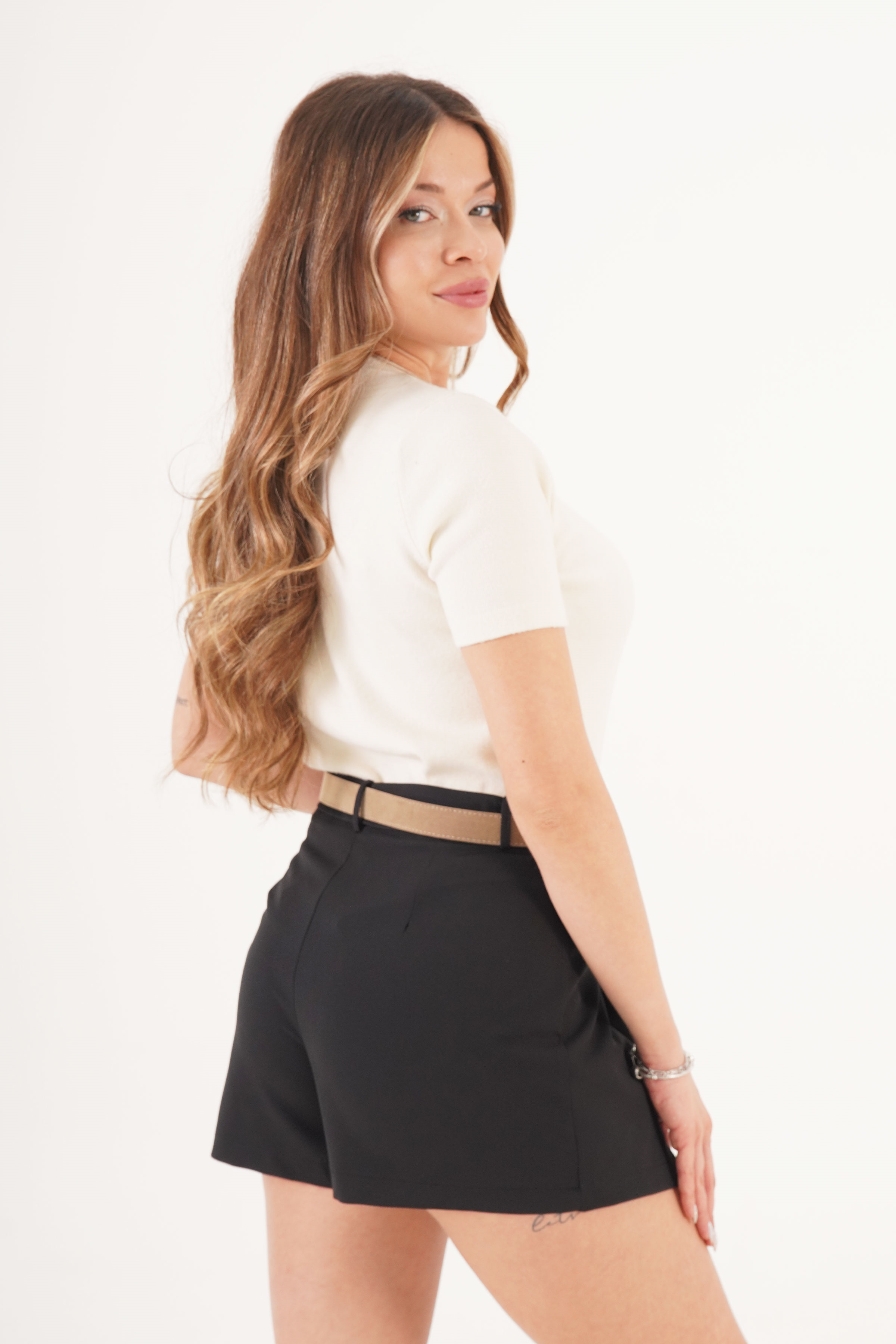 Kemerli Piliseli Siyah Mini Şort Etek