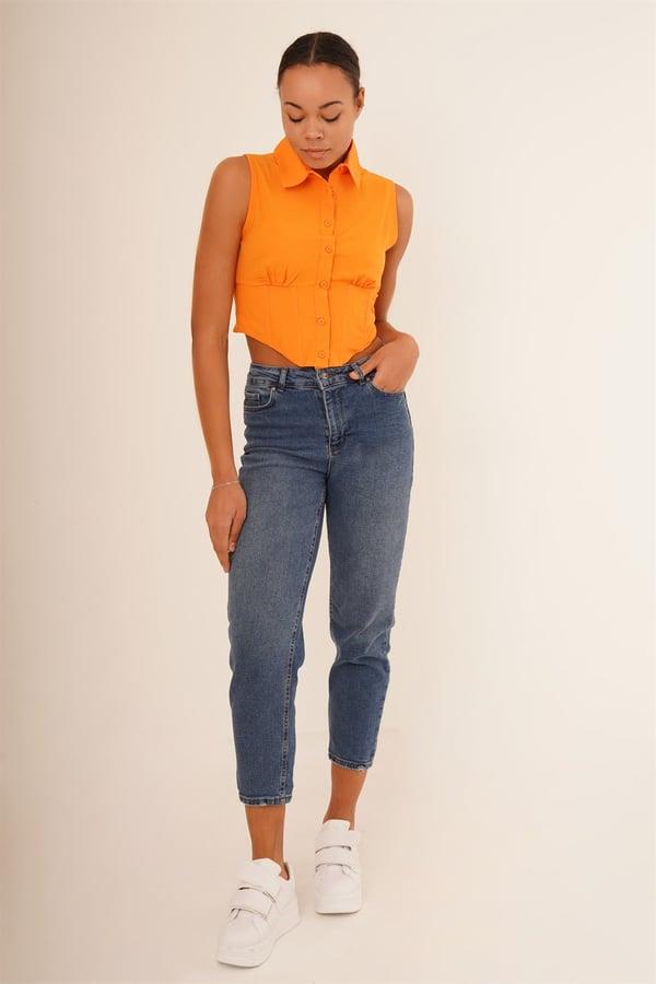 Korse Detay Kısa Kollu Toptan Oranj Gömlek