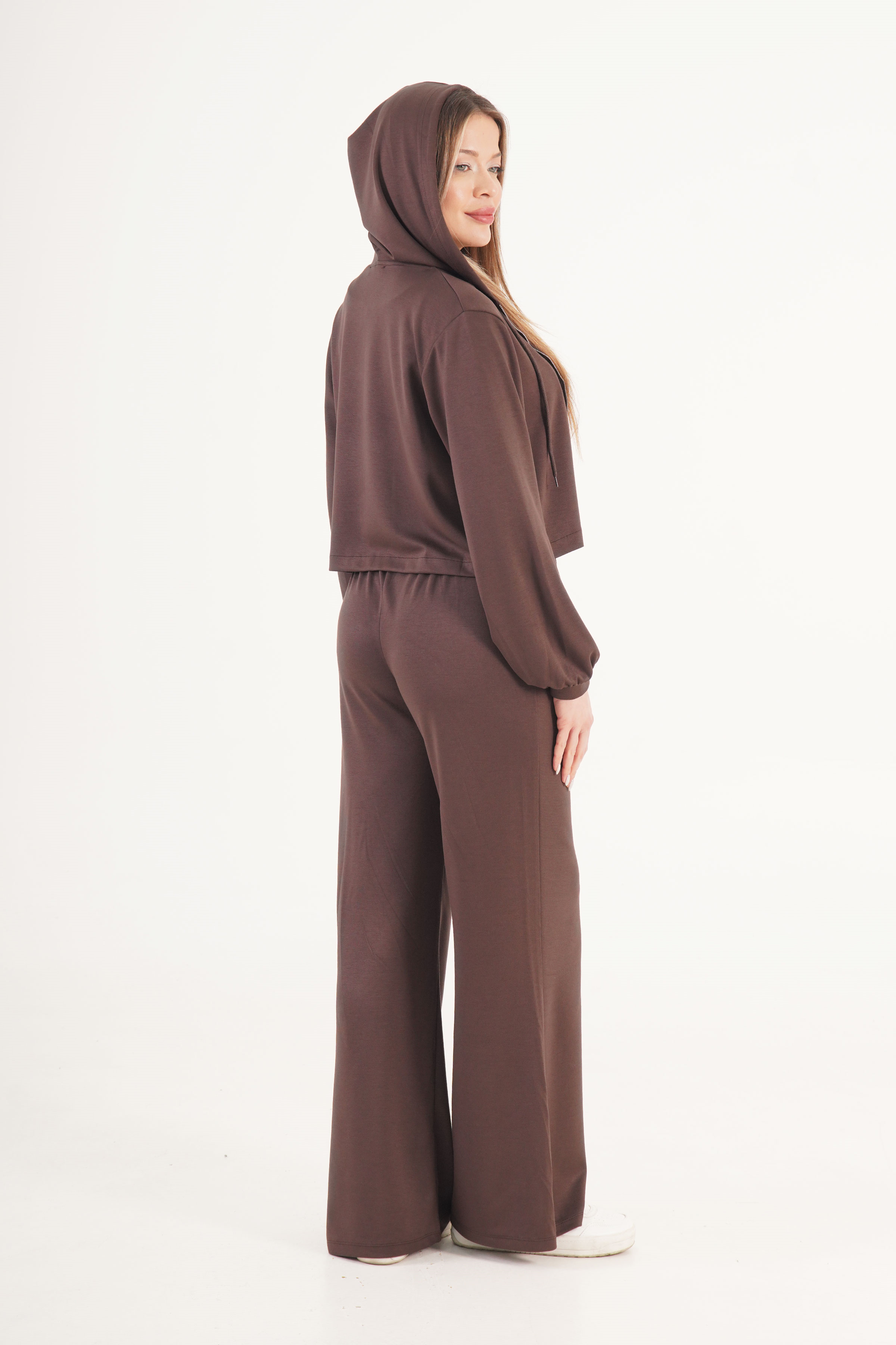 Modal Hırka Pantolon Crop Kahve Toptan Üçlü Takım