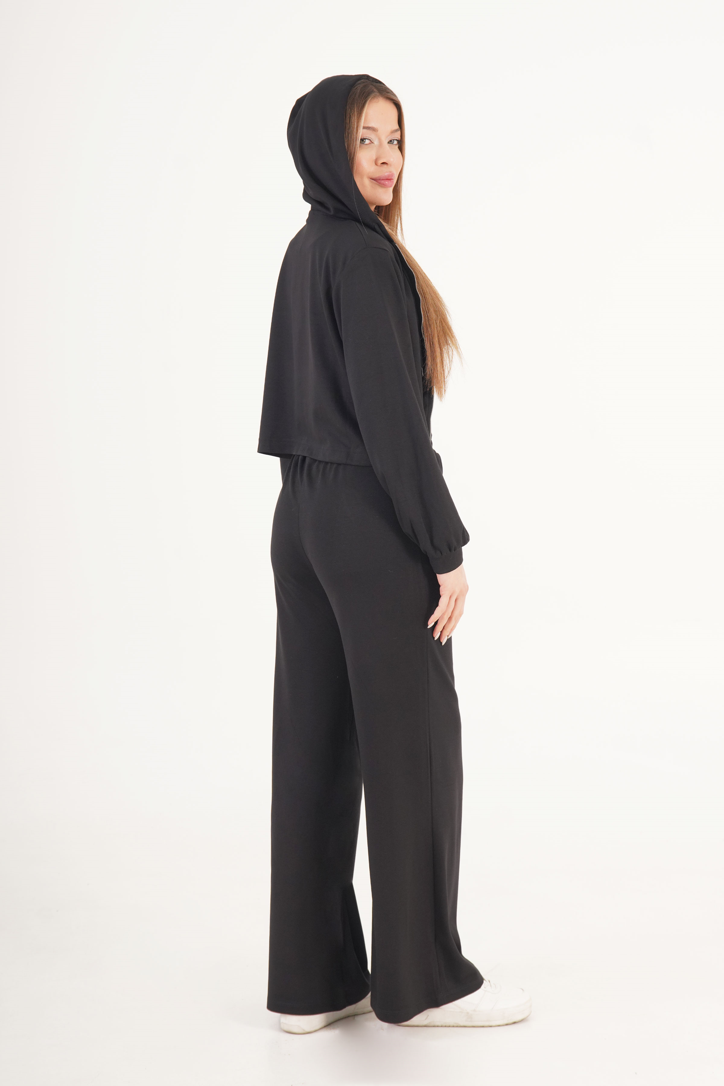 Modal Hırka Pantolon Crop Siyah Toptan Üçlü Takım