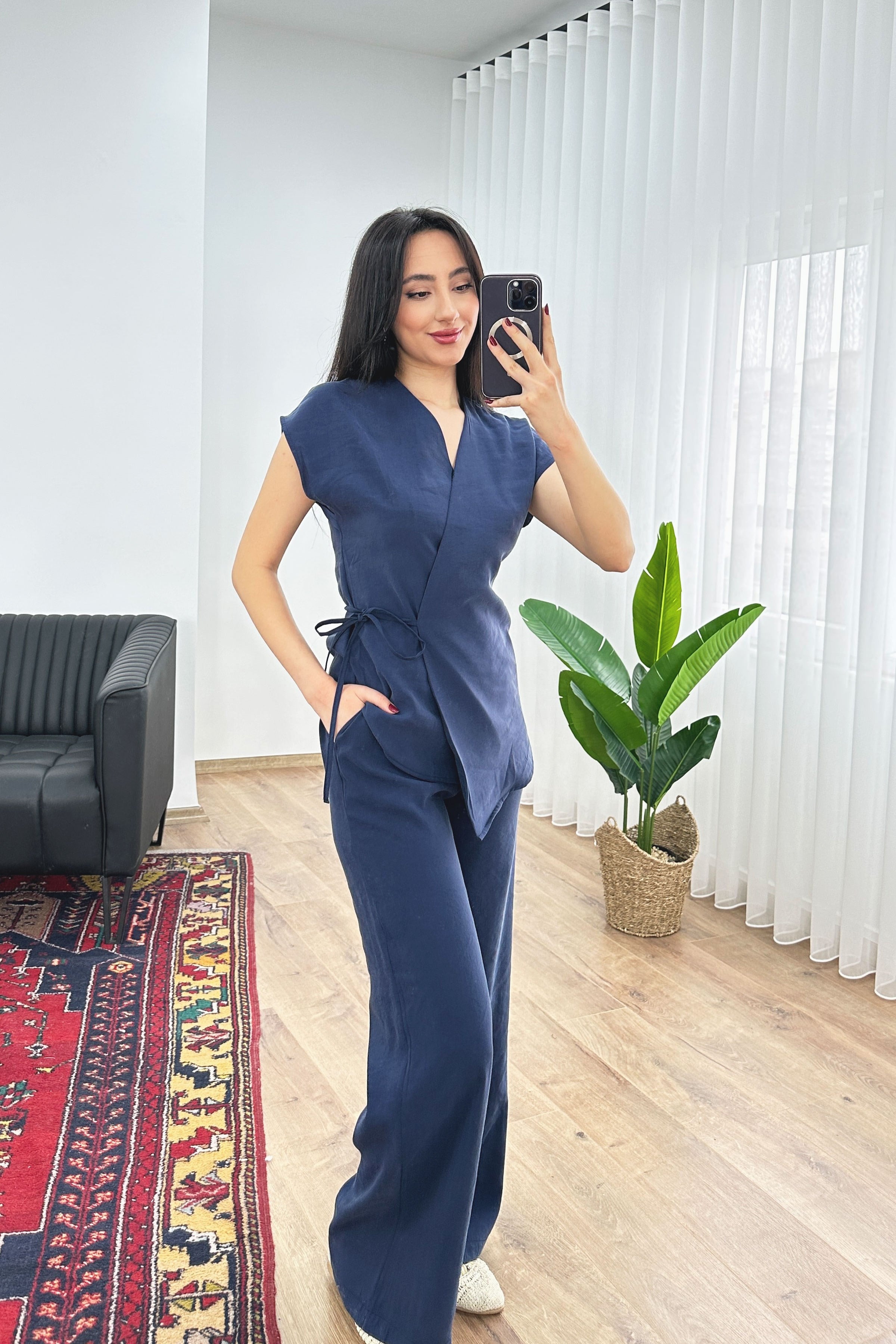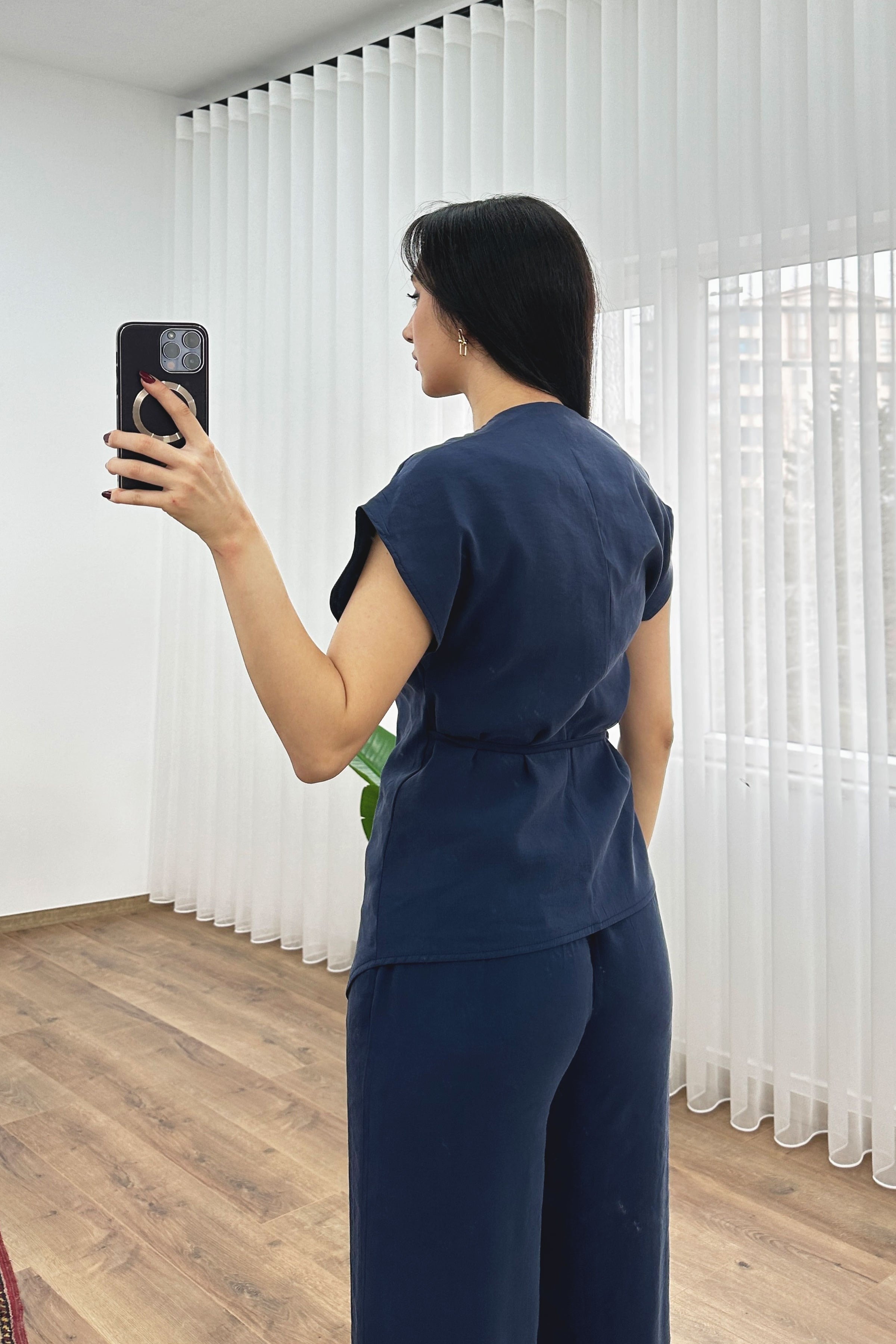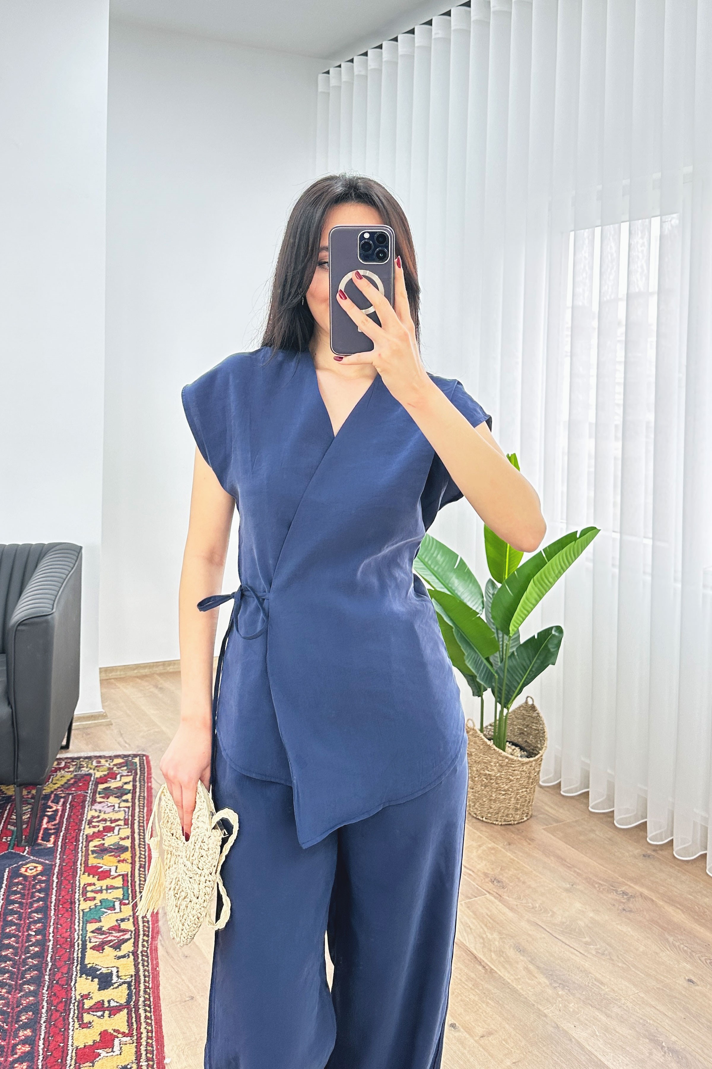 Modal Tek Düğme Kapamalı Oversize Lacivert Toptan Takım