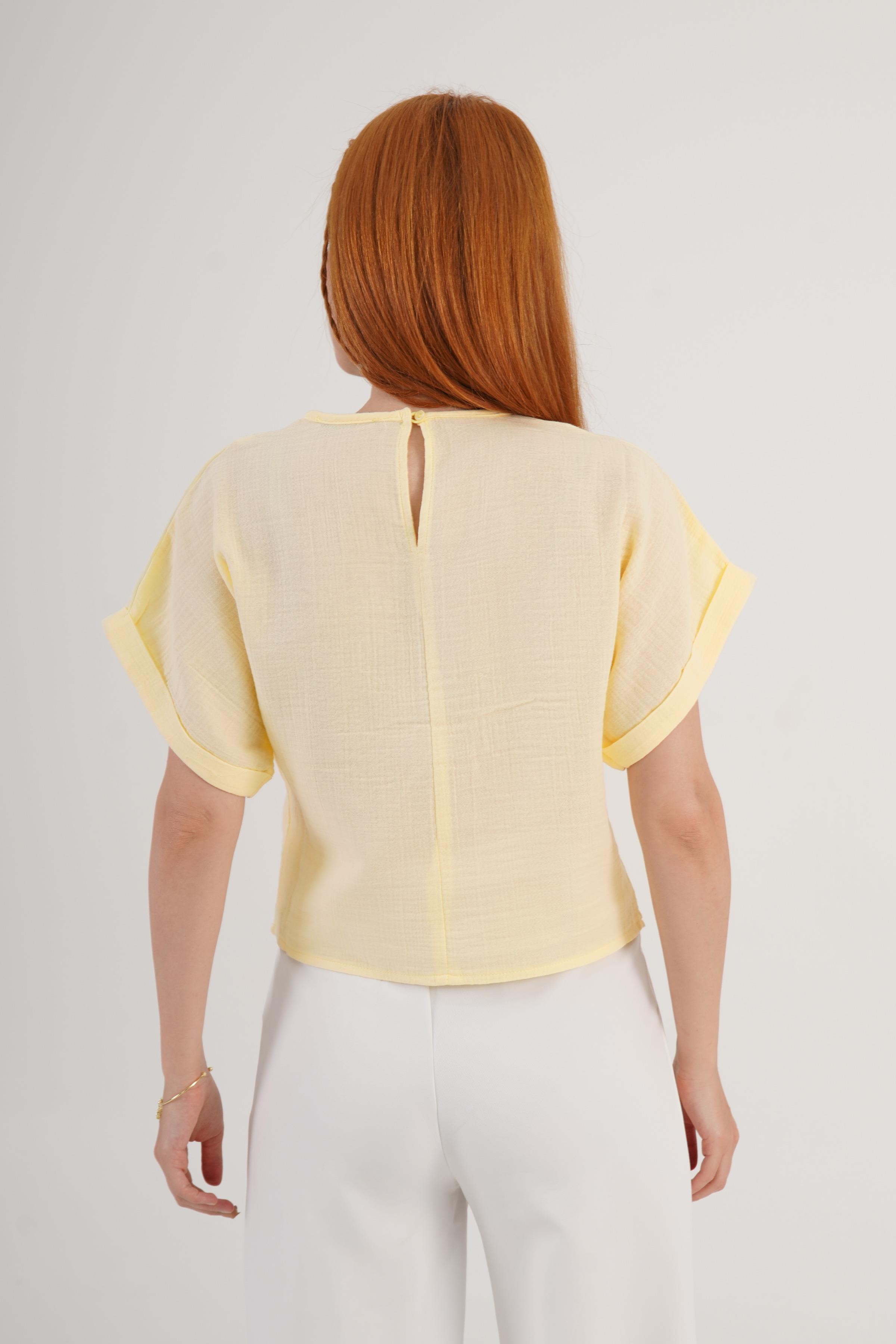 Ön Dantel Detaylı Toptan Sarı Bluz