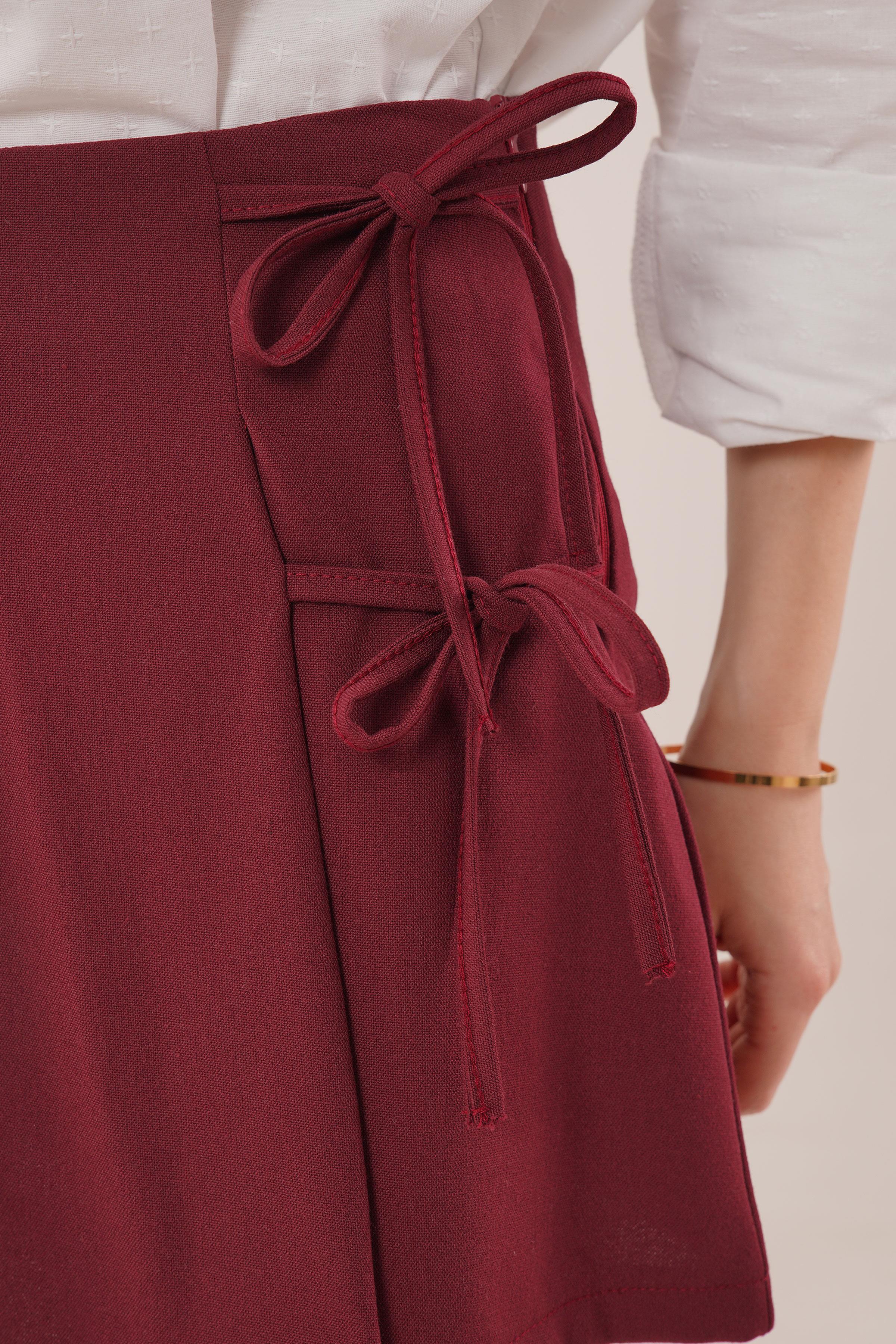 Önü Piliseli Yandan Bağlama Detaylı Toptan Bordo Mini Şort Etek