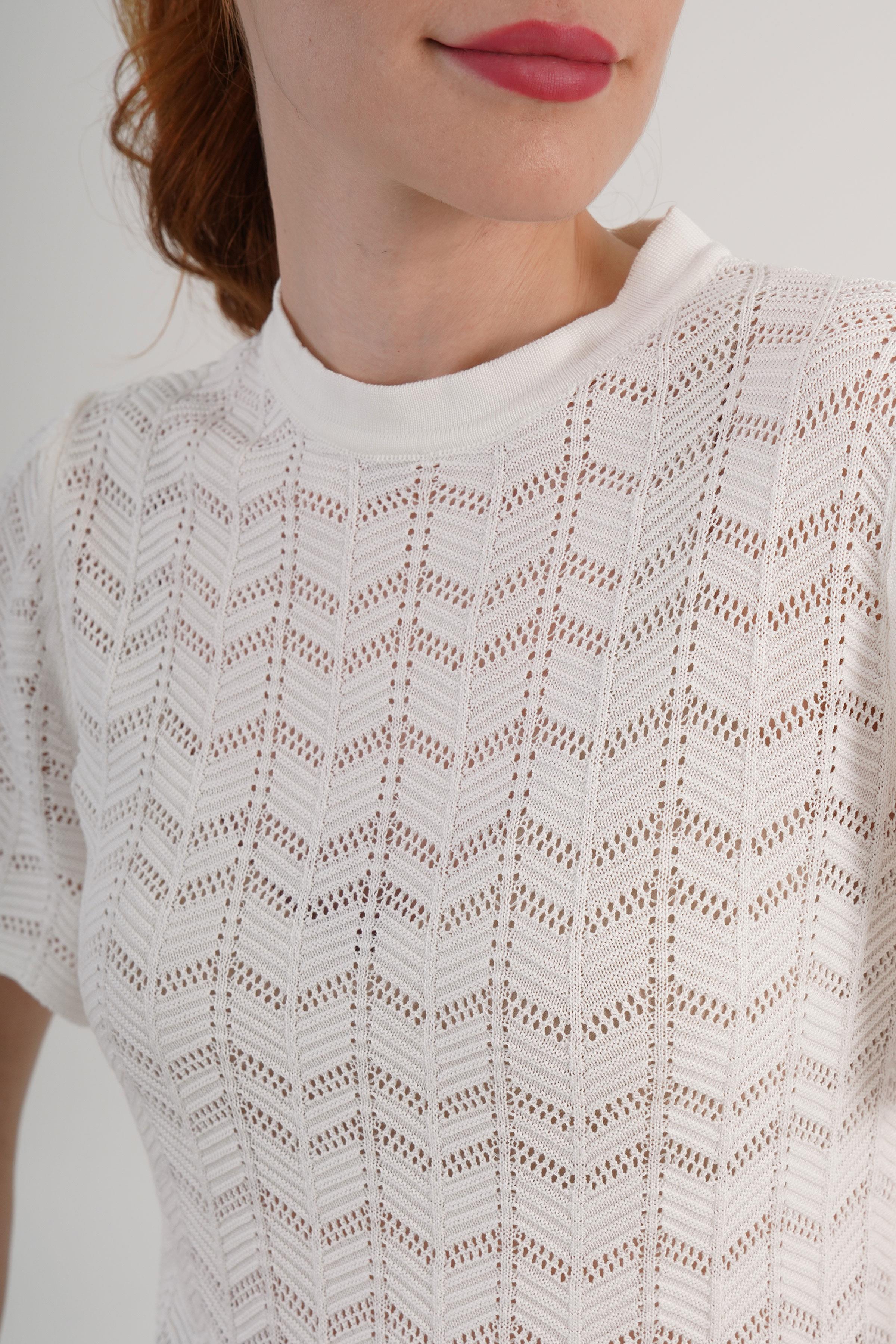 Örgü Model Kısa Kol Toptan Beyaz Triko Bluz