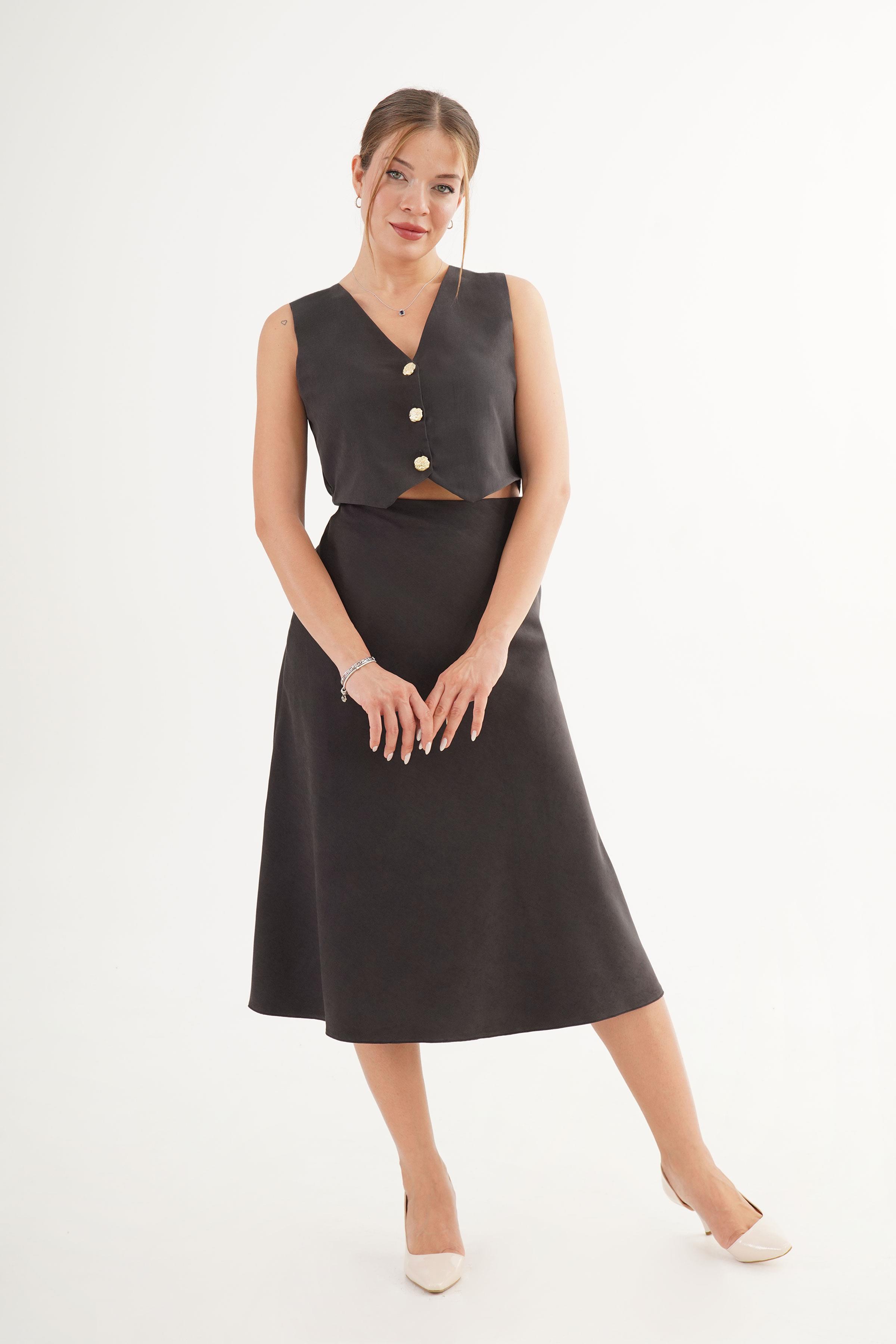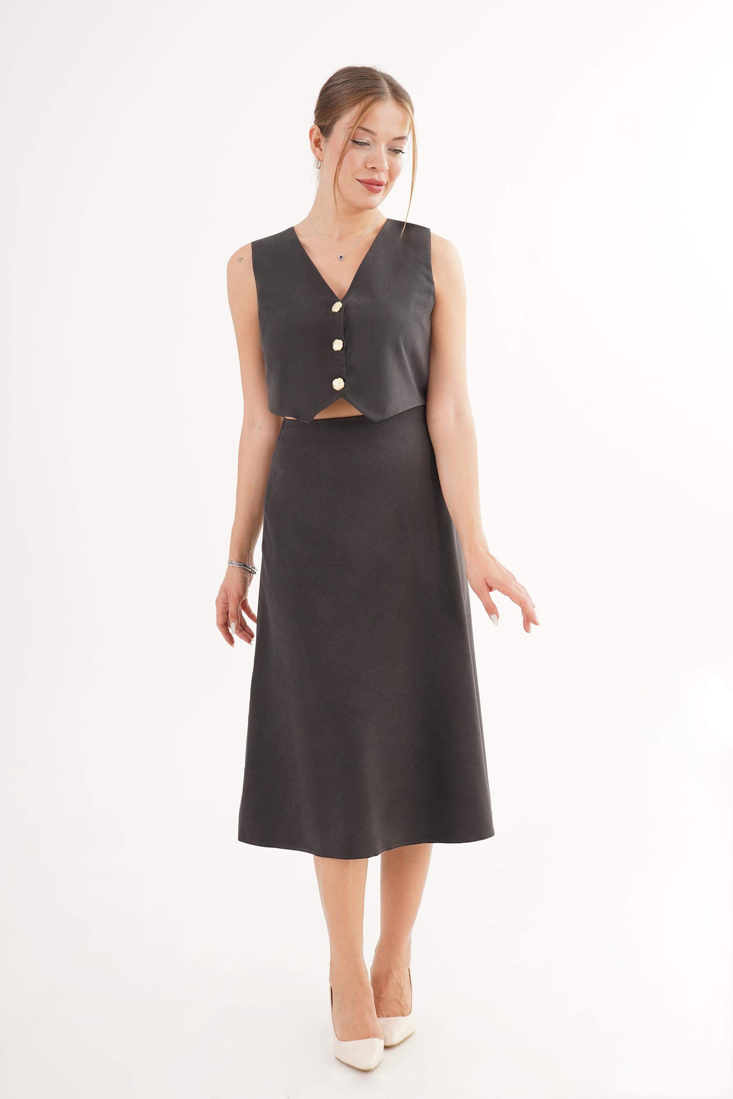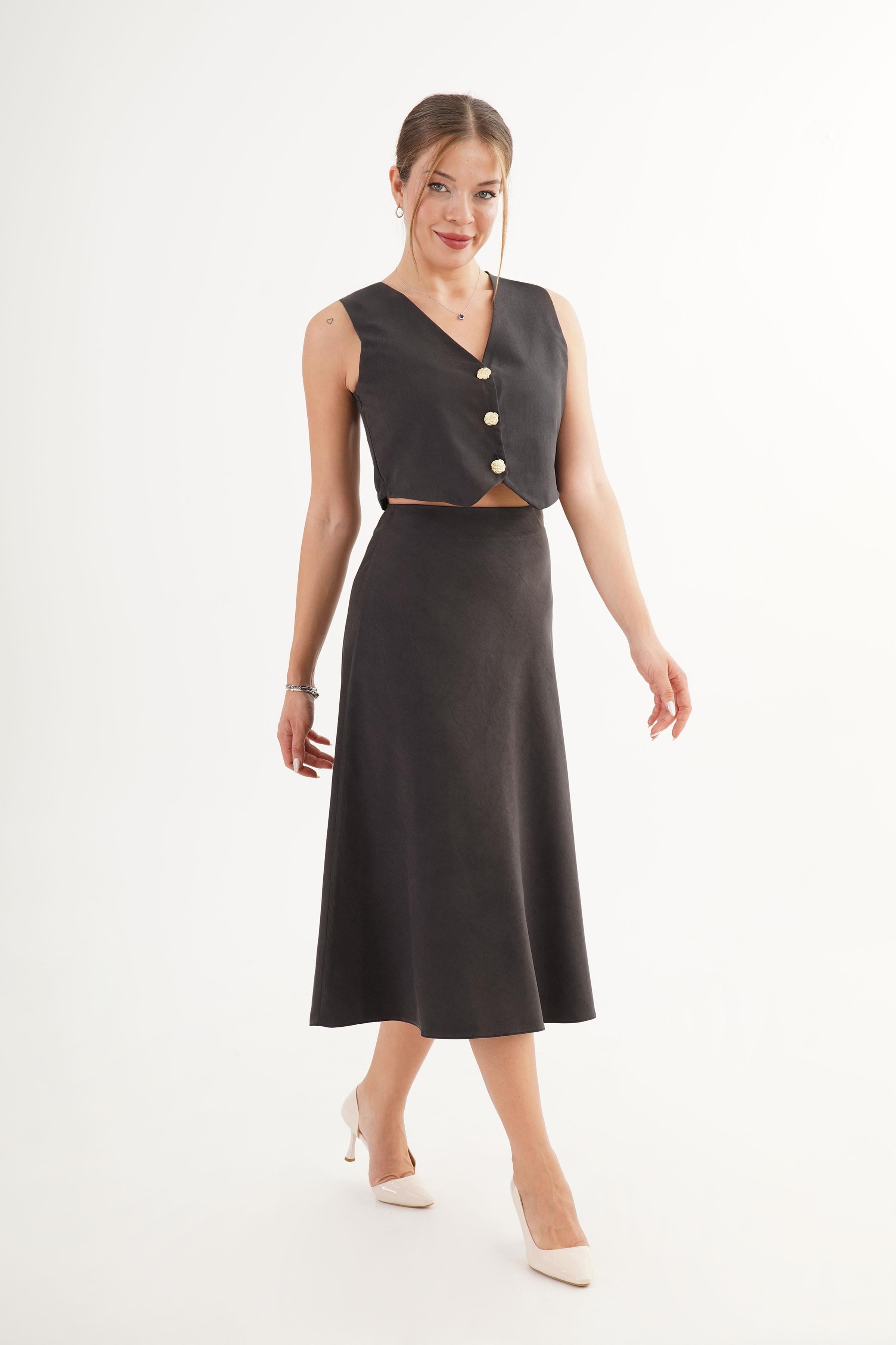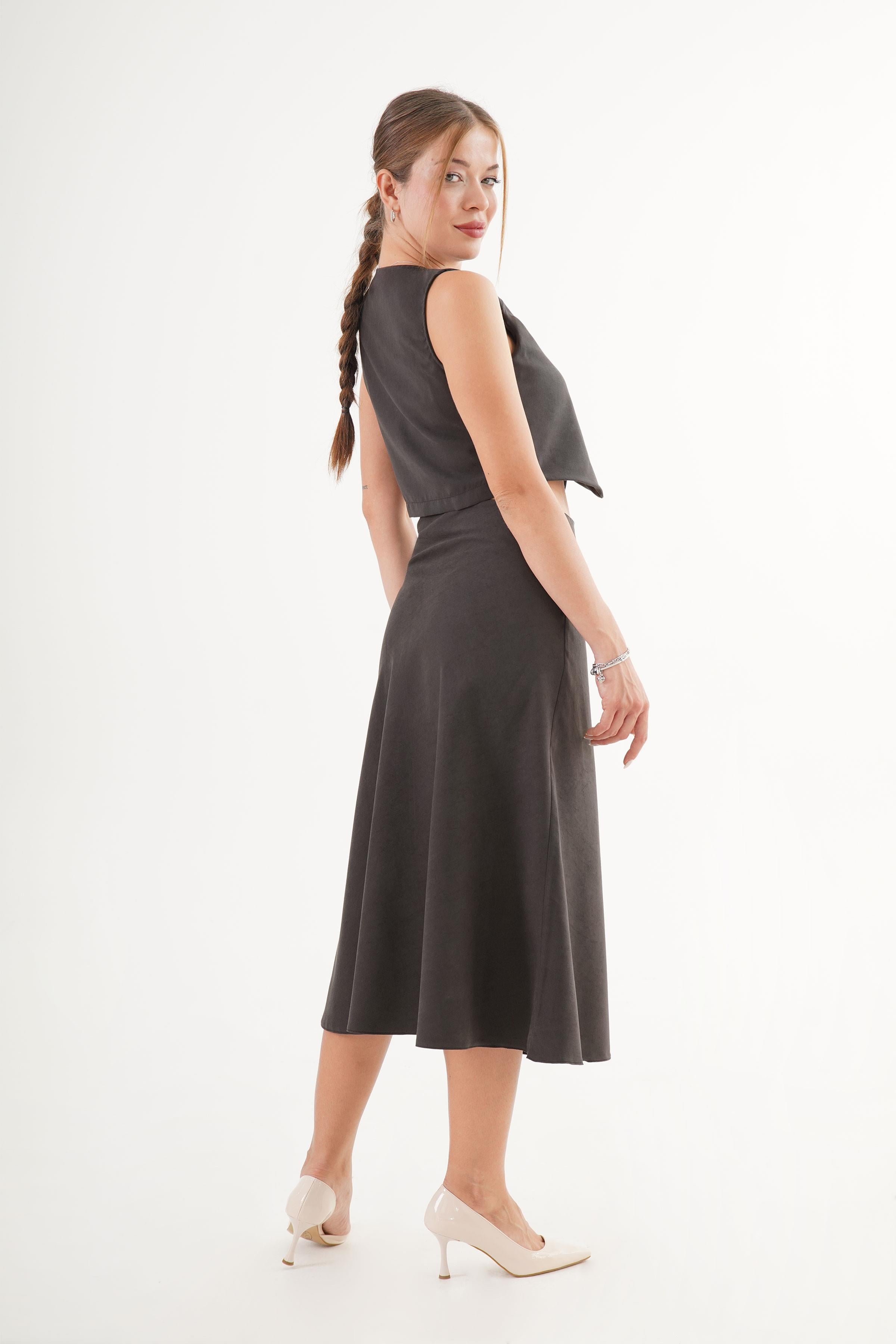 Premium Yelek Etek Siyah Süet Toptan İkili Takım