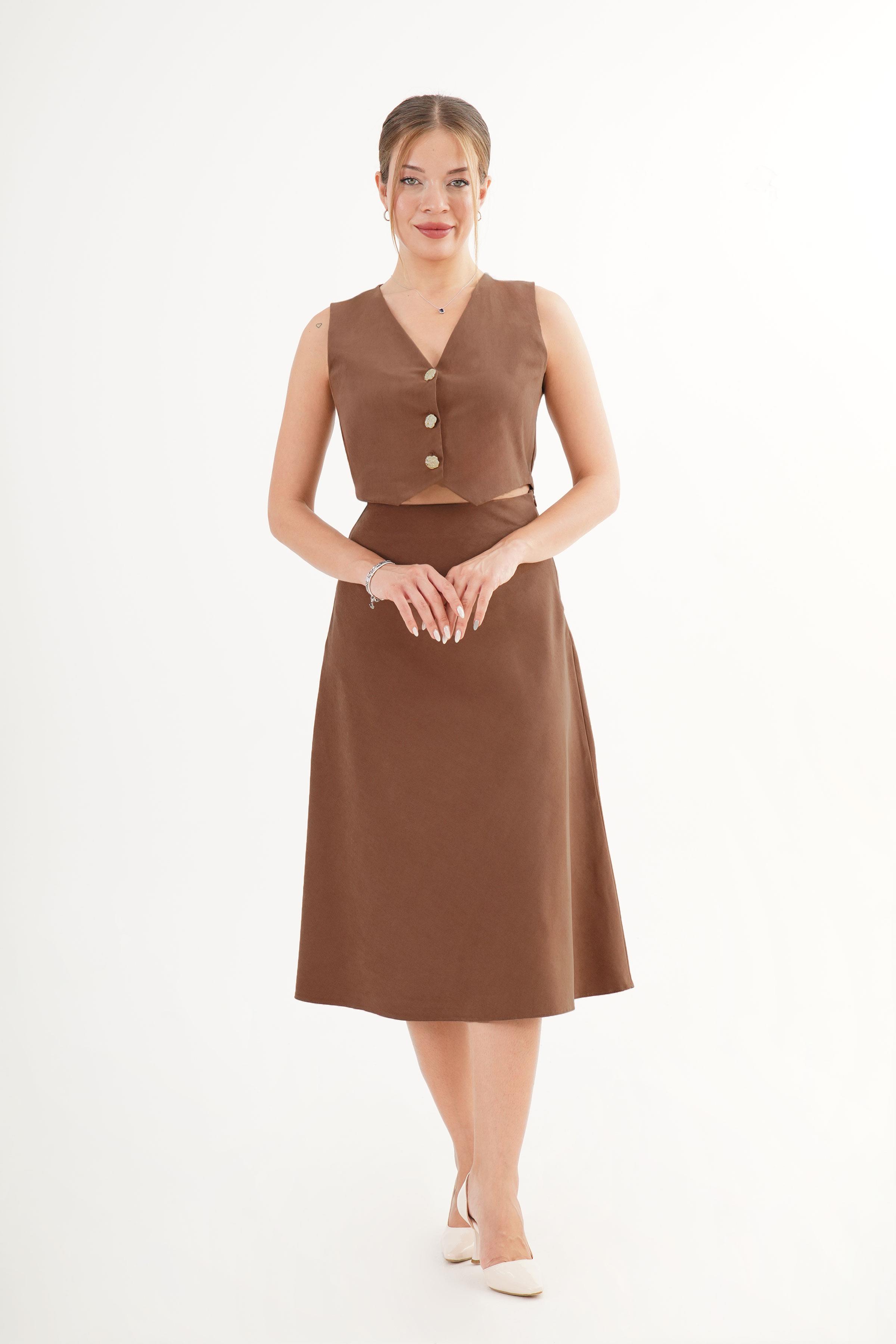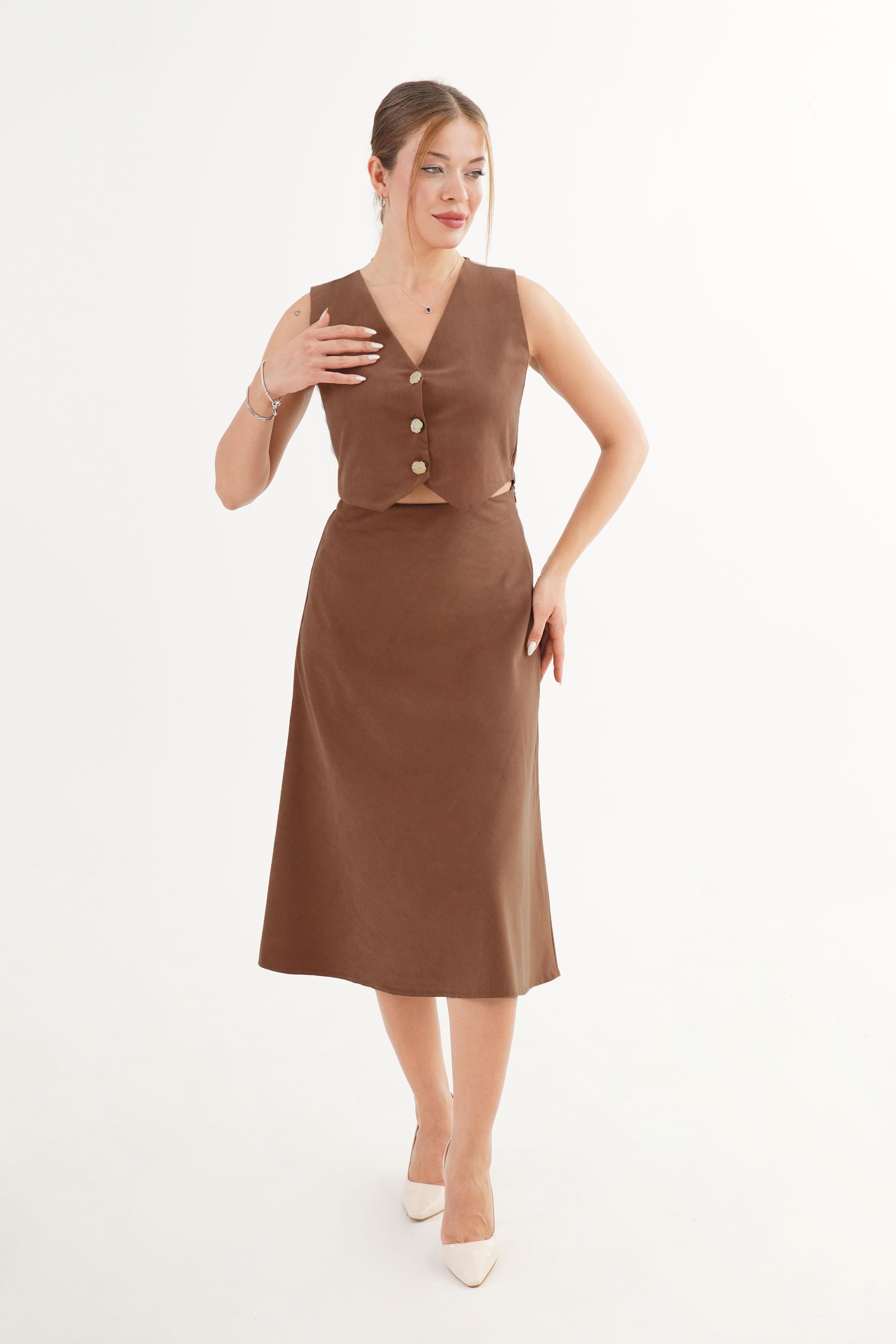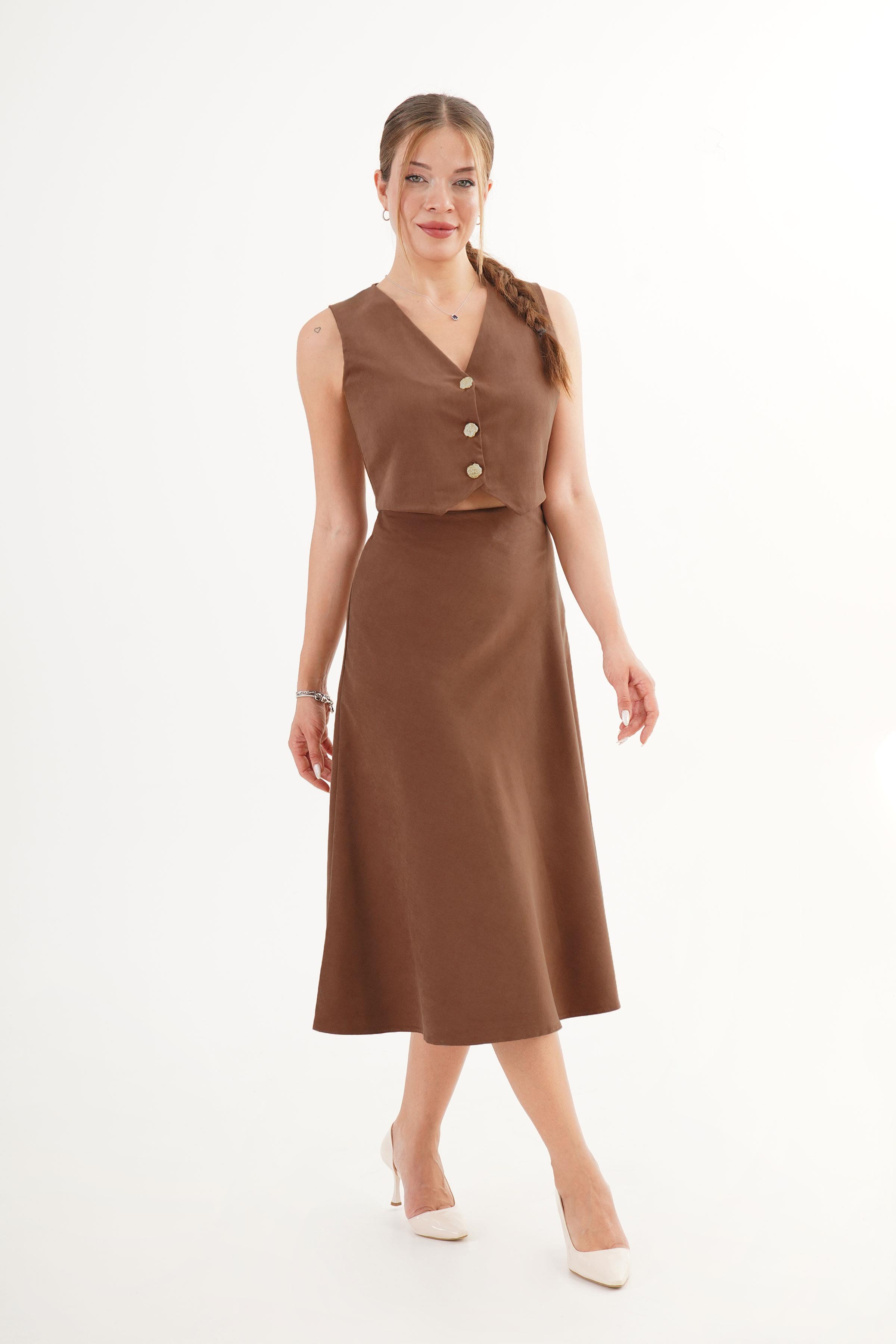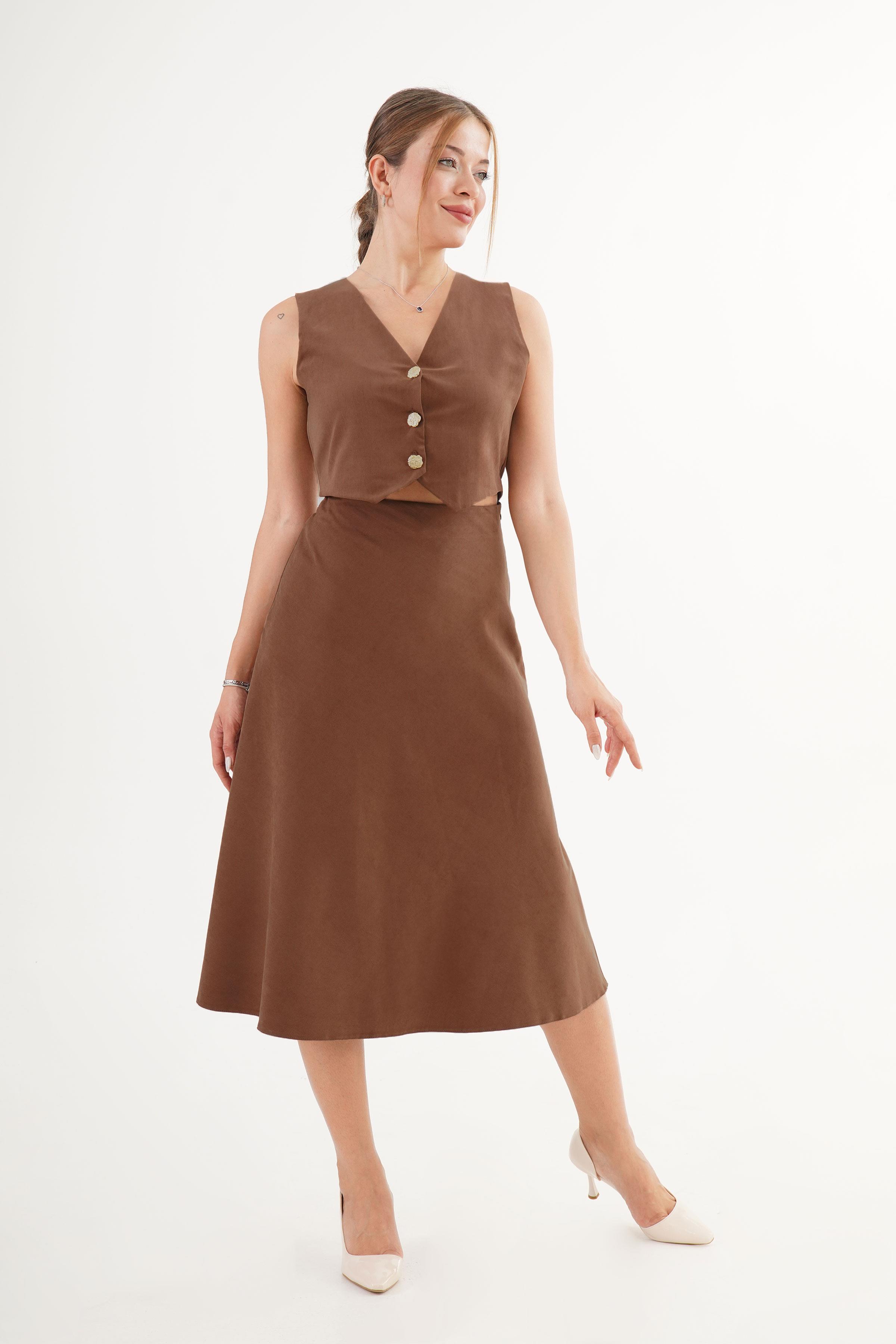 Premium Yelek Etek Taba Süet Toptan İkili Takım