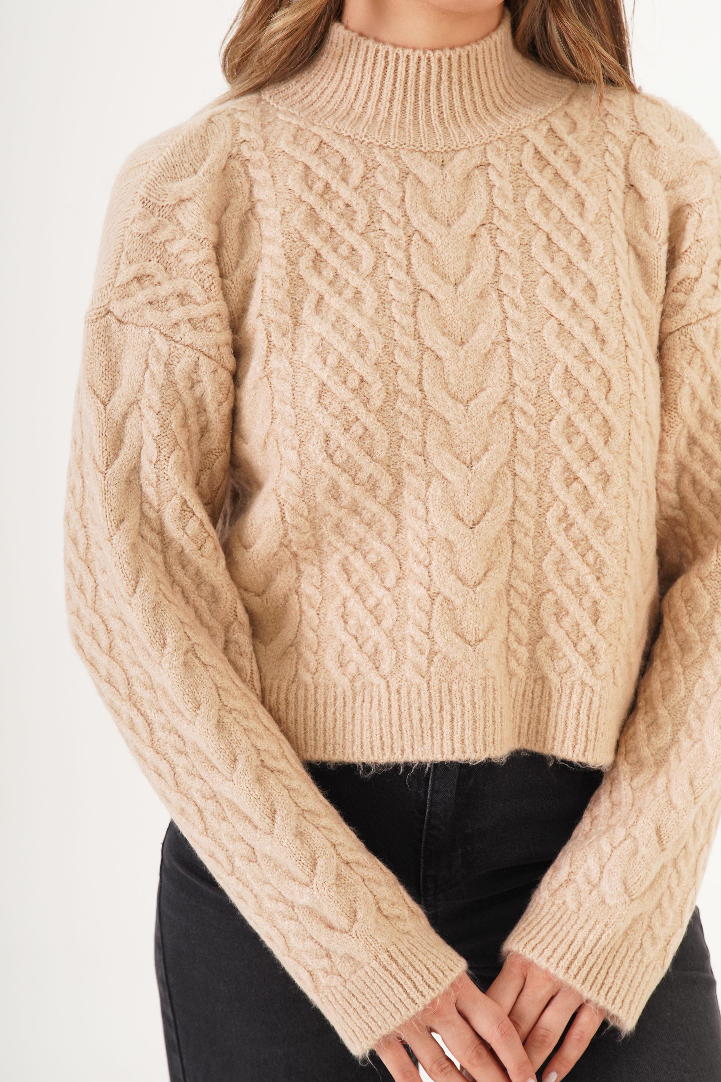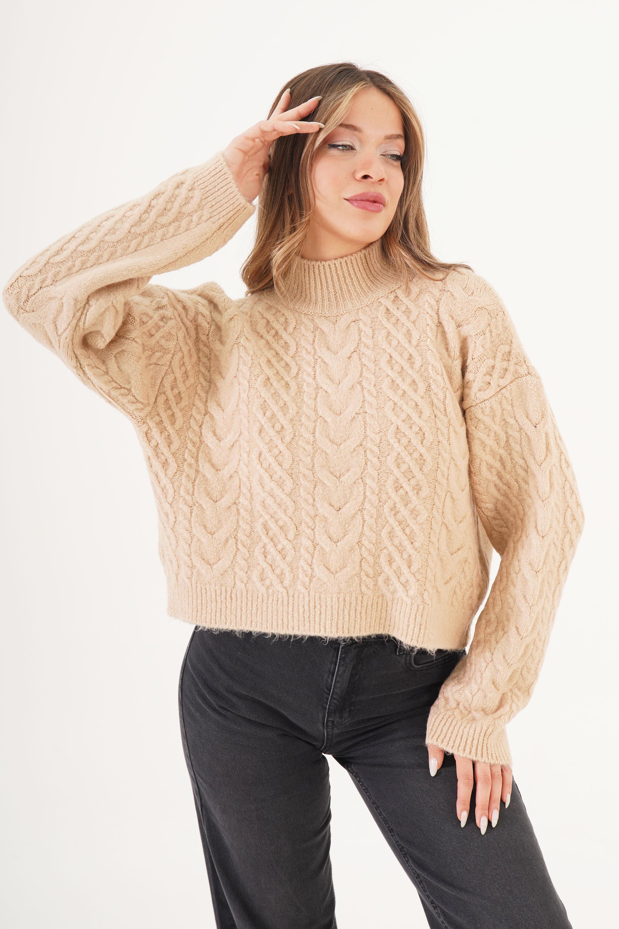 Sarmal Örgü Desenli Triko Krem Toptan Kazak