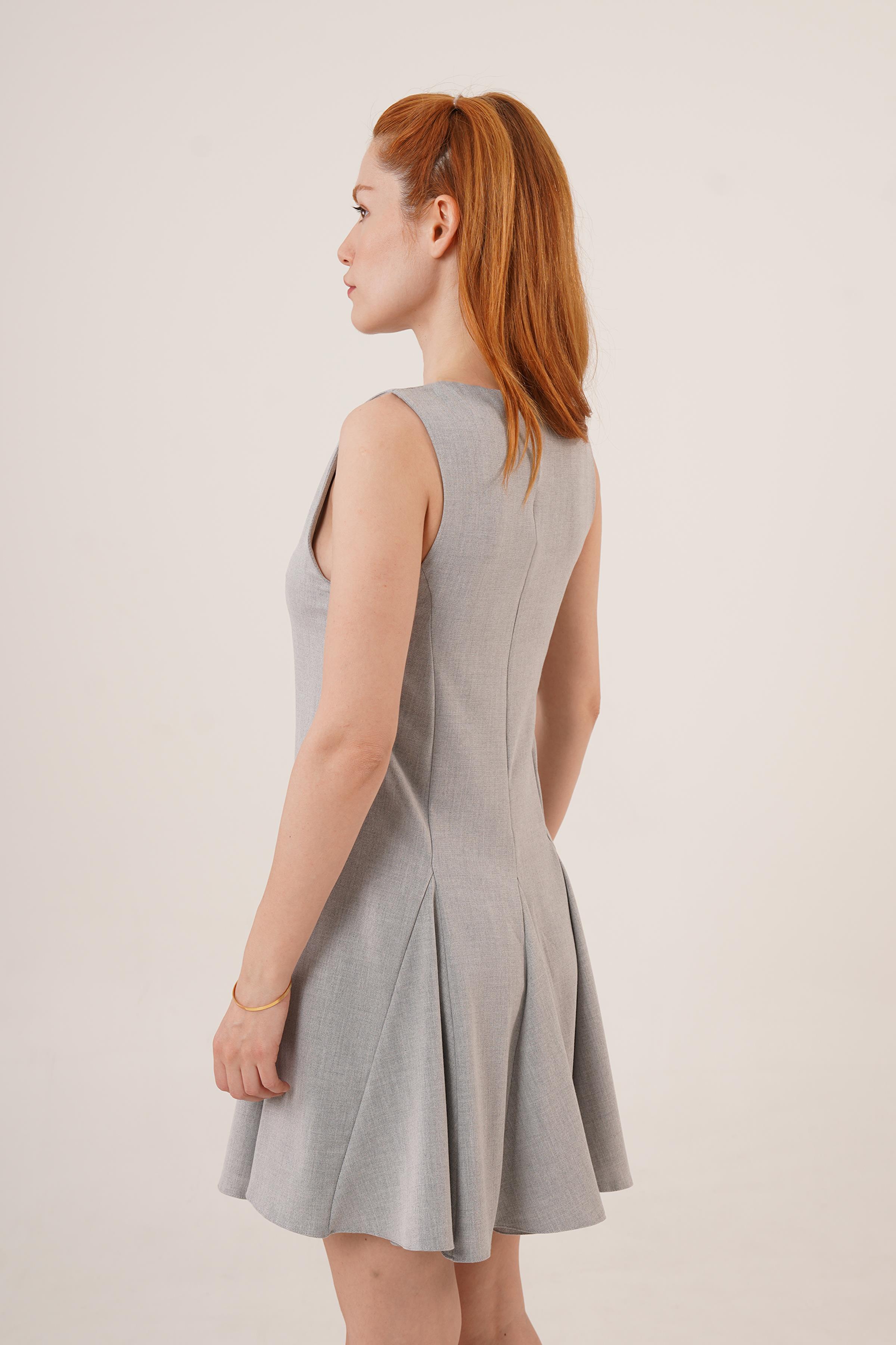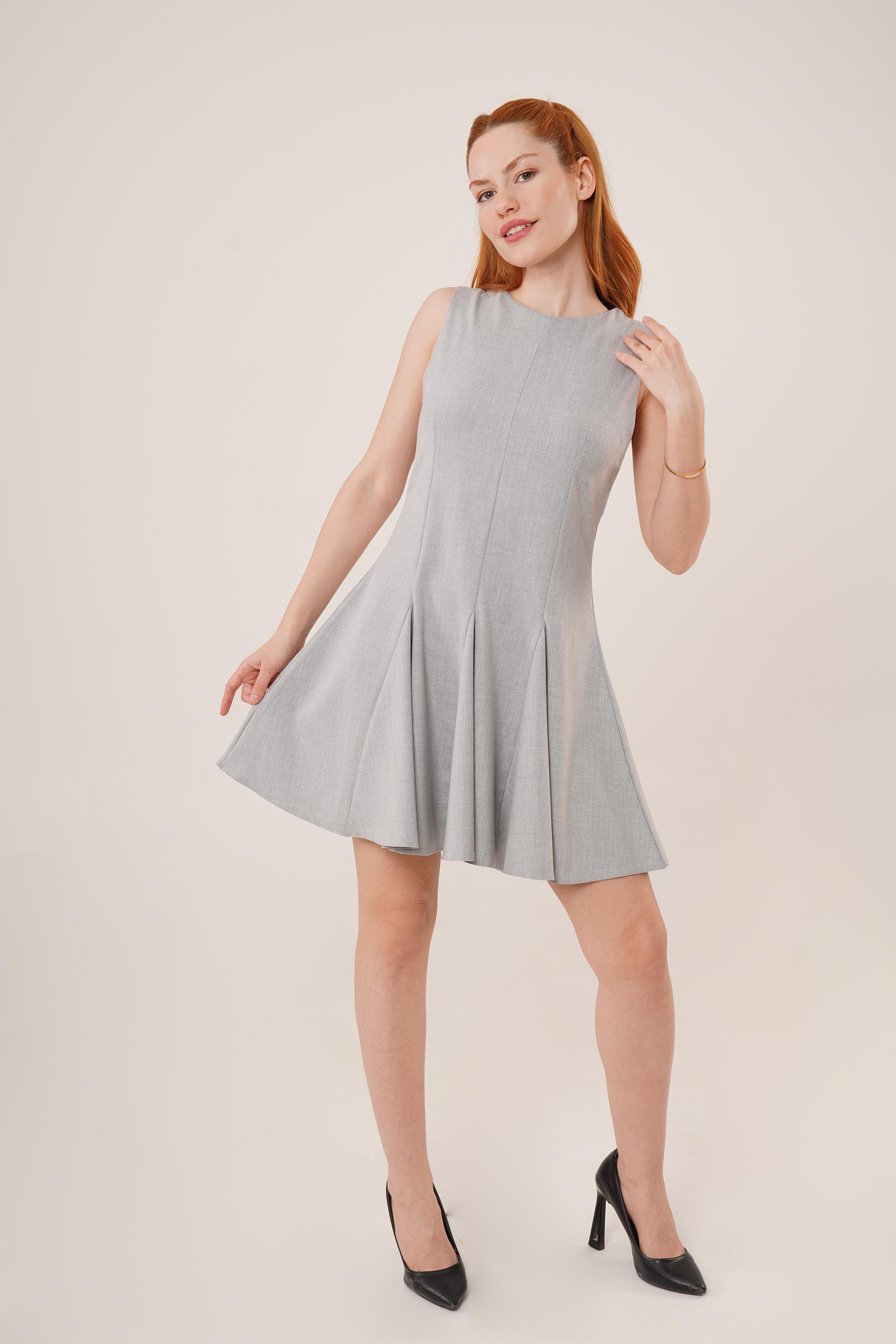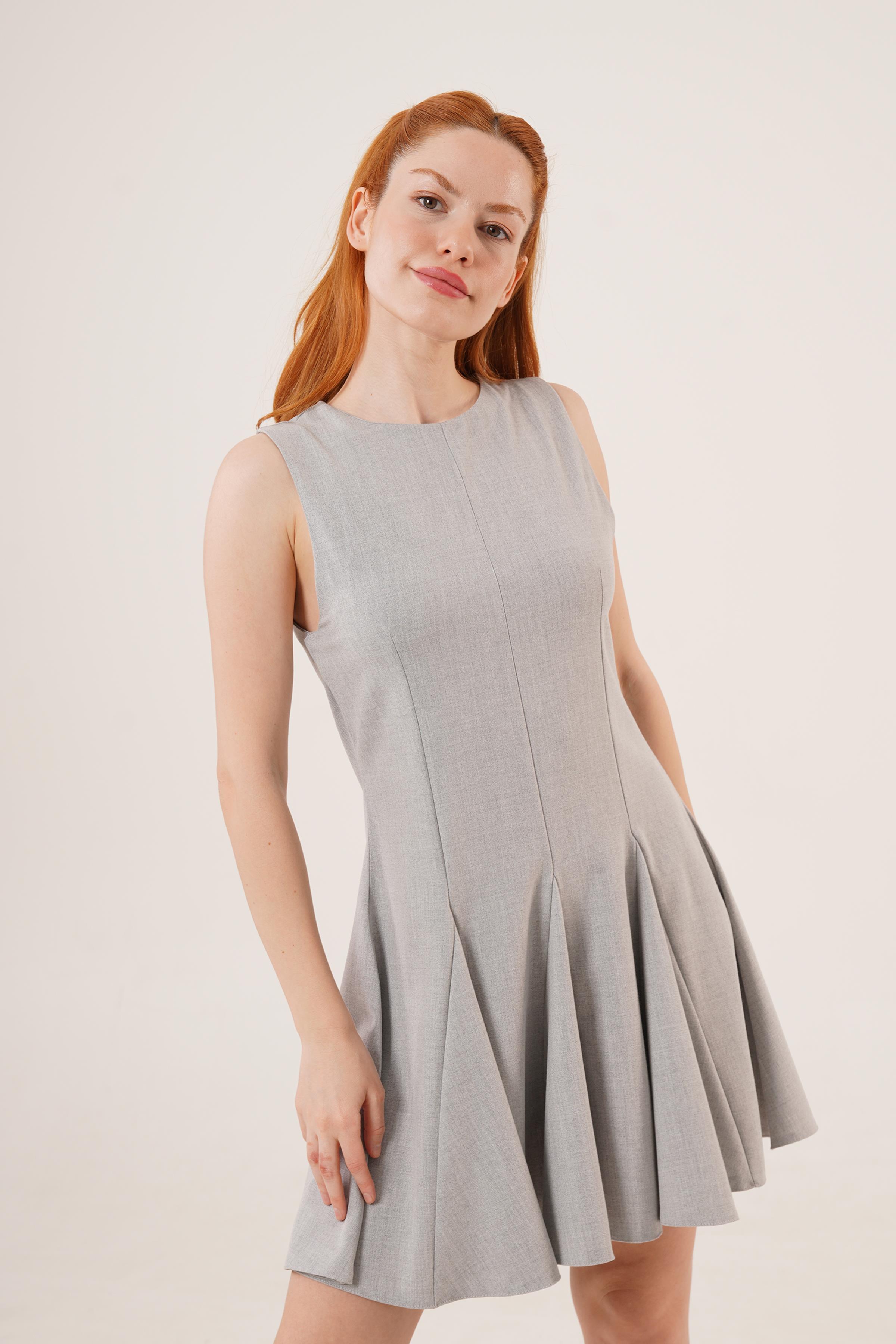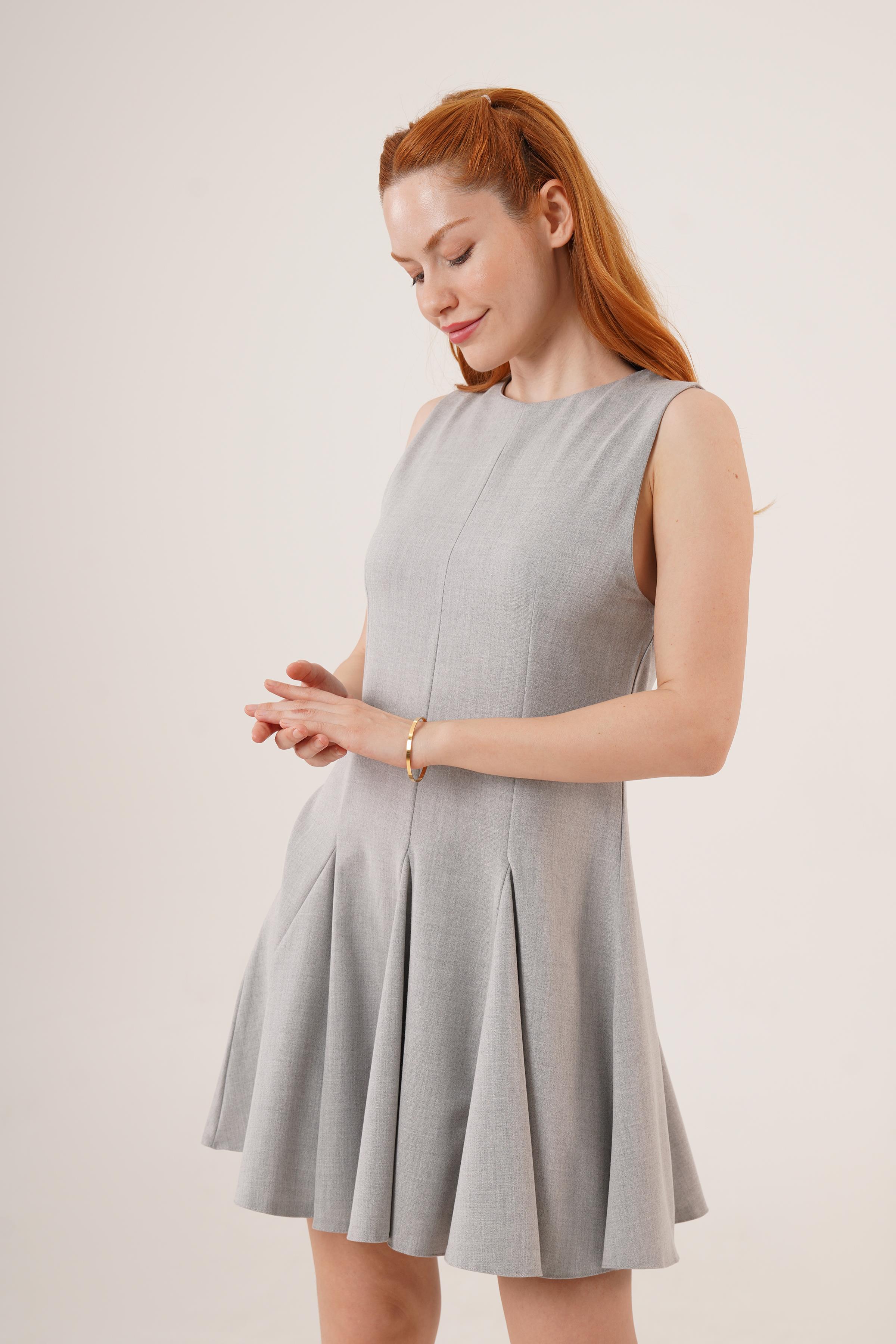 Sıfır Kol Pileli Toptan Gri Mini Elbise