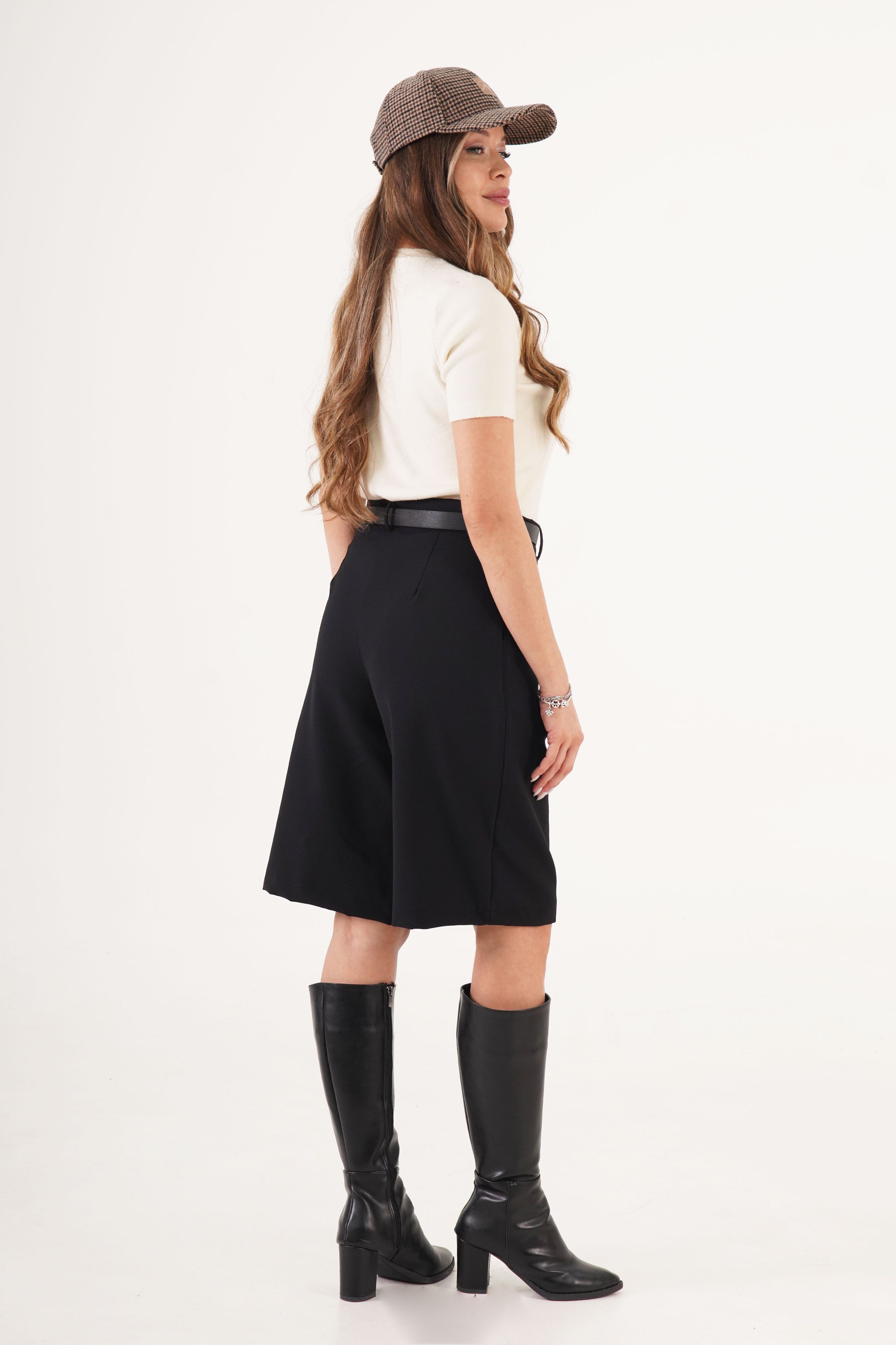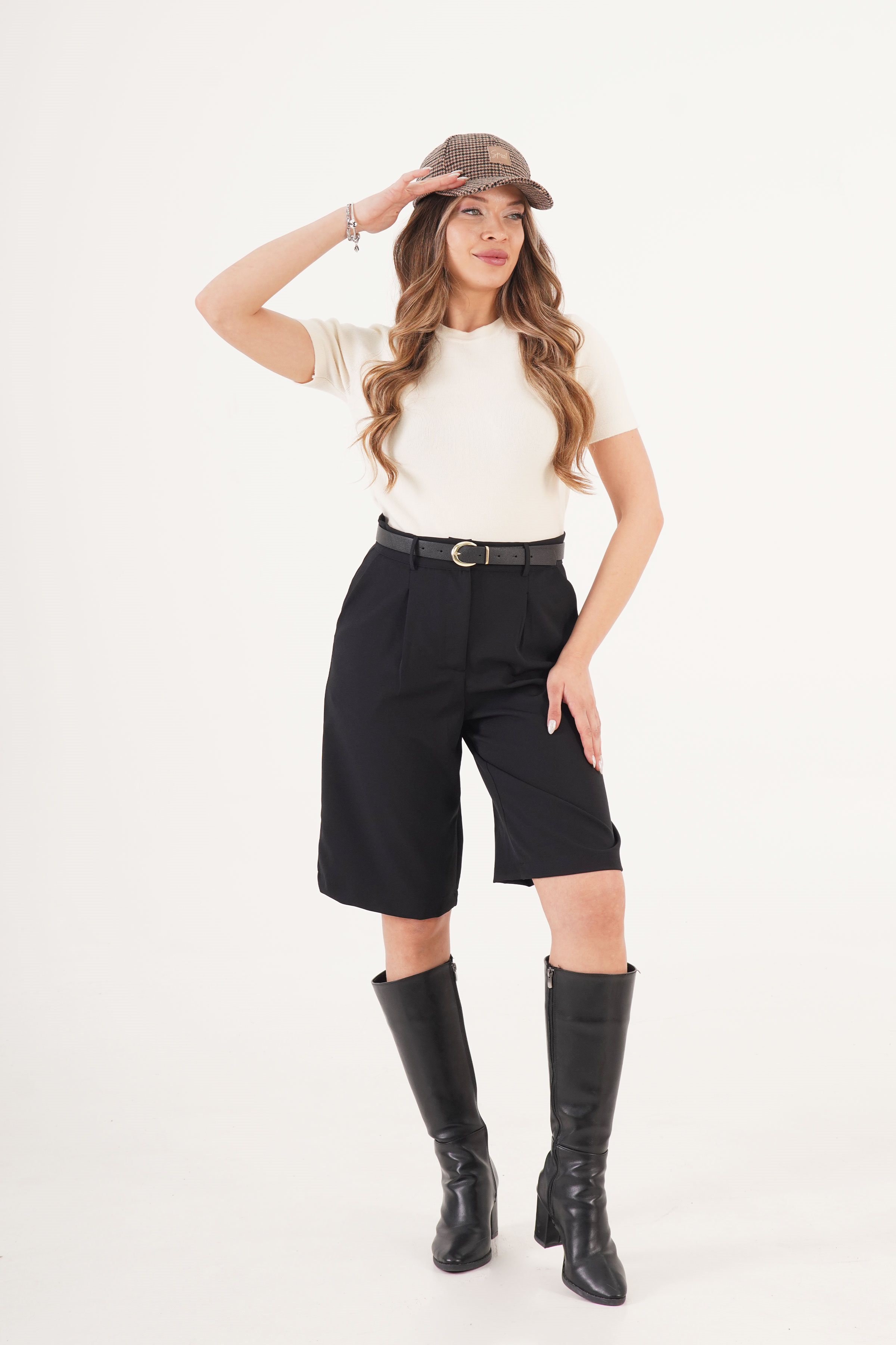 Toptan Kemerli Cepli Siyah Bermuda Şort
