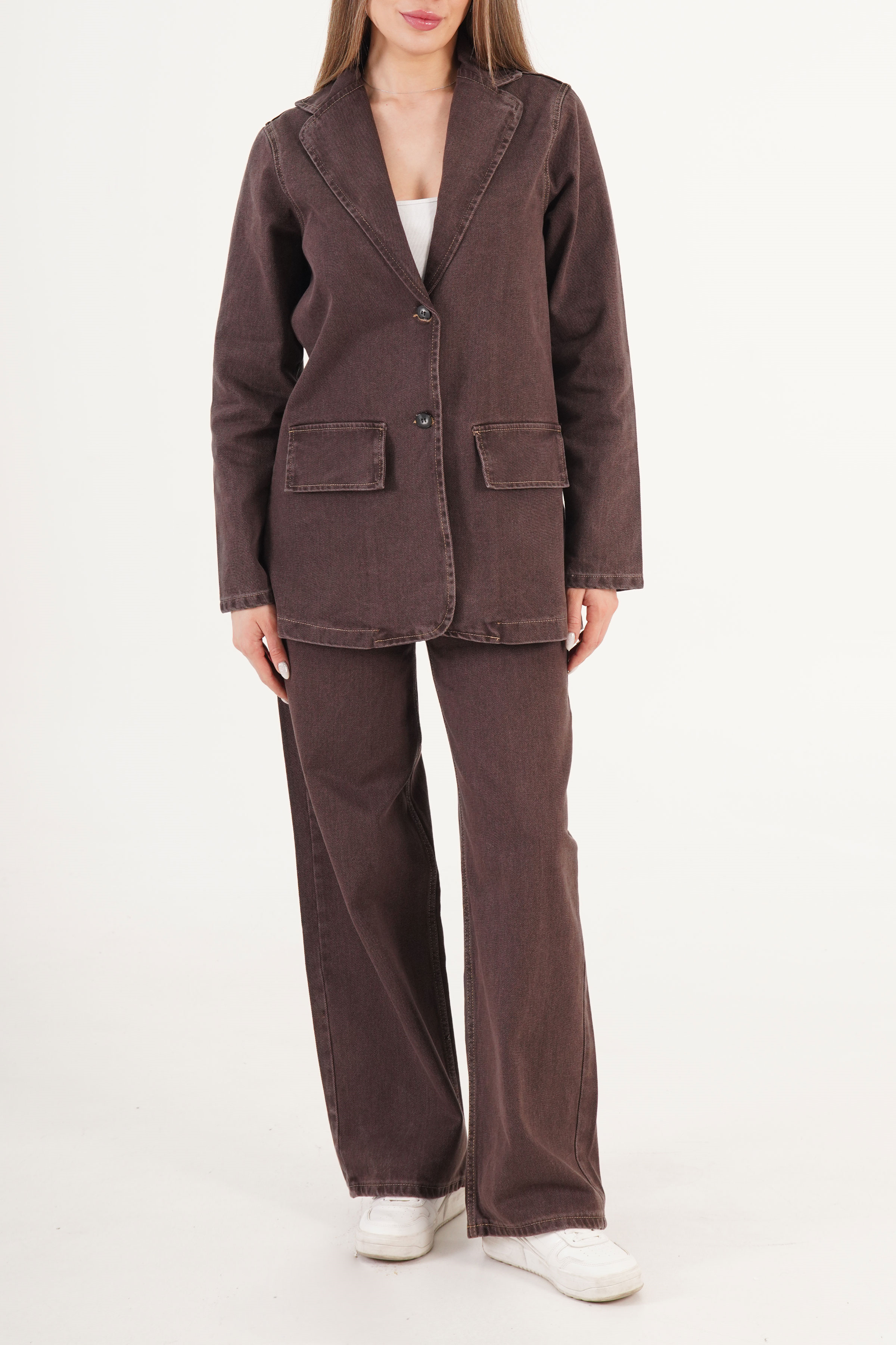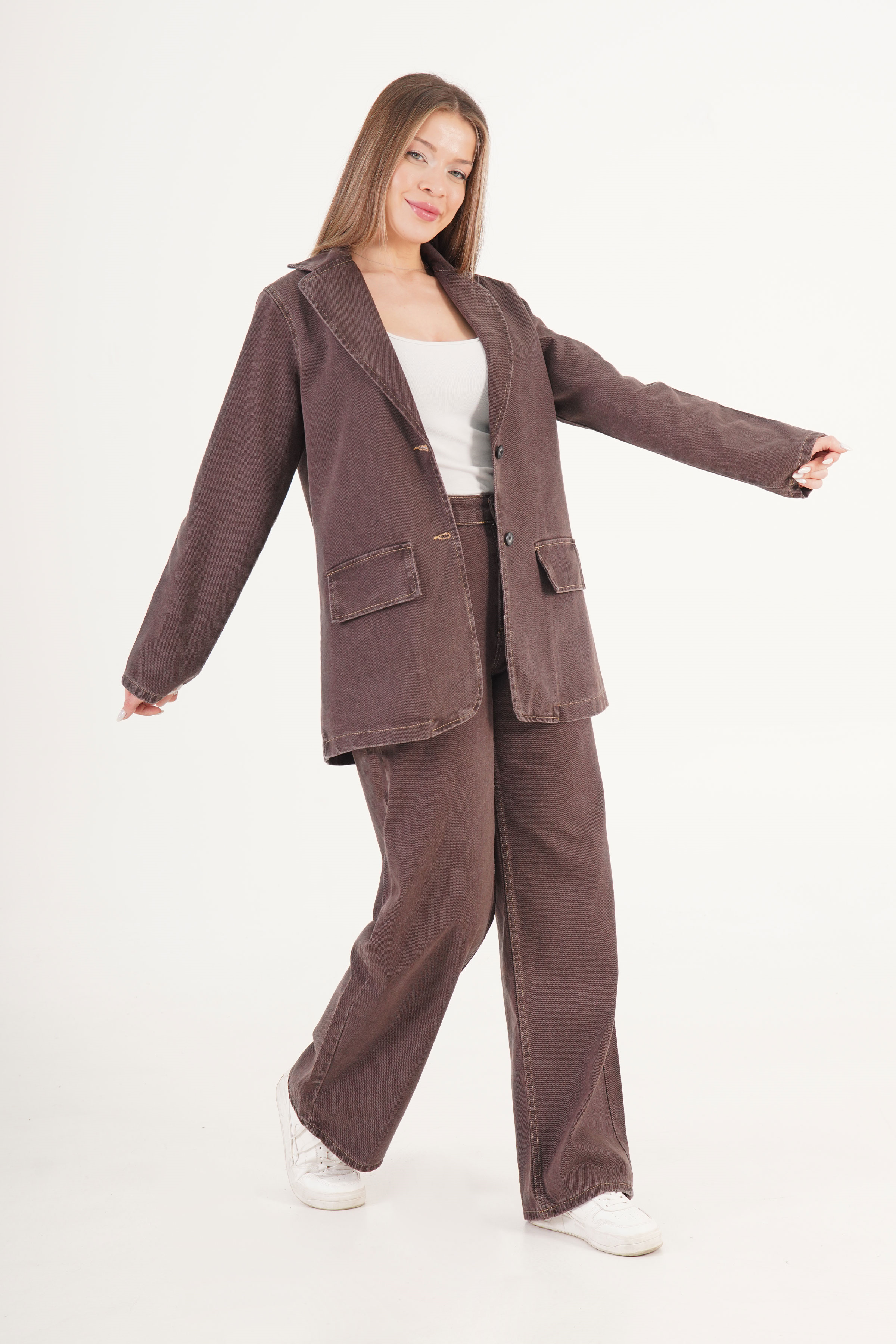 Yıkamalı Urban Kahve Ceket Pantolon Denim Toptan Takım