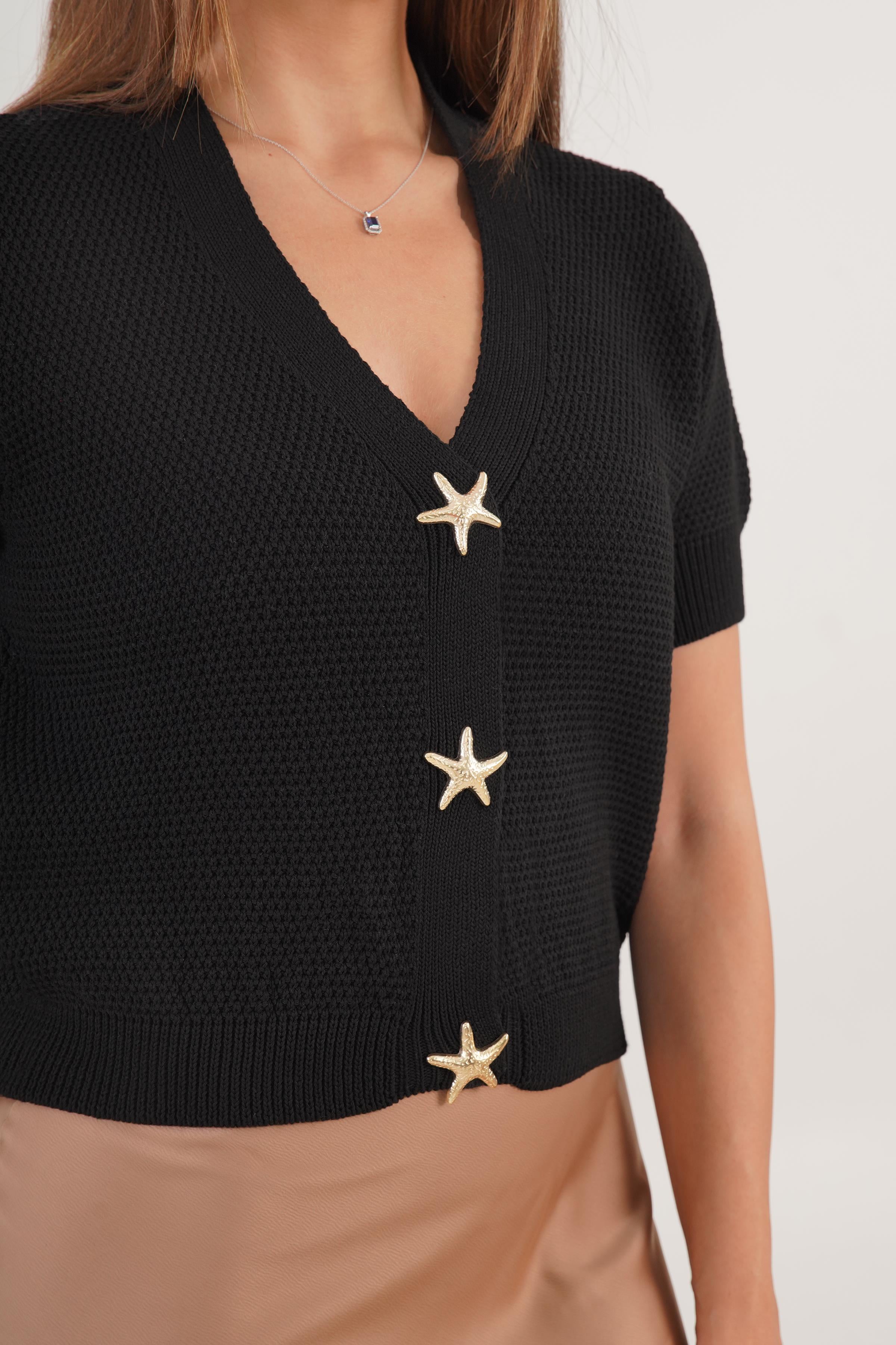 Yıldız Çıtçıt Düğmeli Kısa Kol Siyah Toptan Triko Hırka