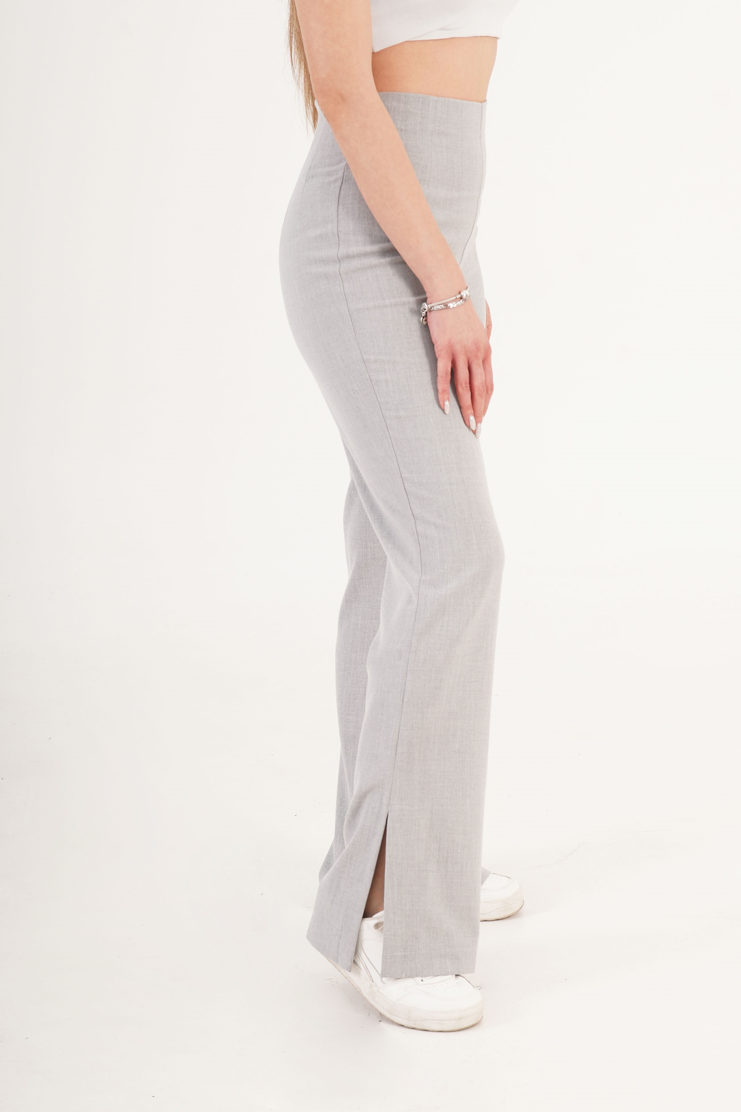 Yırtmaçlı Çan Paça Gri Toptan Pantolon