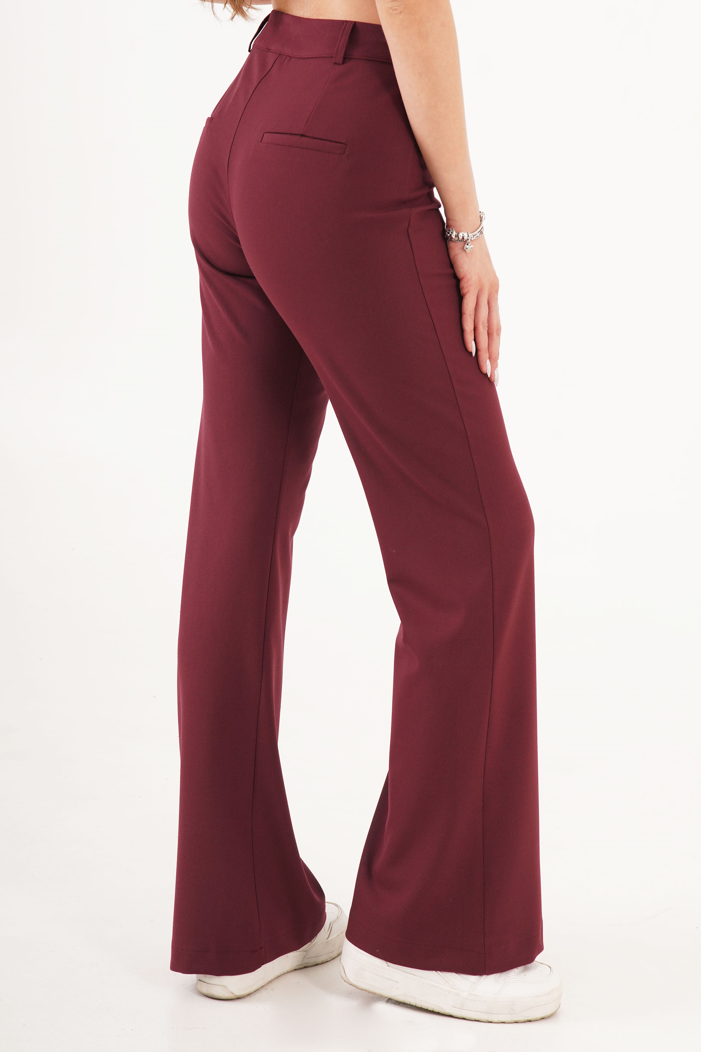 Yüksek Bel Tek Düğme Bordo Pantolon