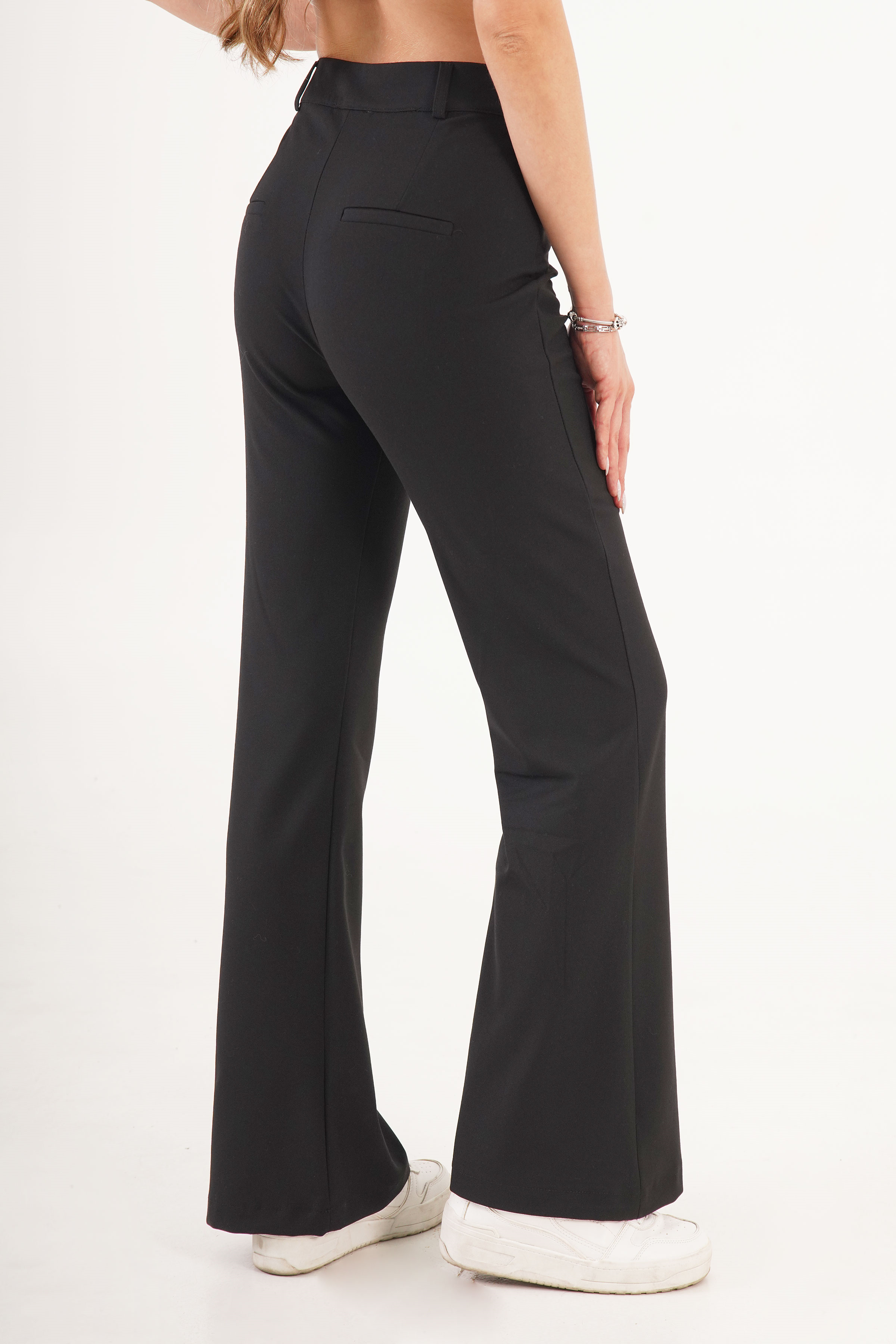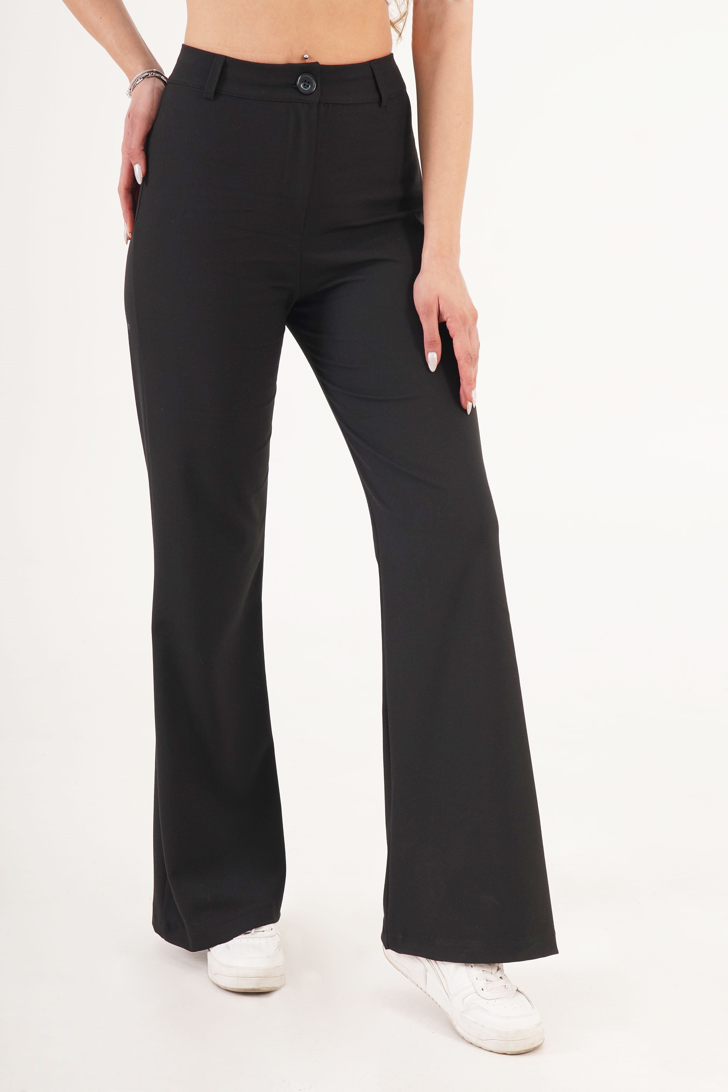 Yüksek Bel Tek Düğme Siyah Pantolon